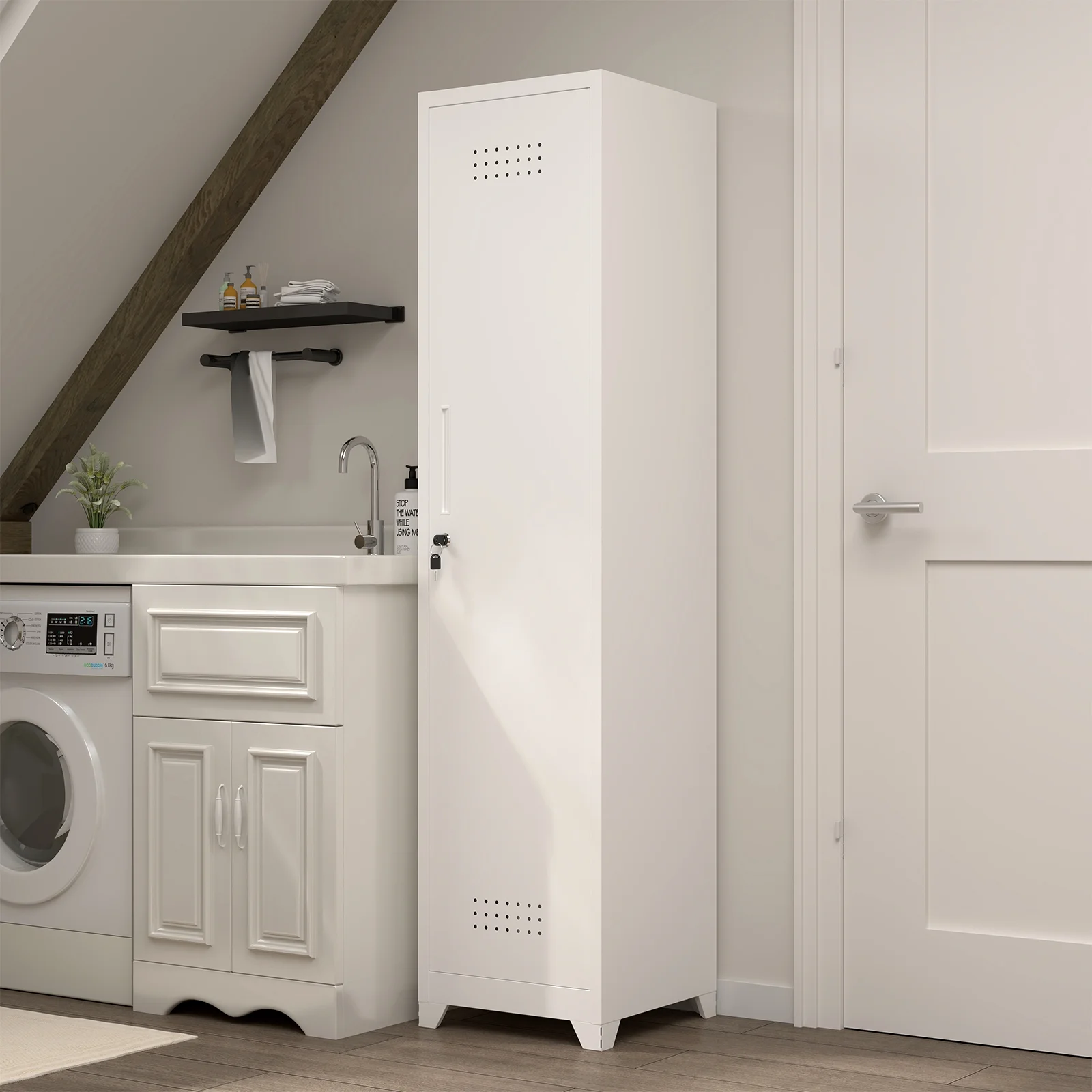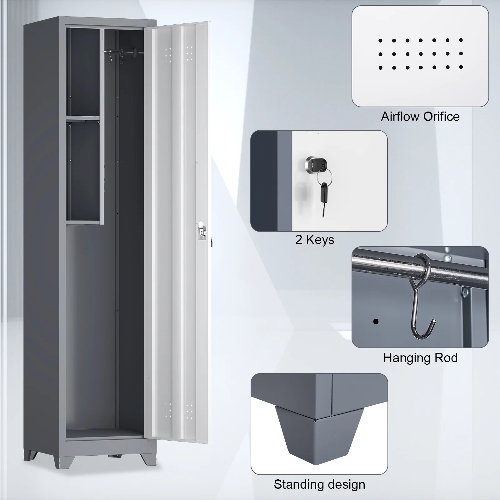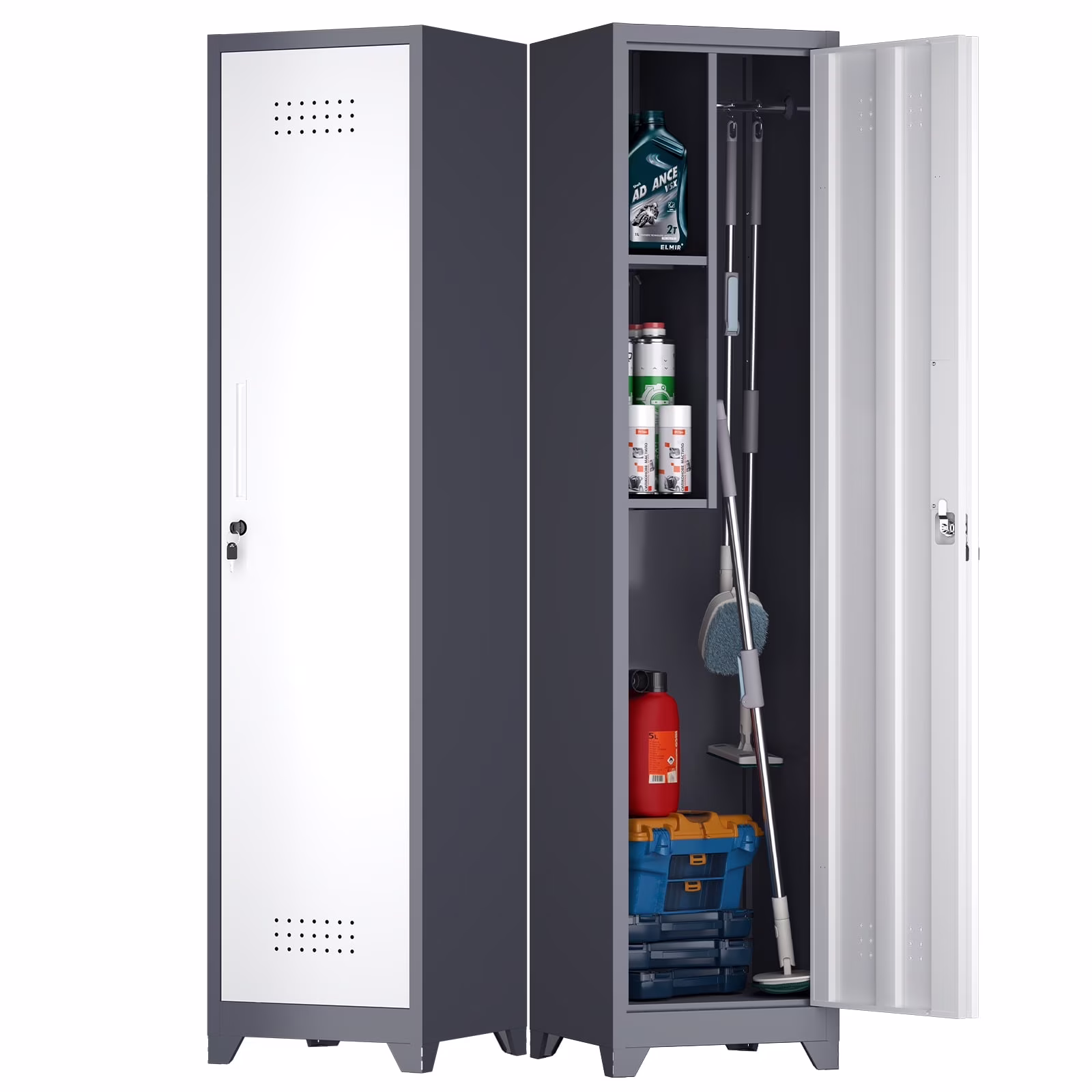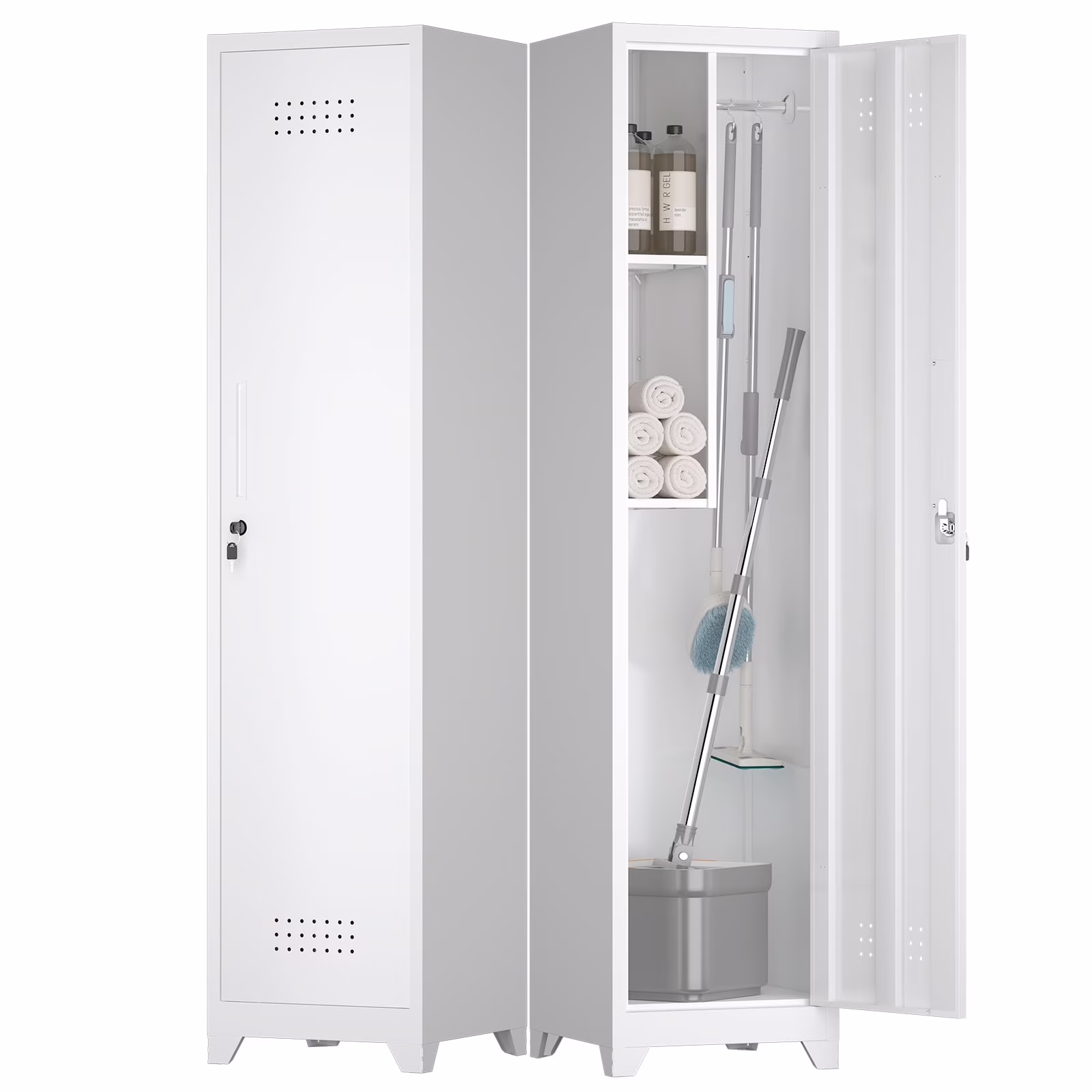- ??????��Multi-Purpose��The slim broom closet cabinet can store different items such as mops, brooms, fishing rods, towels, clothes, documents, etc. and can be used in offices, storage rooms, garages, homes, warehouses, laundries, basements, or anywhere you need a secure storage space.