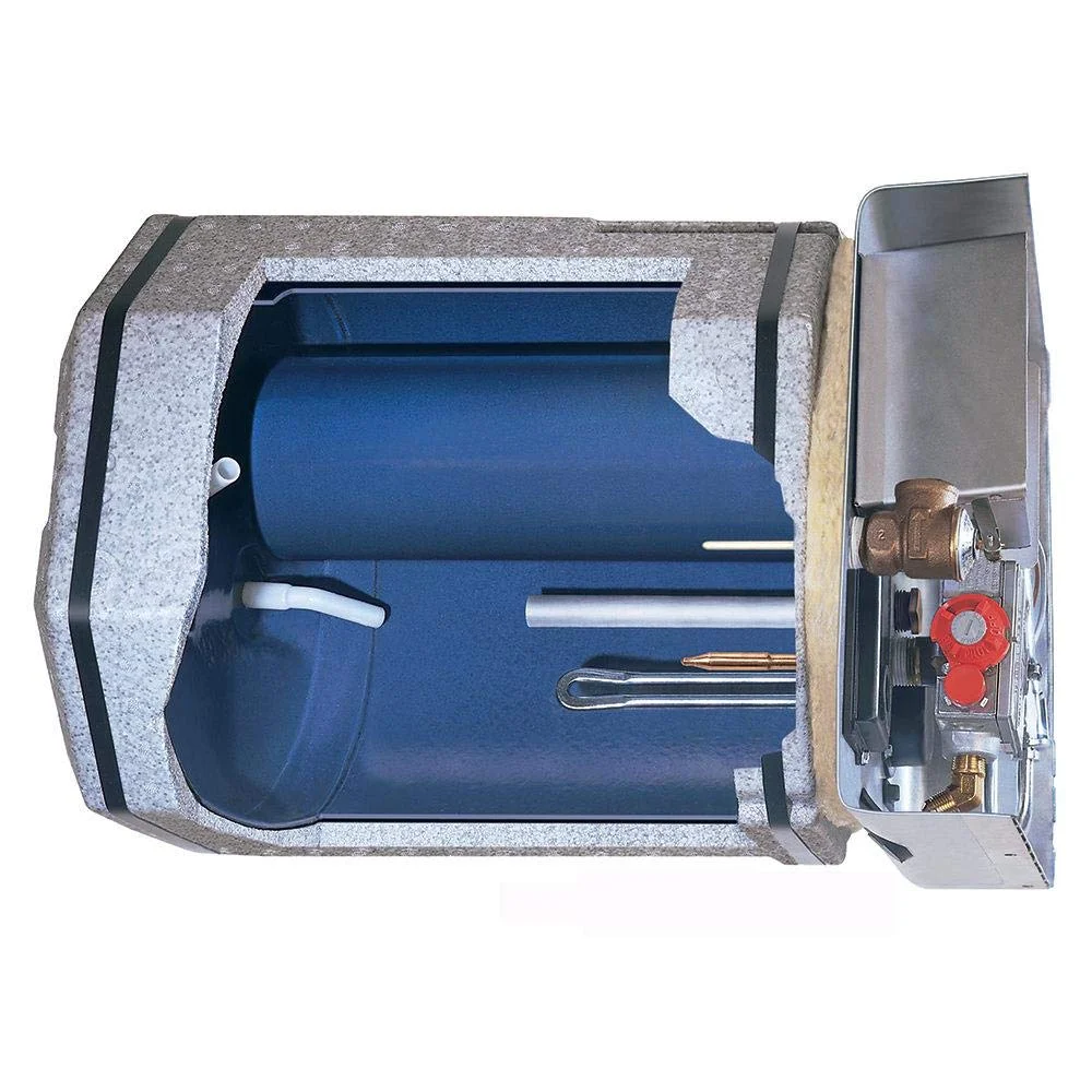 - Porcelain-lined steel tank for long life