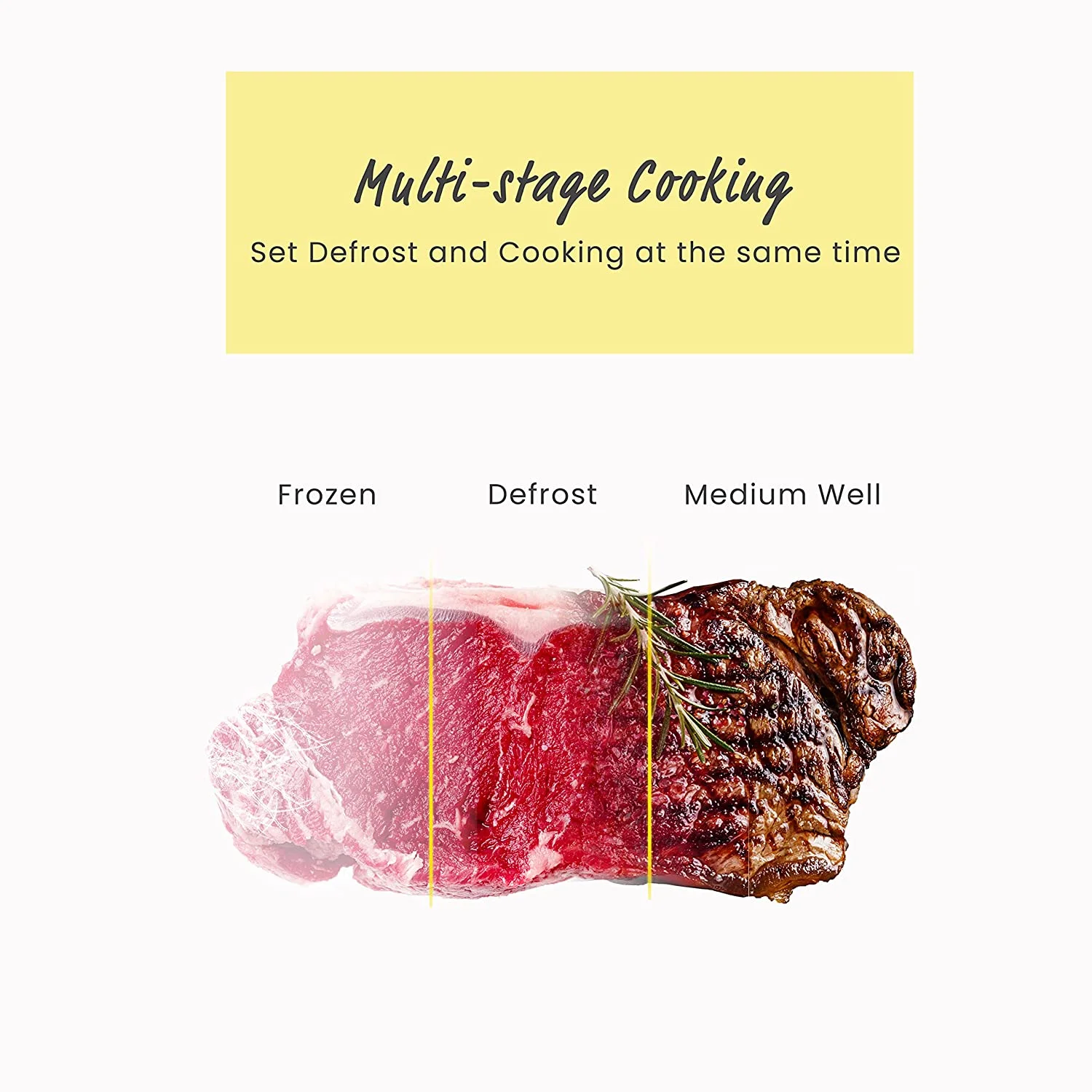- The multi-stage cooking function enables you to finish defrosting and cooking at once.