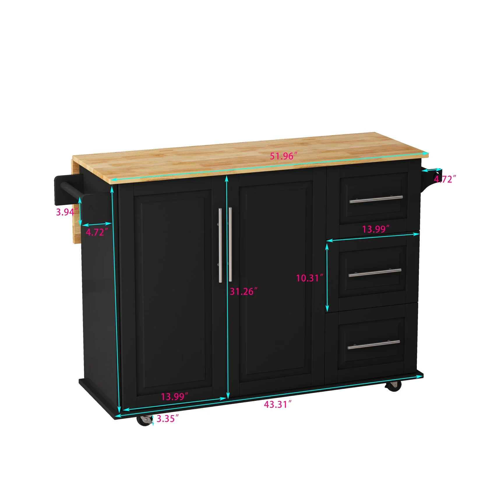 - ??Flexible Movement - Our cart features four smooth-rolling wheels, making it effortless to move around your kitchen. Two of the wheels are lockable, providing stability and safety when needed. Easy to assemble:This kitchen island cart comes with step-by-step assembly instruction and numbered parts and hardware to make sure you can set up it without difficulties.