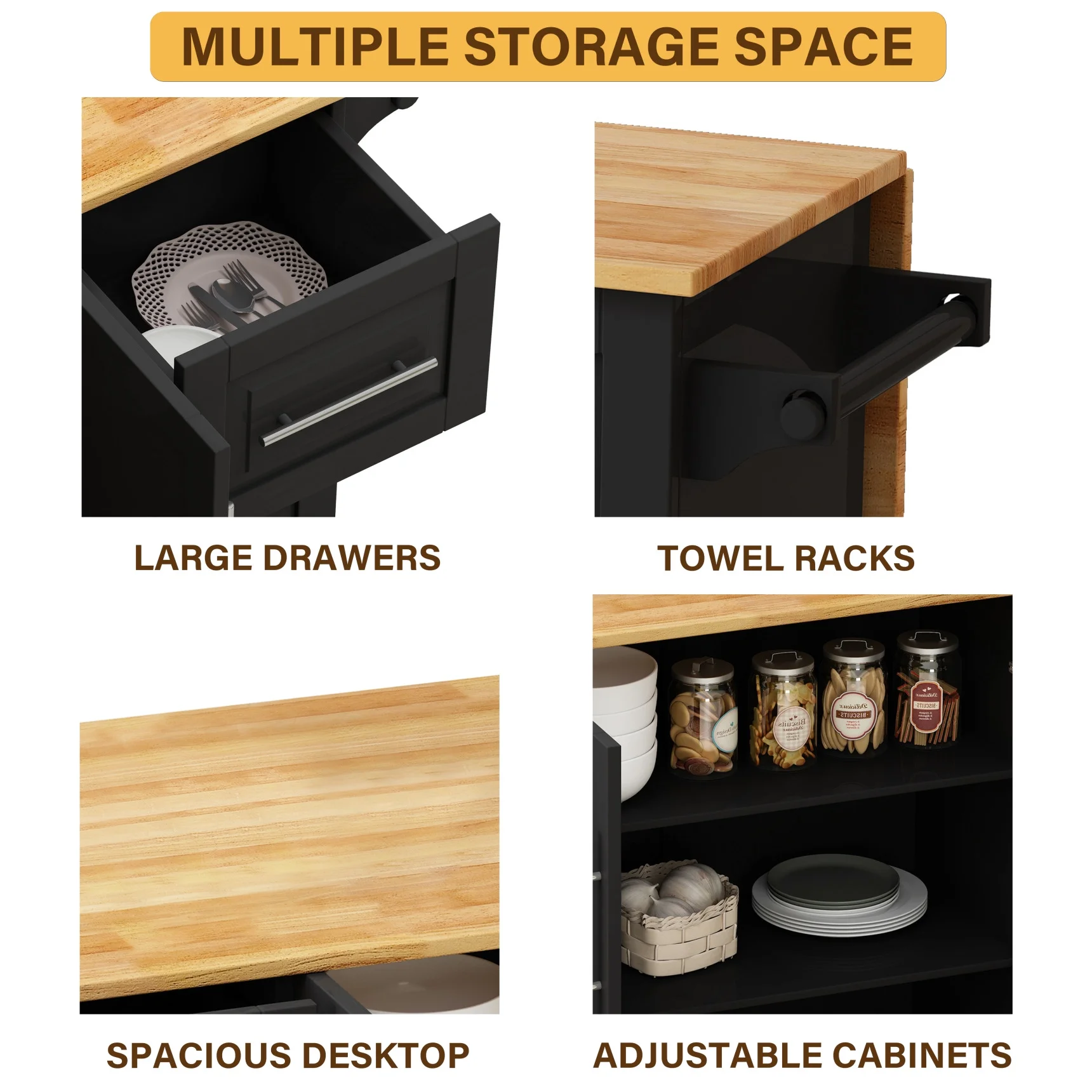 - ??Maximize Your Kitchen Space - This multi-functional kitchen island cart is the perfect addition to your kitchen, offering ample storage and workspace. With 2 cabinets and 2 top drawers, you can keep your kitchen essentials organized and within reach, making cooking and meal preparation a breeze.