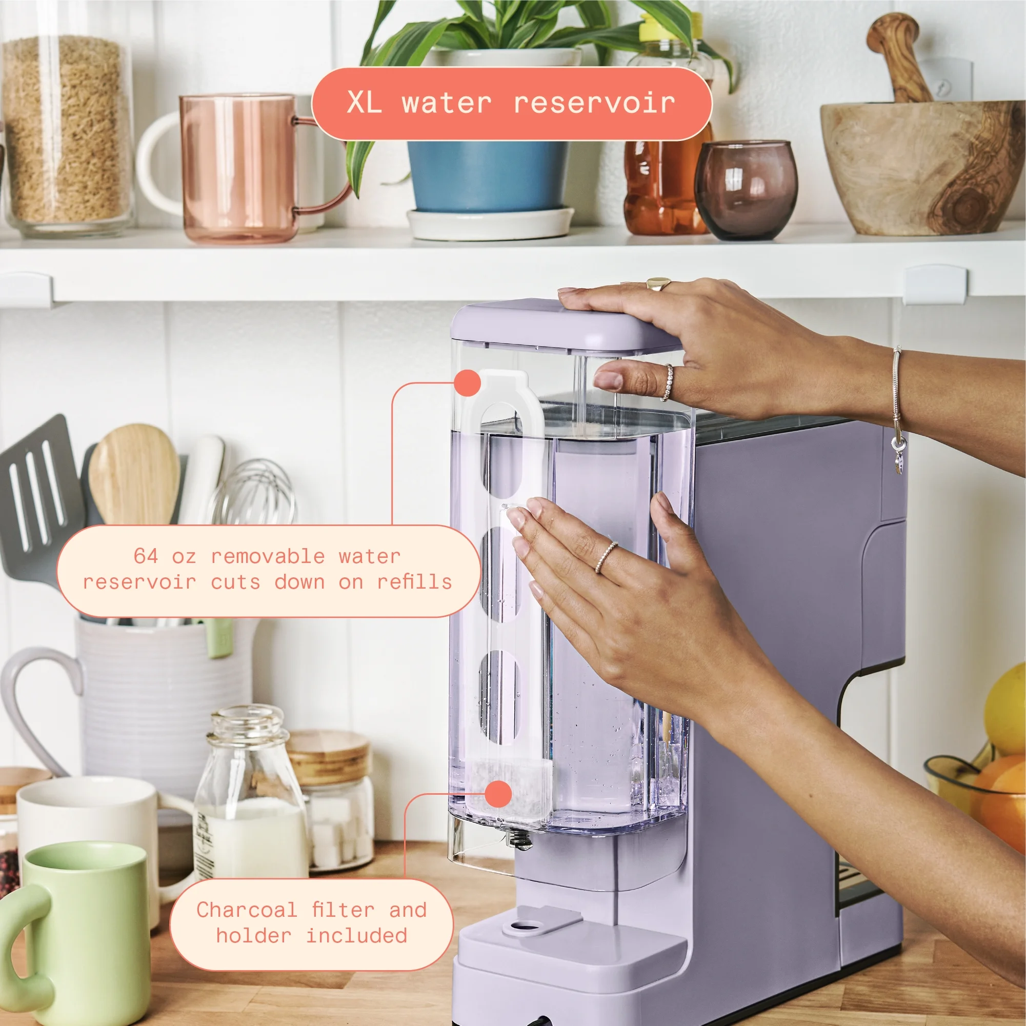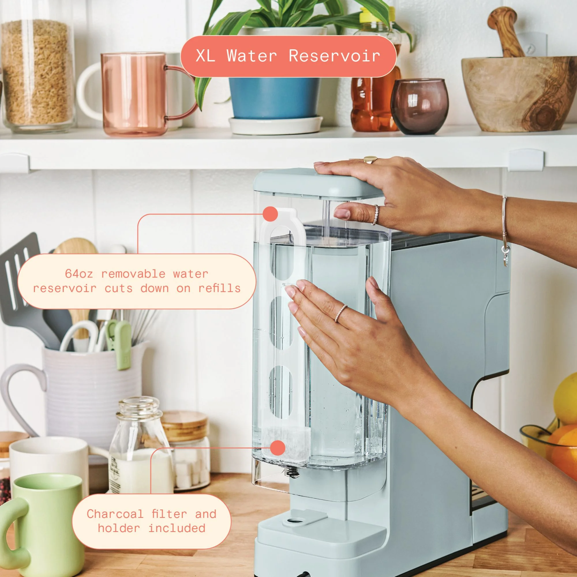 - Includes: 2-in-1 cleaning brush with measuring scoop, charcoal filter, and holder