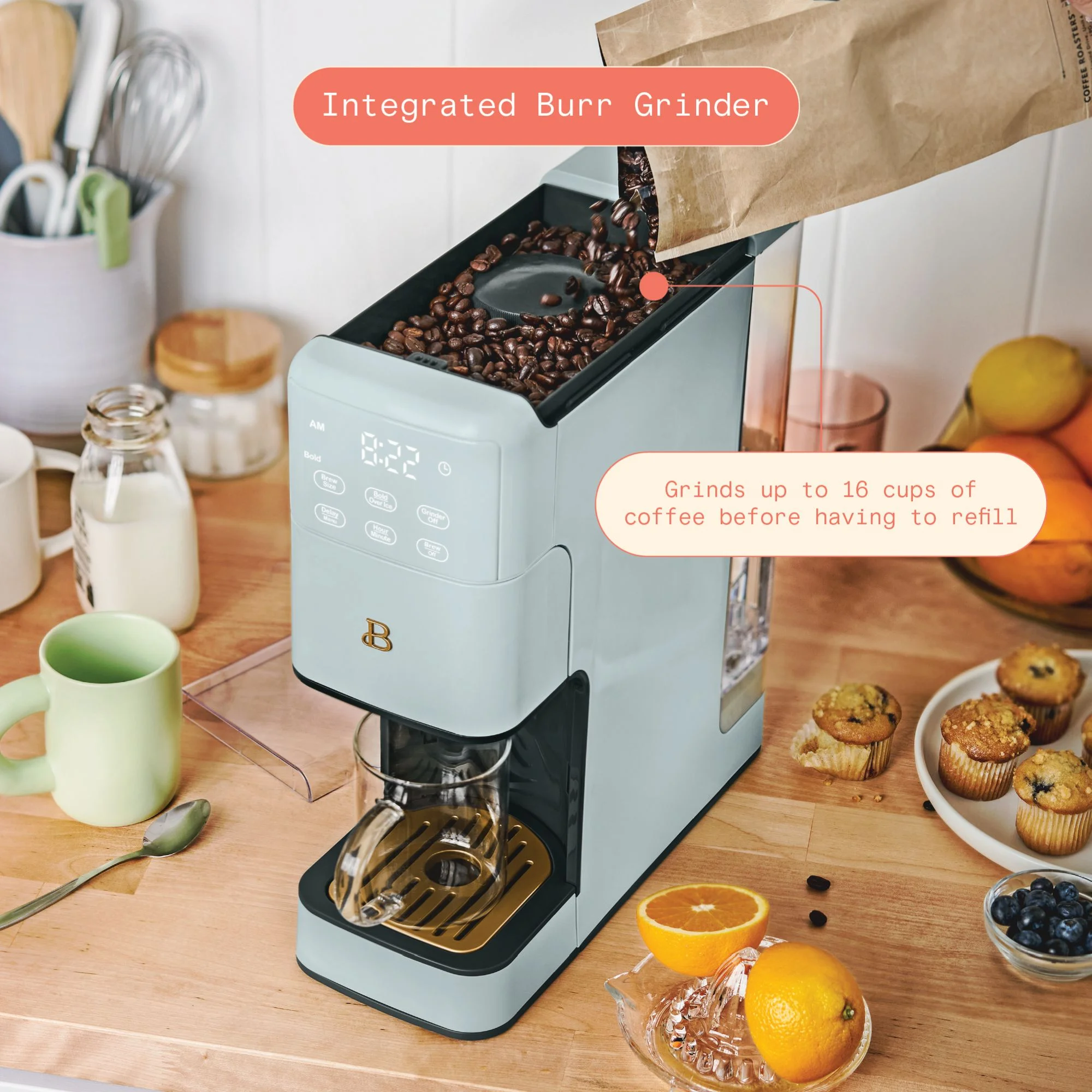 - Integrated burr grinder auto-grinds the precise amount of coffee for any cup size or brew strength selected