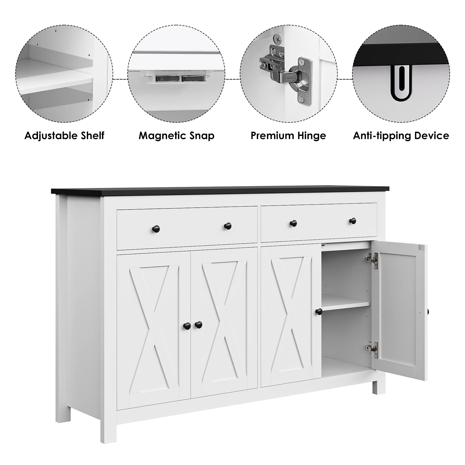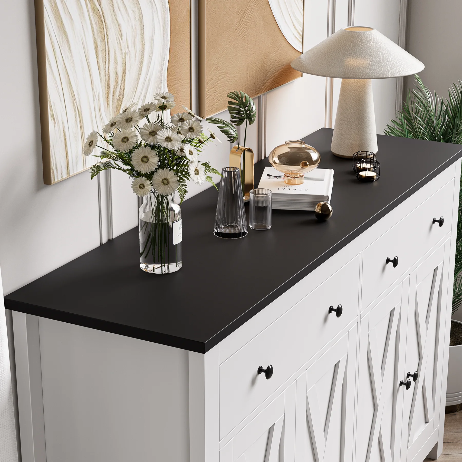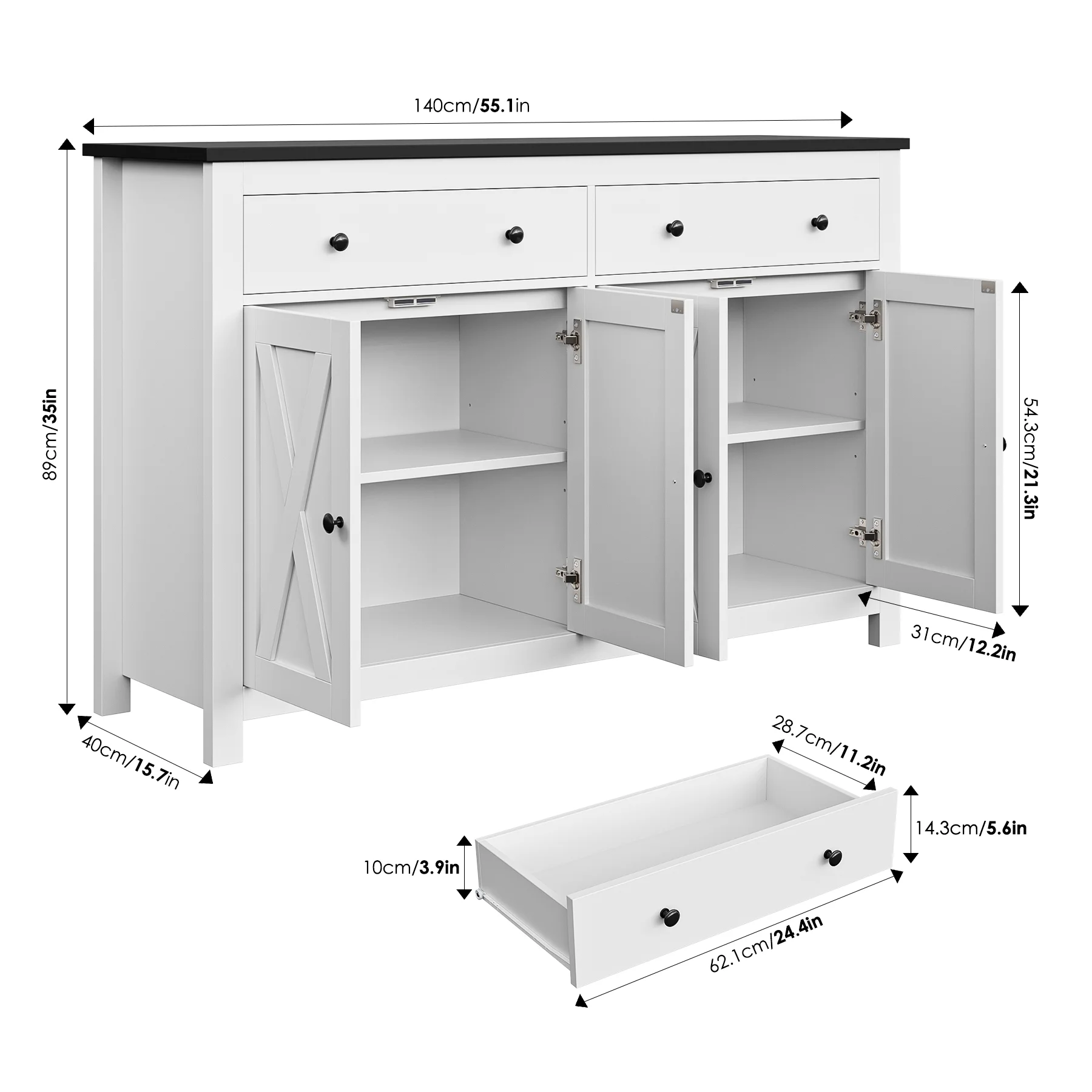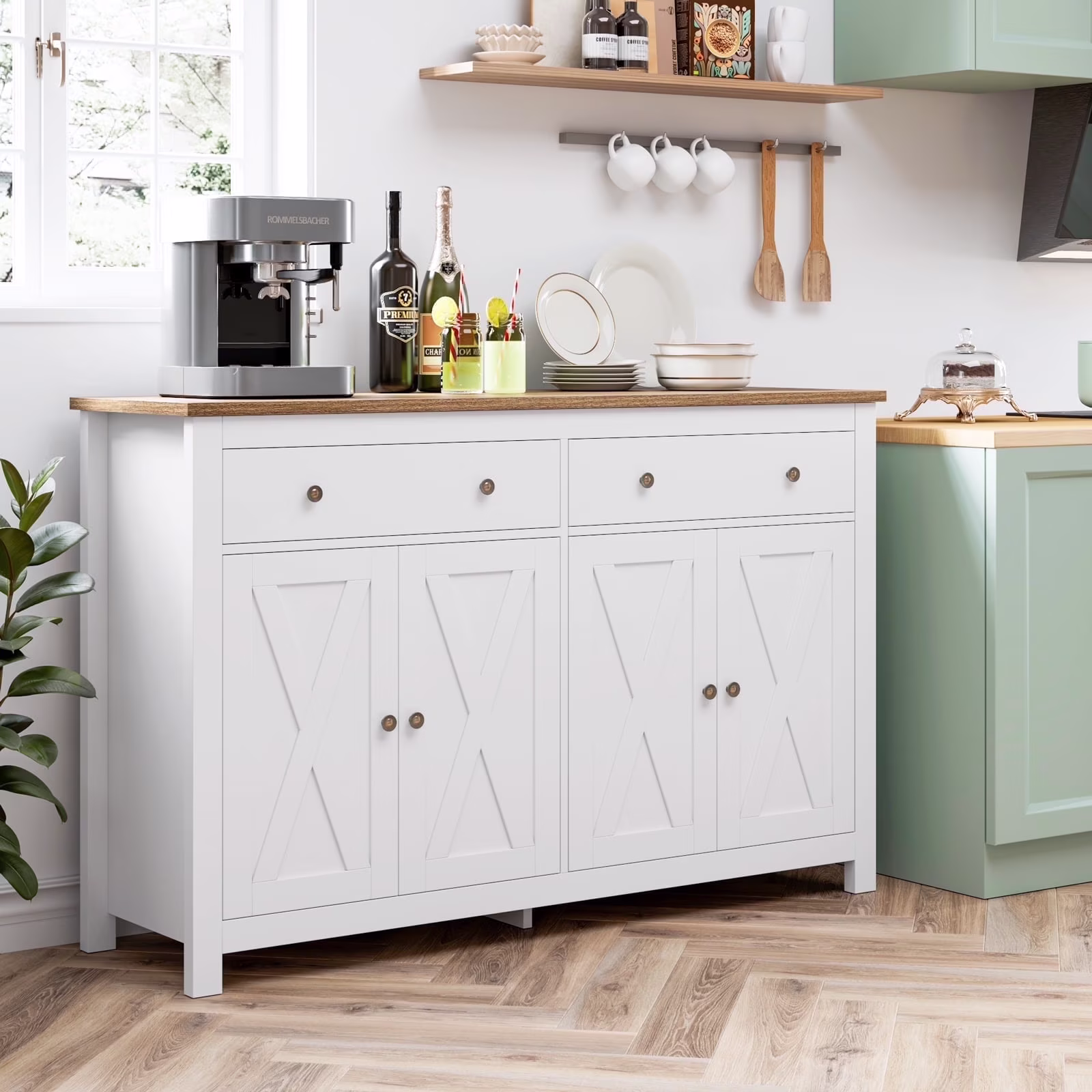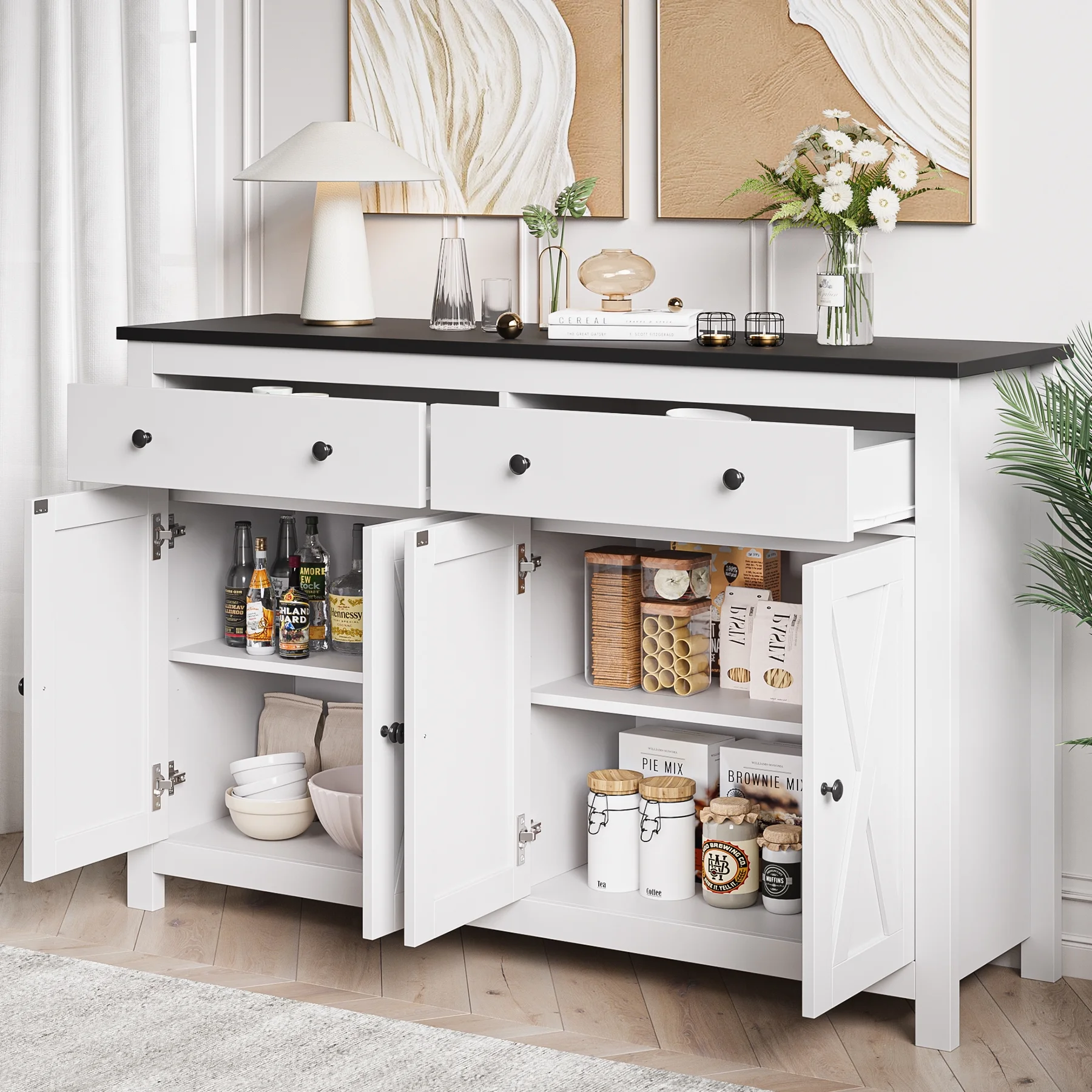 Compliments will come your way after adding this homfa kitchen storage cabinet with doors to your home. Drawing attention with its 2-tone finish, fresh color combination decorate you space with more vivid sense. Four farmhouse style buffet sideboard doors are a perfect complement for the kitchen, living room and bedroom.