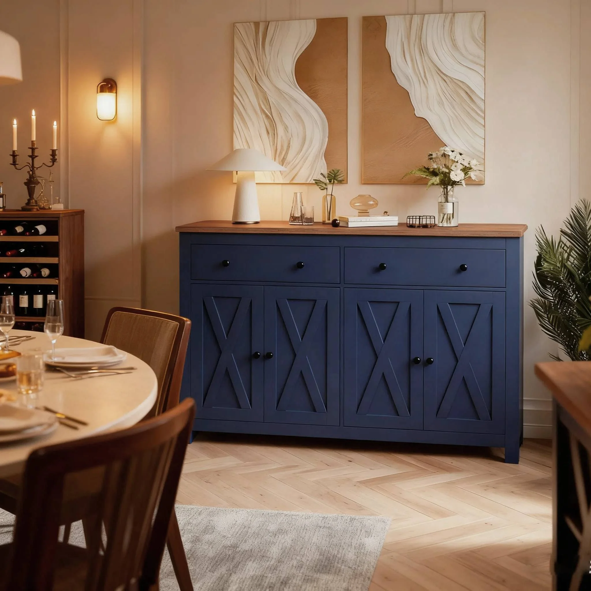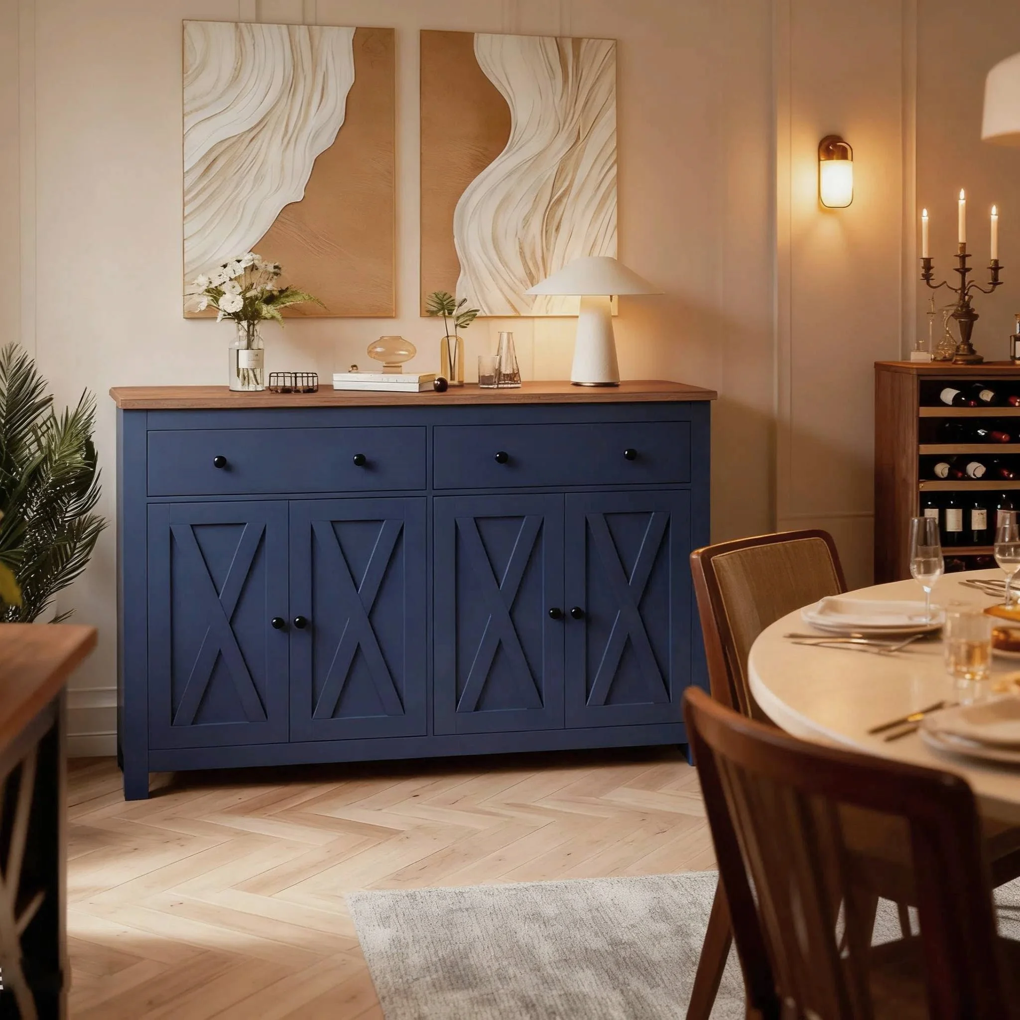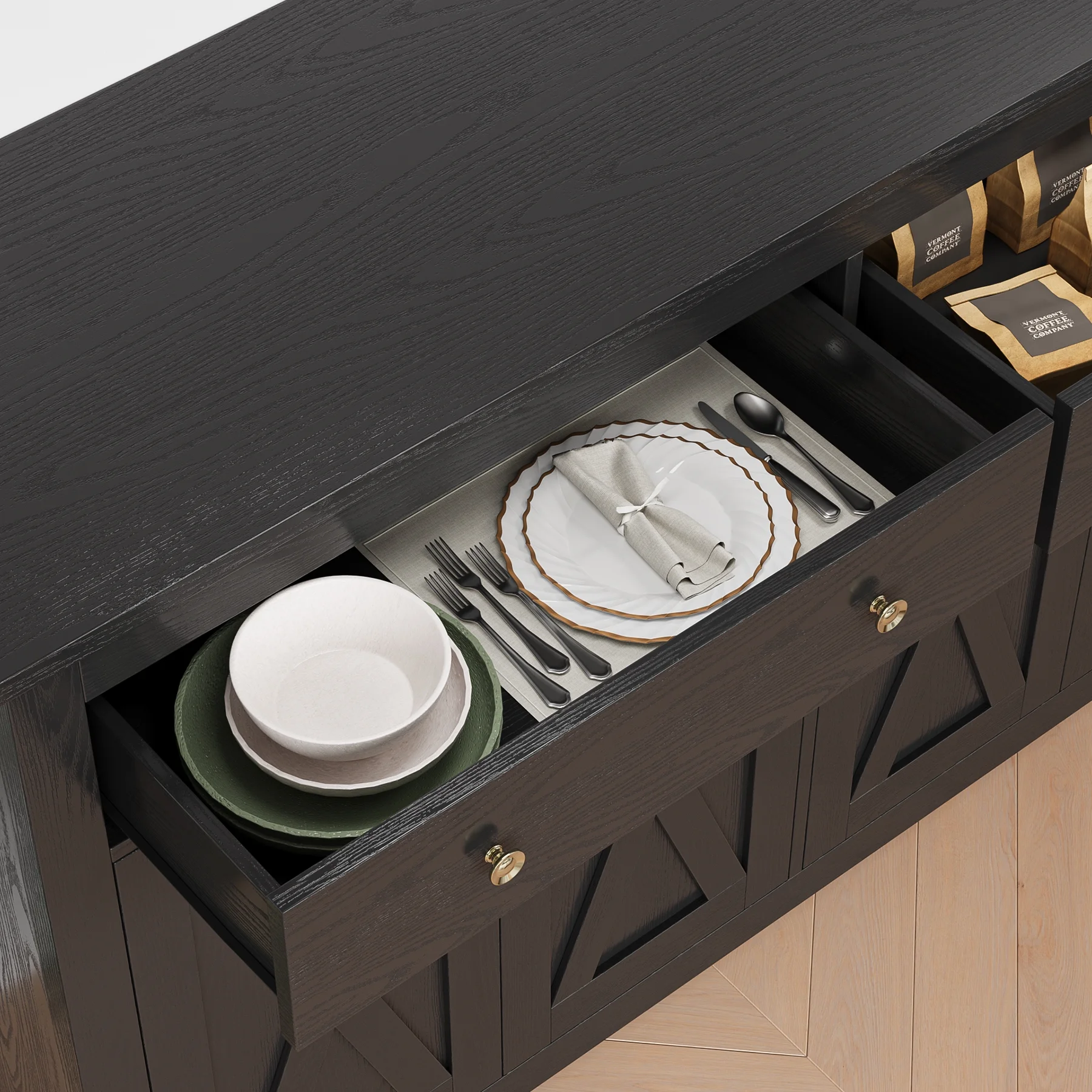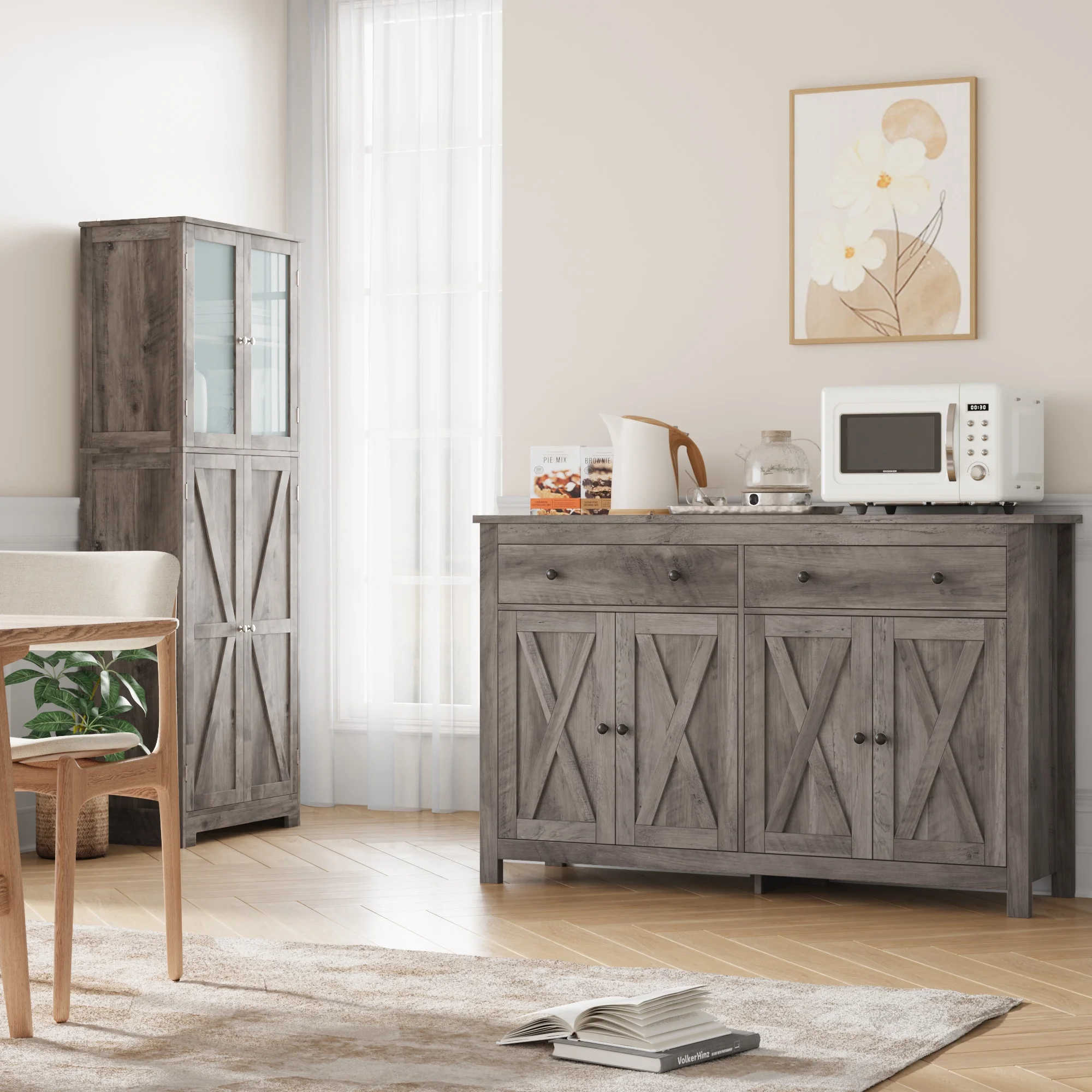 - 【Use in Various Places�?/b>Complement your kitchen or dining room with this farmhouse buffet sideboard cabinet , use the top surface as a practical space for storing cookbooks or style collection and flowers to brighten your home. It could also be used as a console table for your living room or a TV stand.