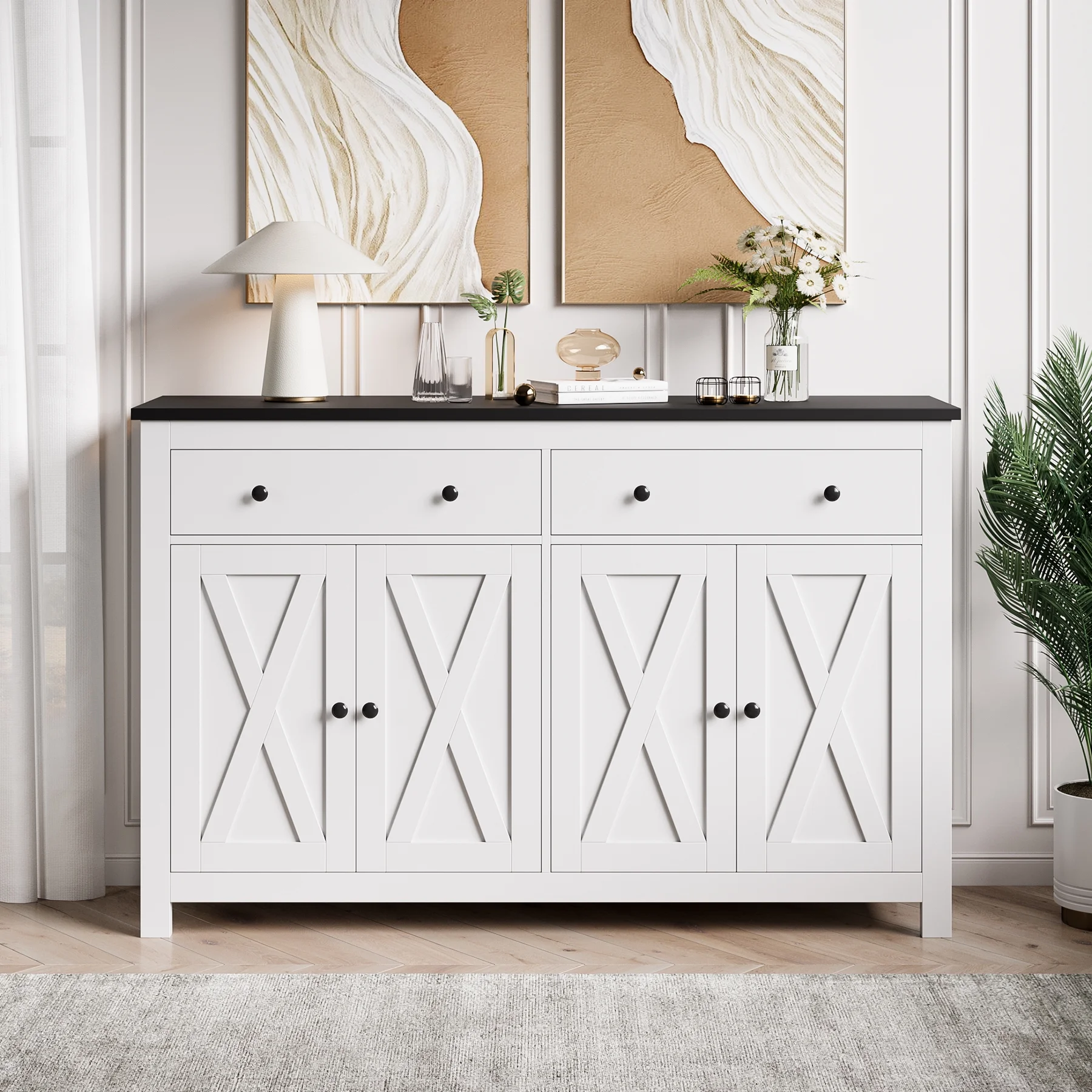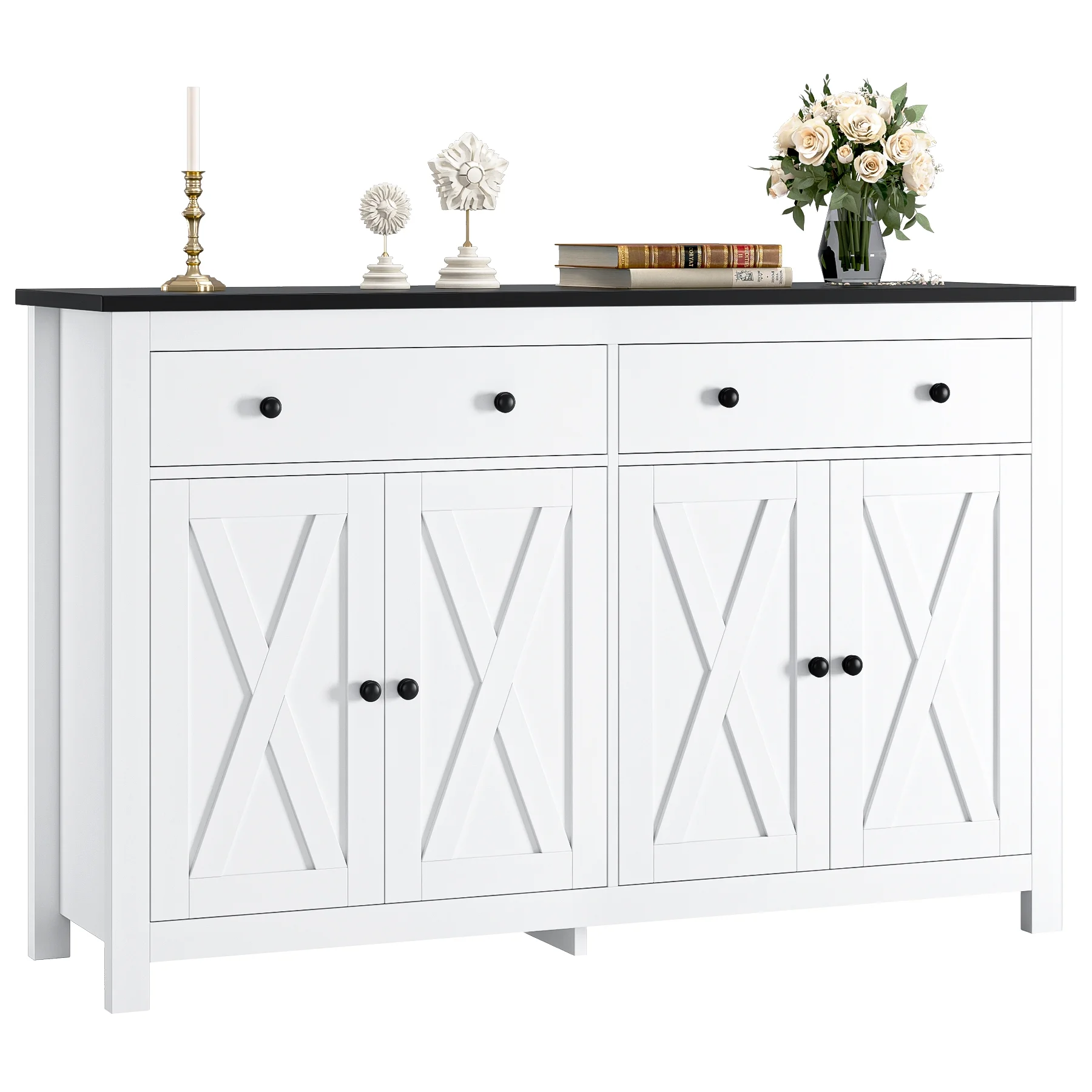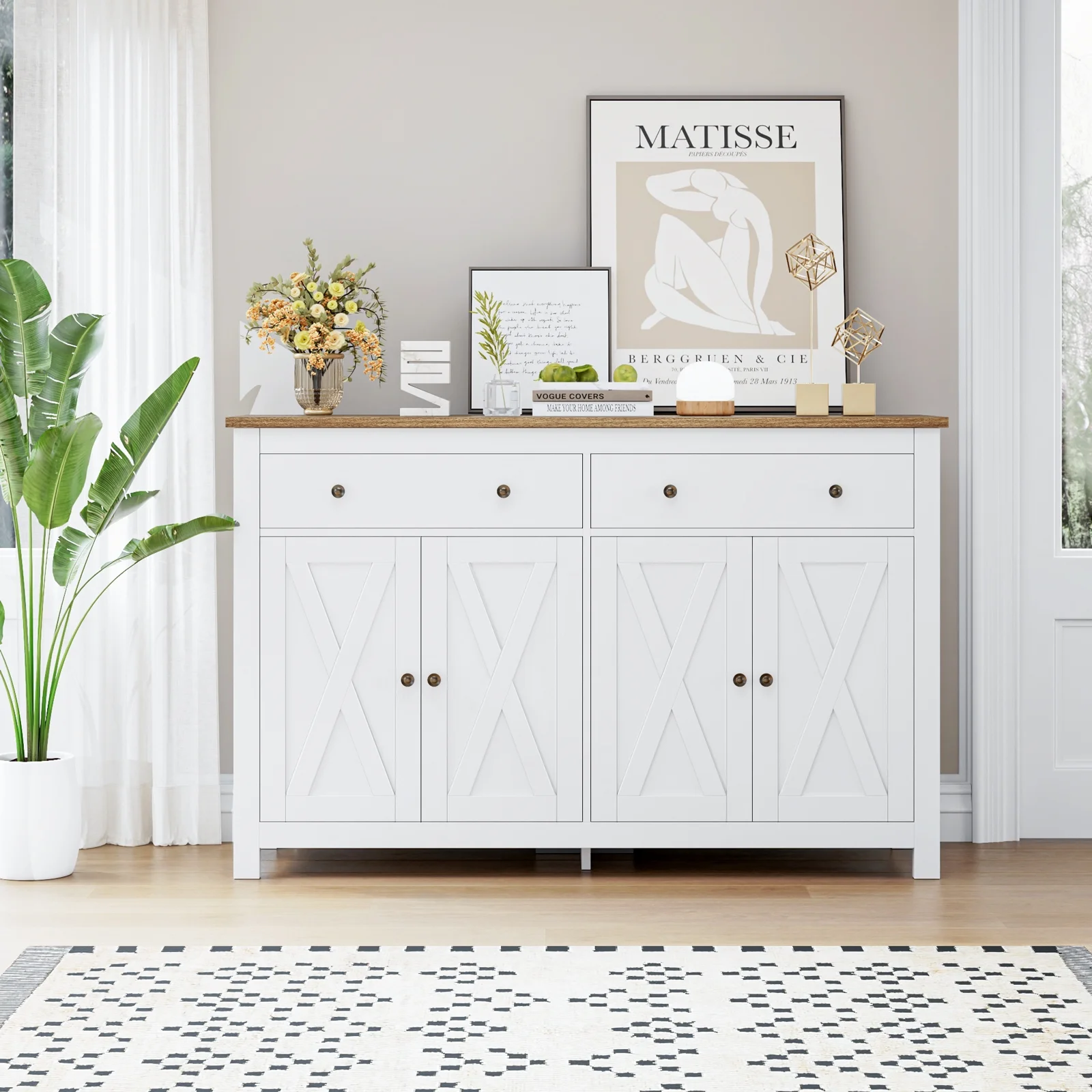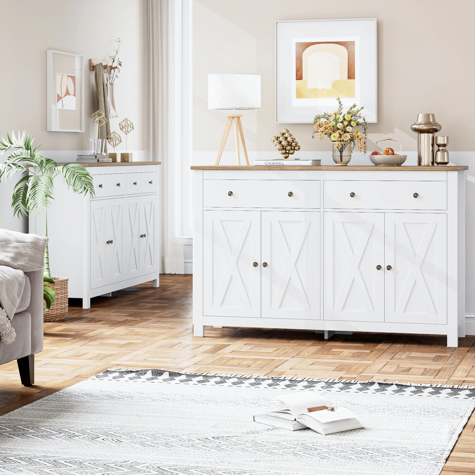 - 【Modern Farmhouse Kitchen Cabinet�?/b>Fresh white and light oak color combination, and classic X-shape pattern buffet cabinet door, this homfa white buffet cabinet easily add more vivid sense to your kitchen.