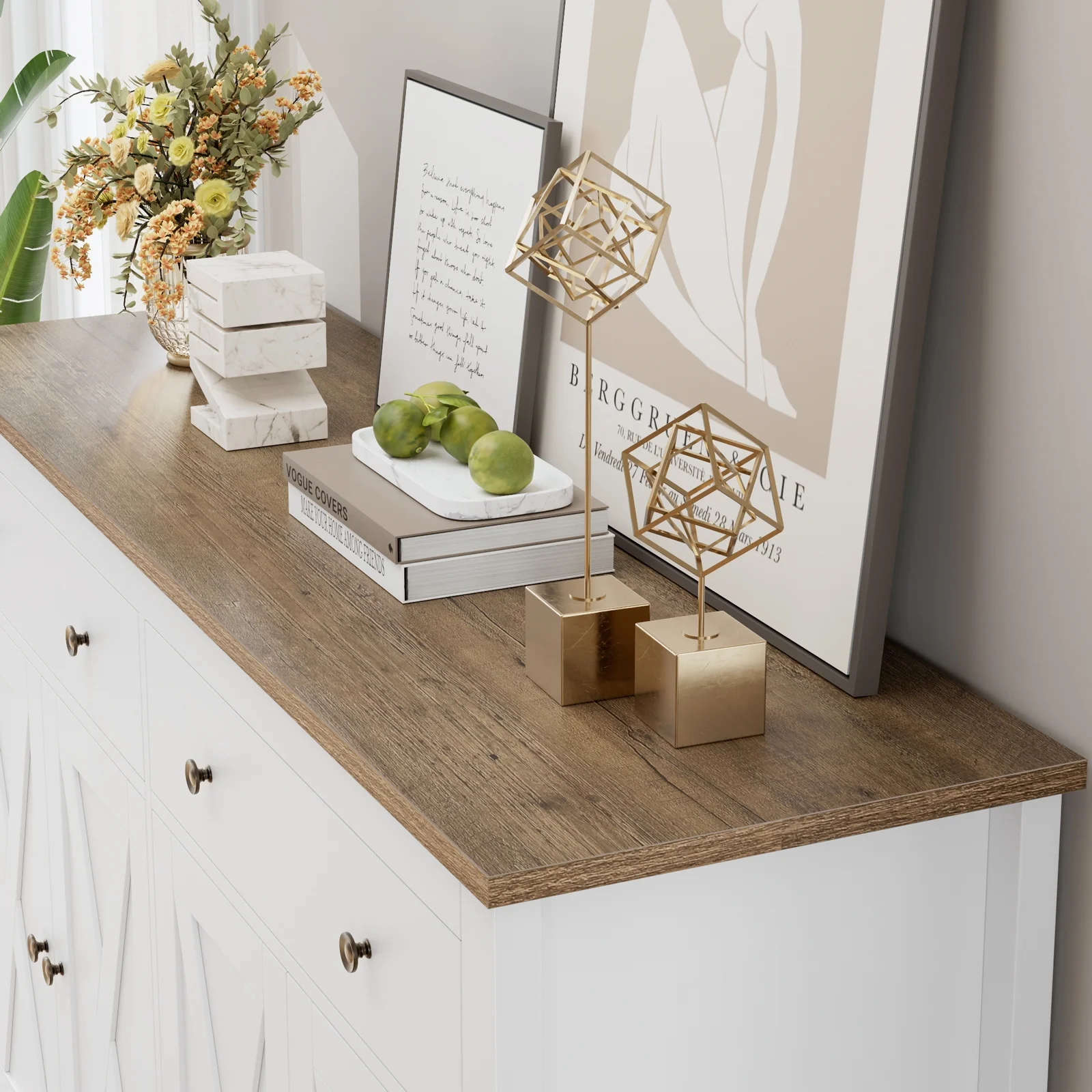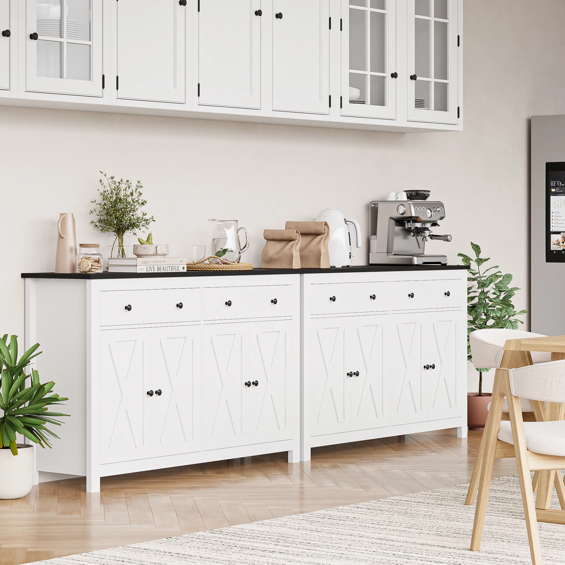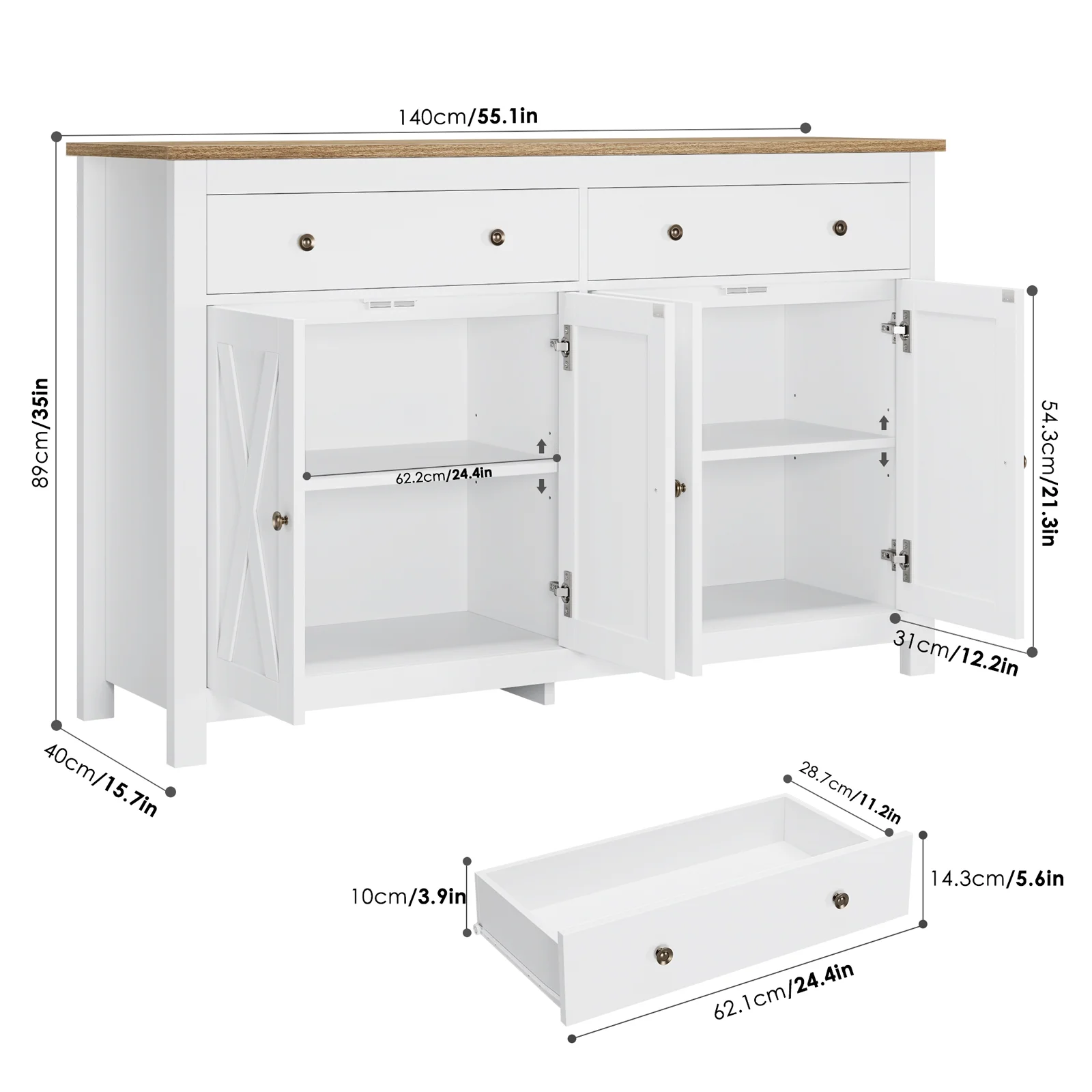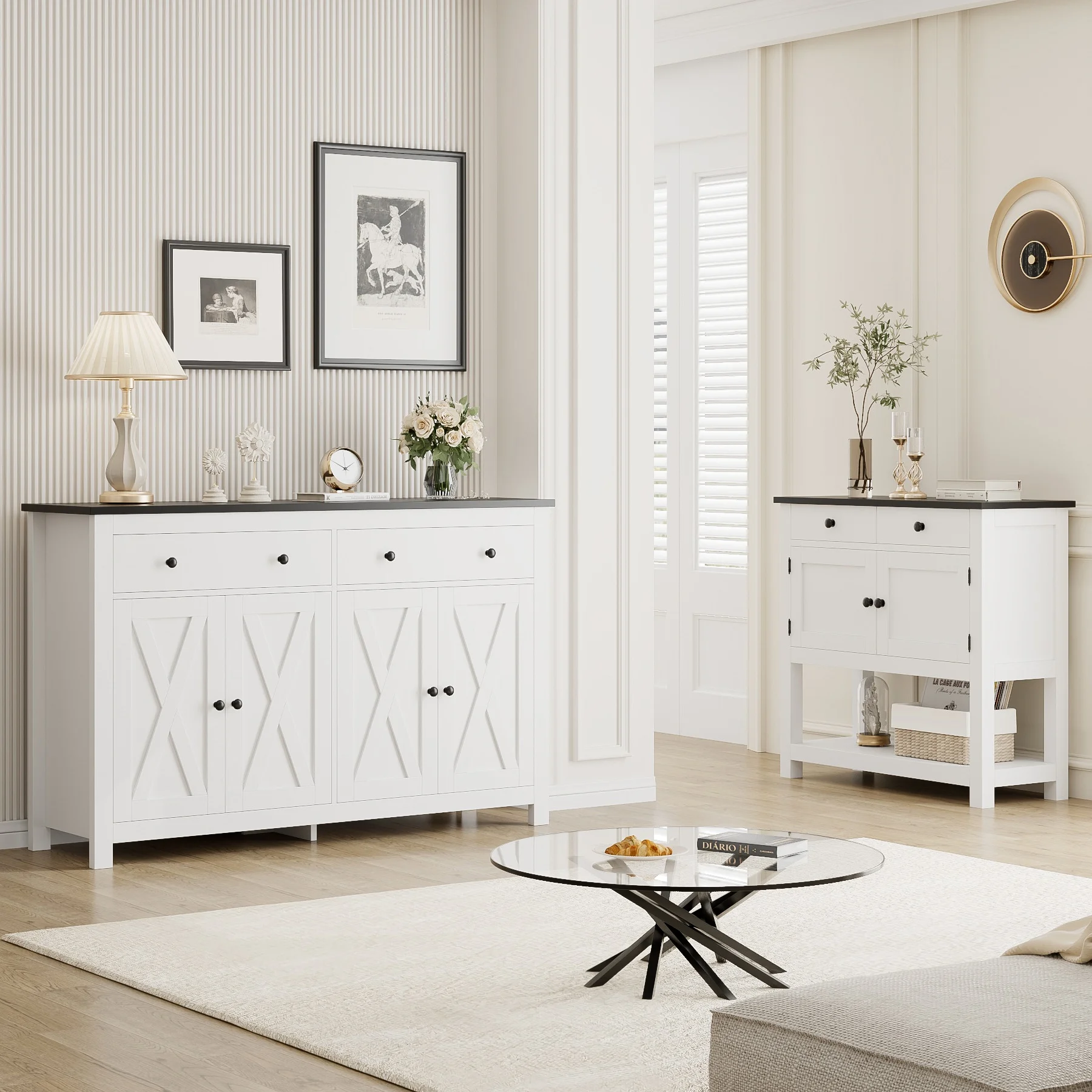 - 【Modern Farmhouse Kitchen Cabinet�?/b>Fresh white and light oak color combination, and classic X-shape pattern buffet cabinet door, this homfa white buffet cabinet easily add more vivid sense to your kitchen.