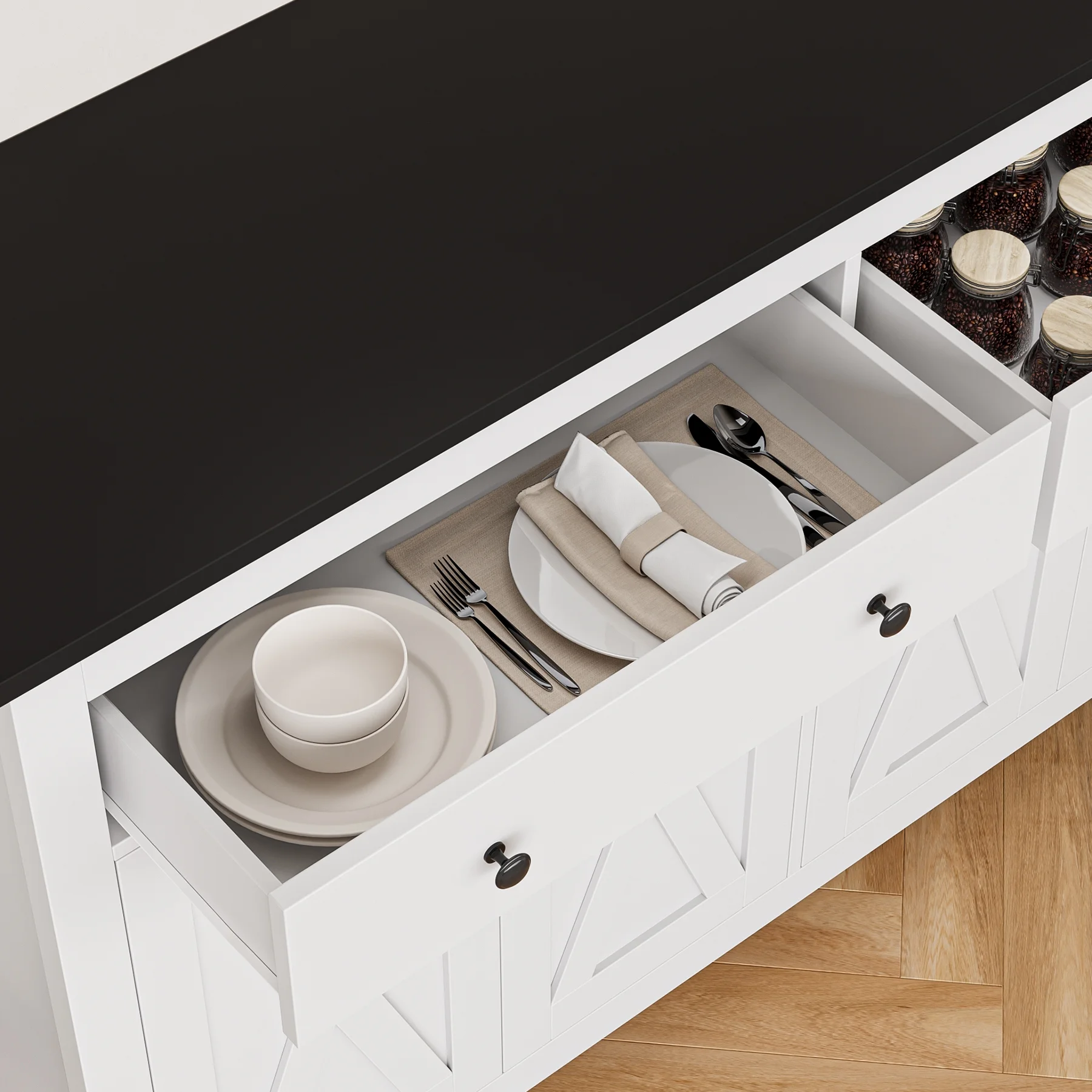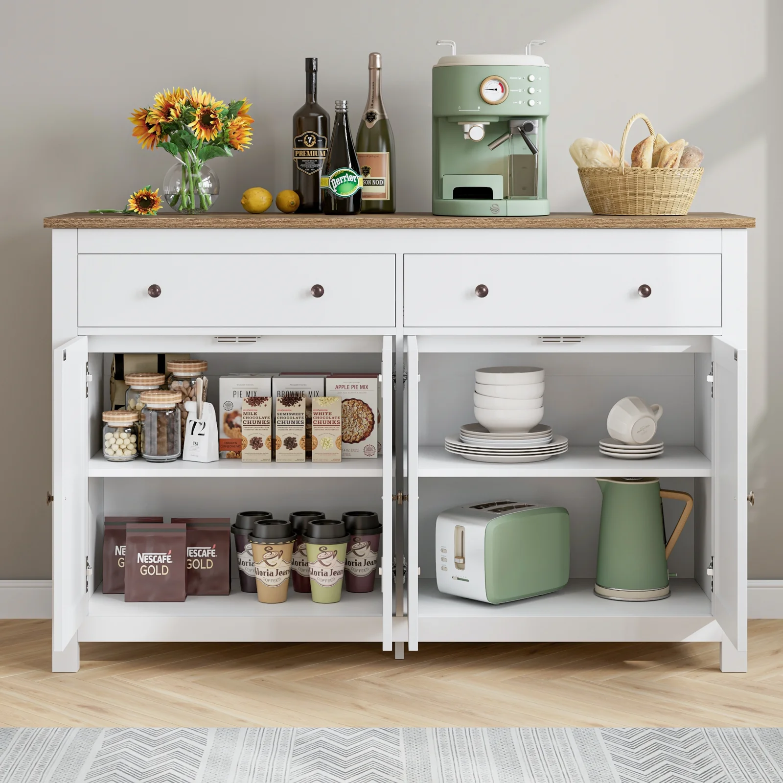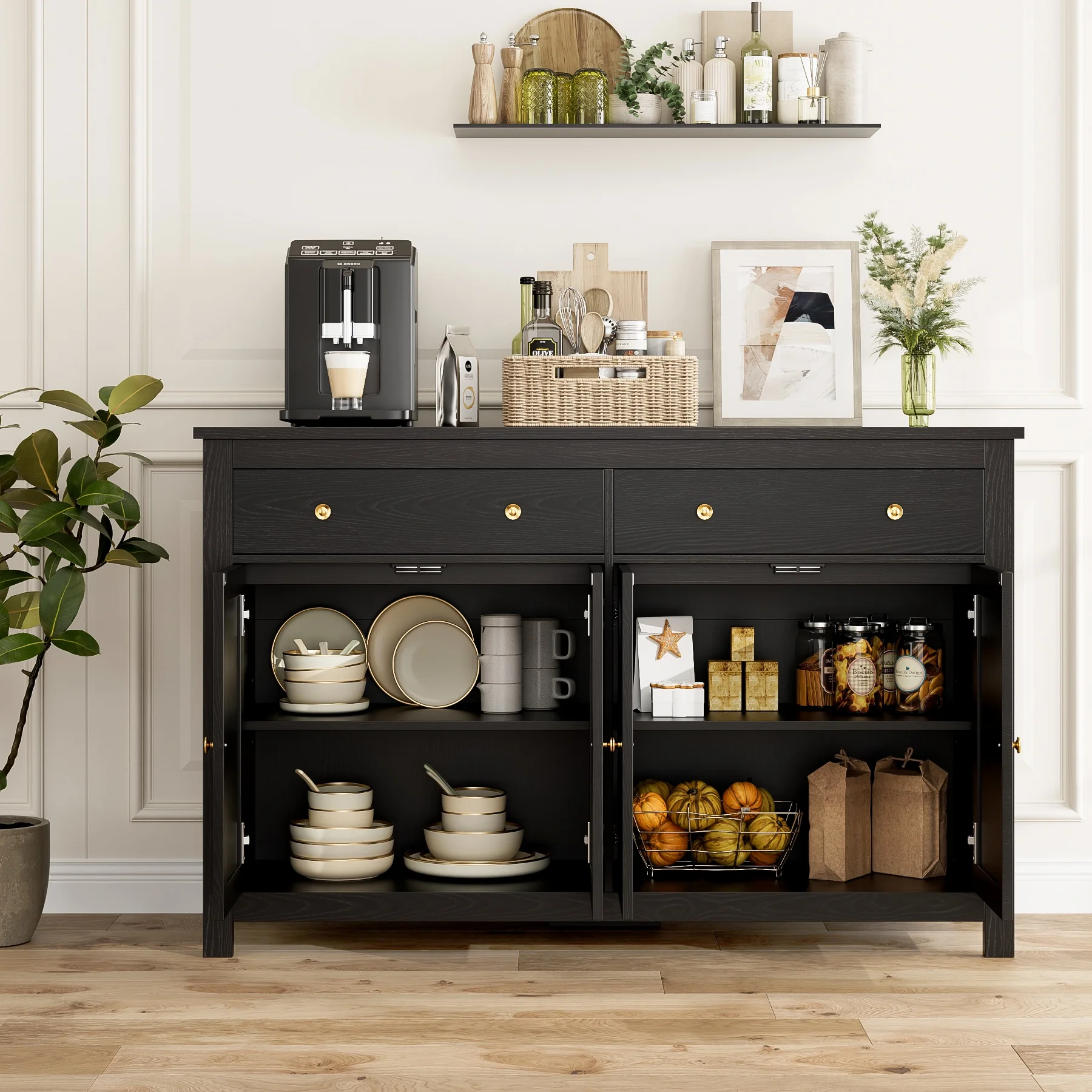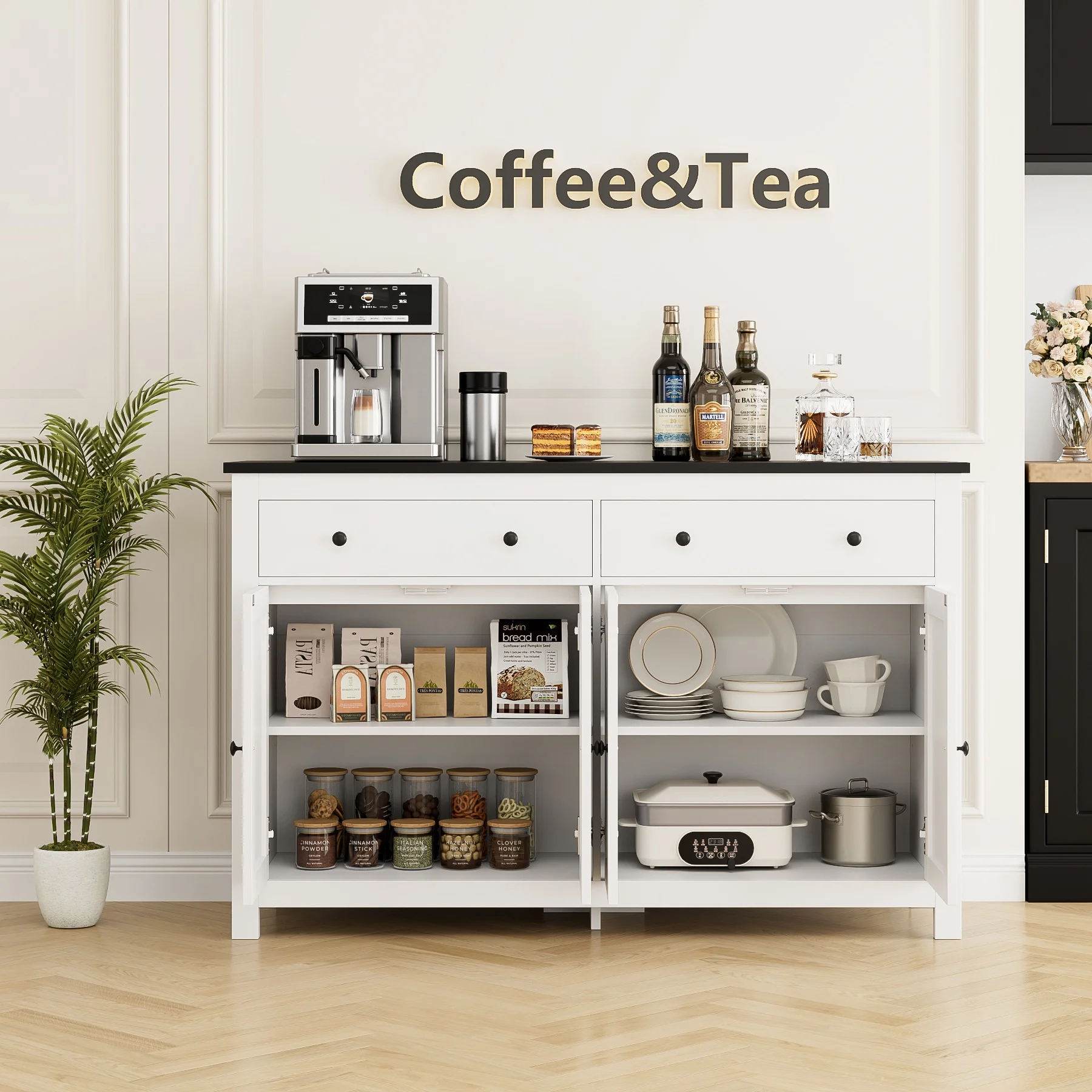 - 【Kitchen Storage Cabinet with 2 Drawers & 4 Doors�?/b>2 large storage drawers and cabinets provide ample space to classify your wine bottles, seasoning cans, tableware, food, etc.
