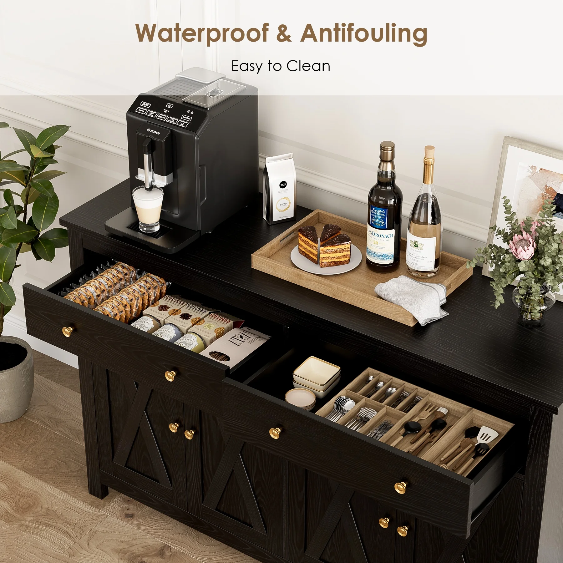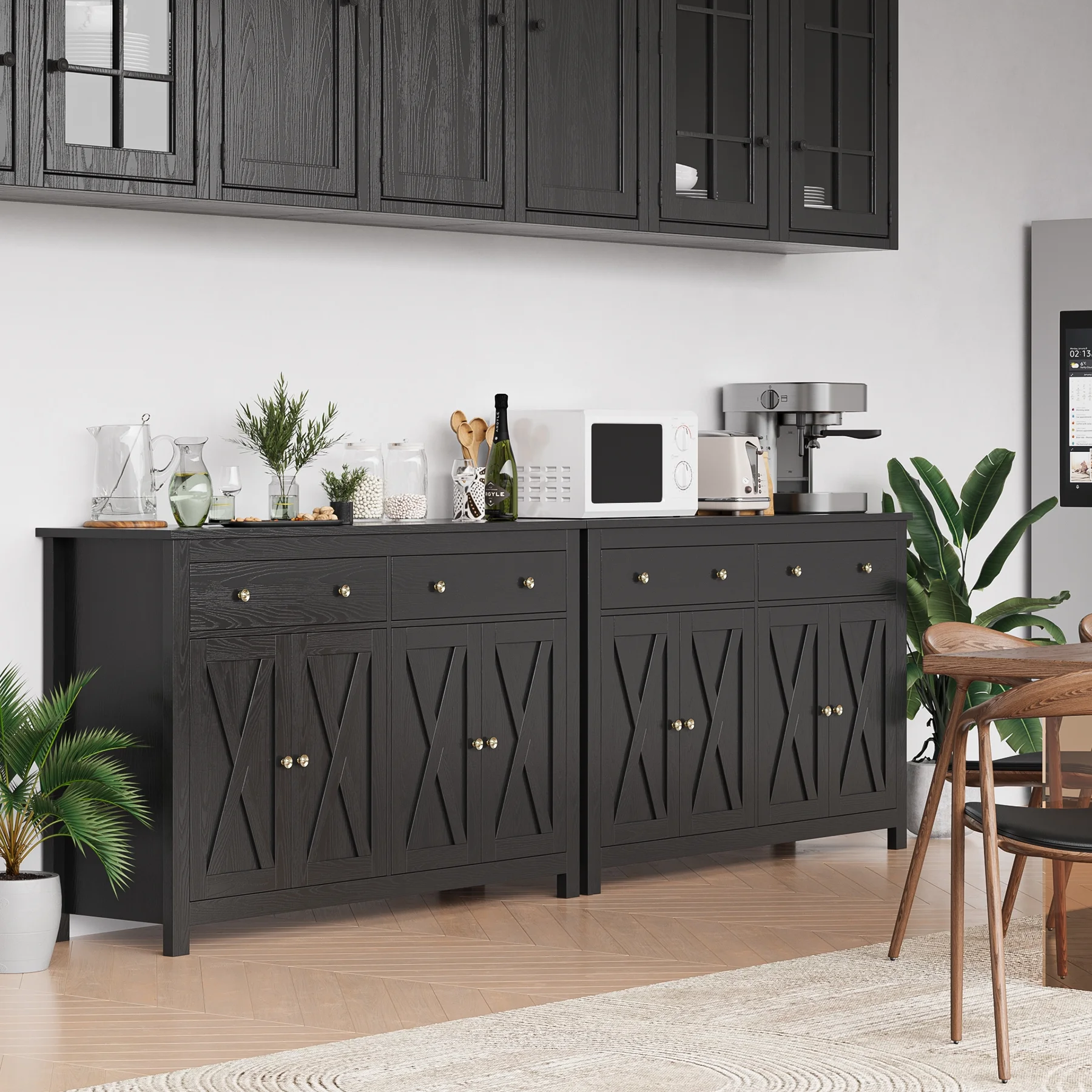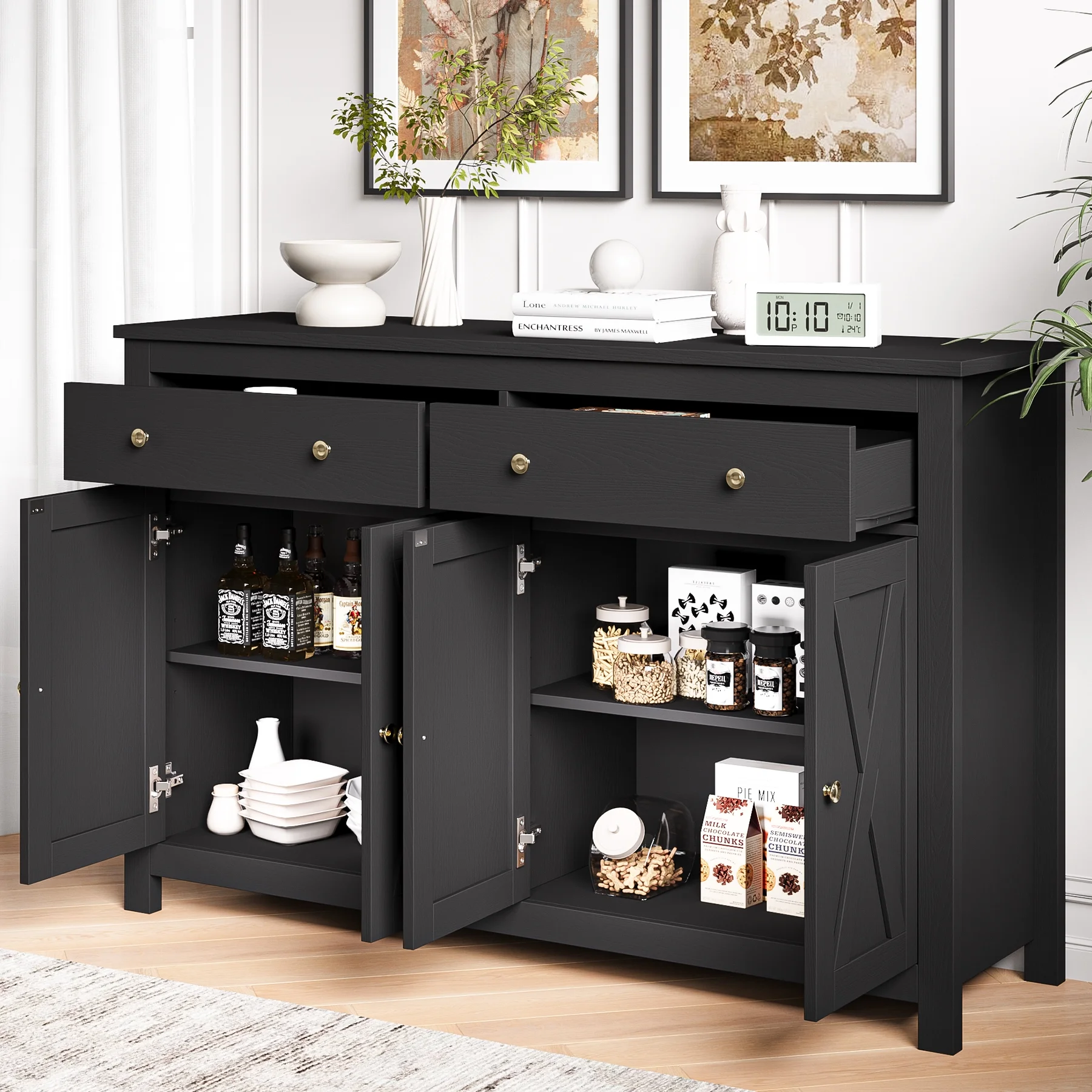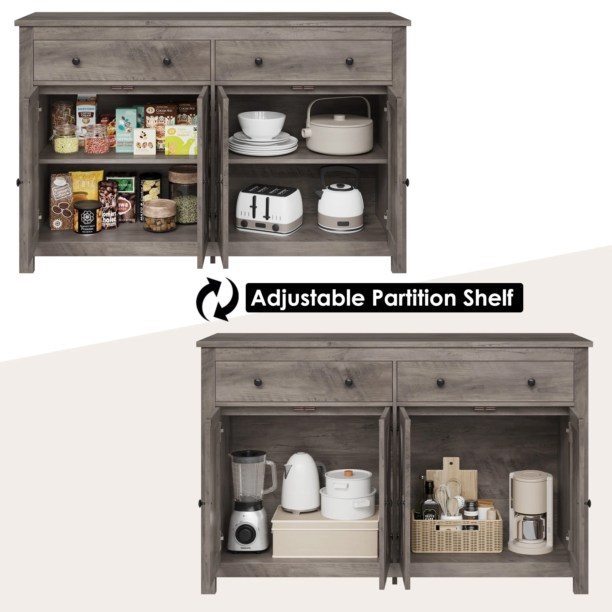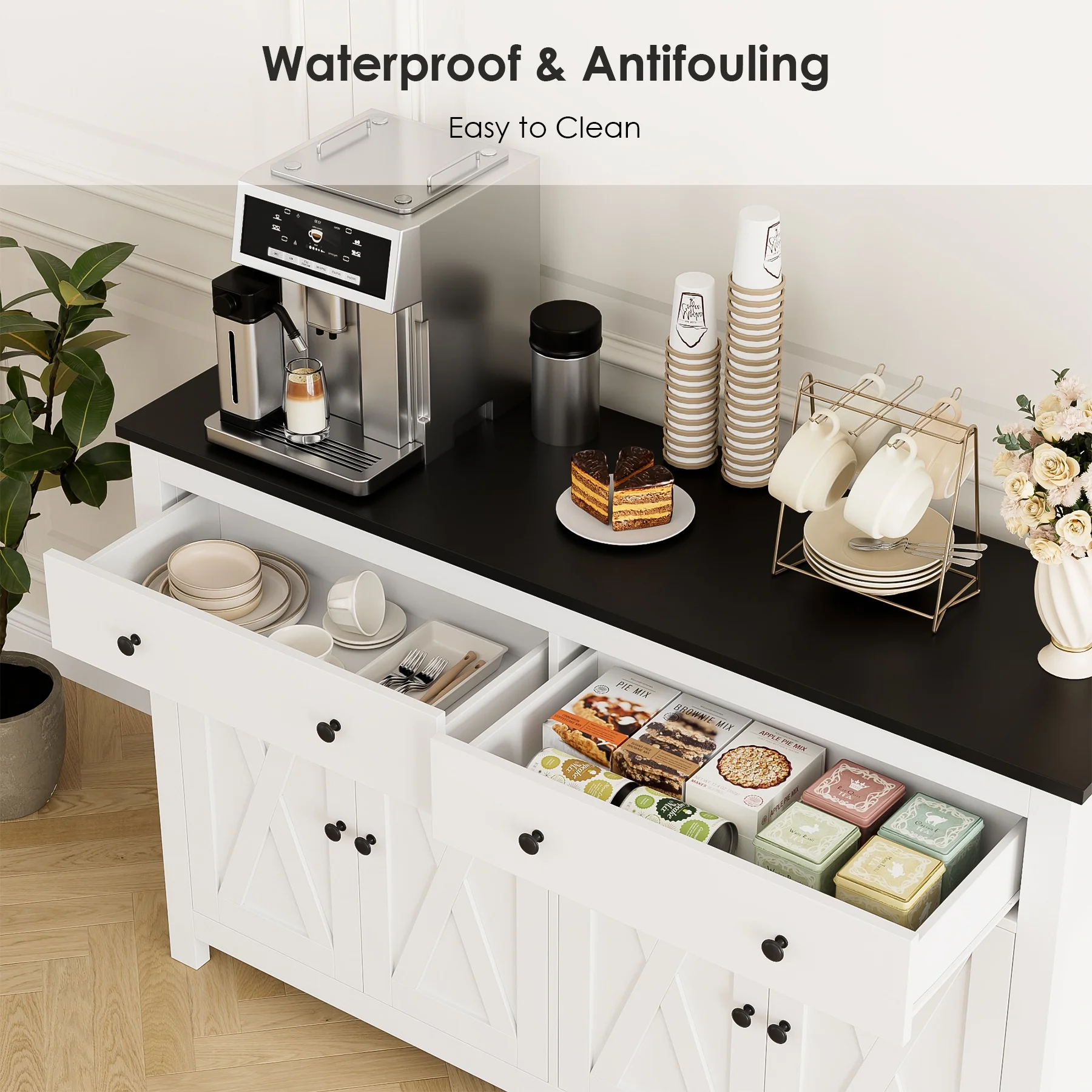 - 【Kitchen Storage Cabinet with 2 Drawers & 4 Doors�?/b>2 large storage drawers and cabinets provide ample space to classify your wine bottles, seasoning cans, tableware, food, etc.