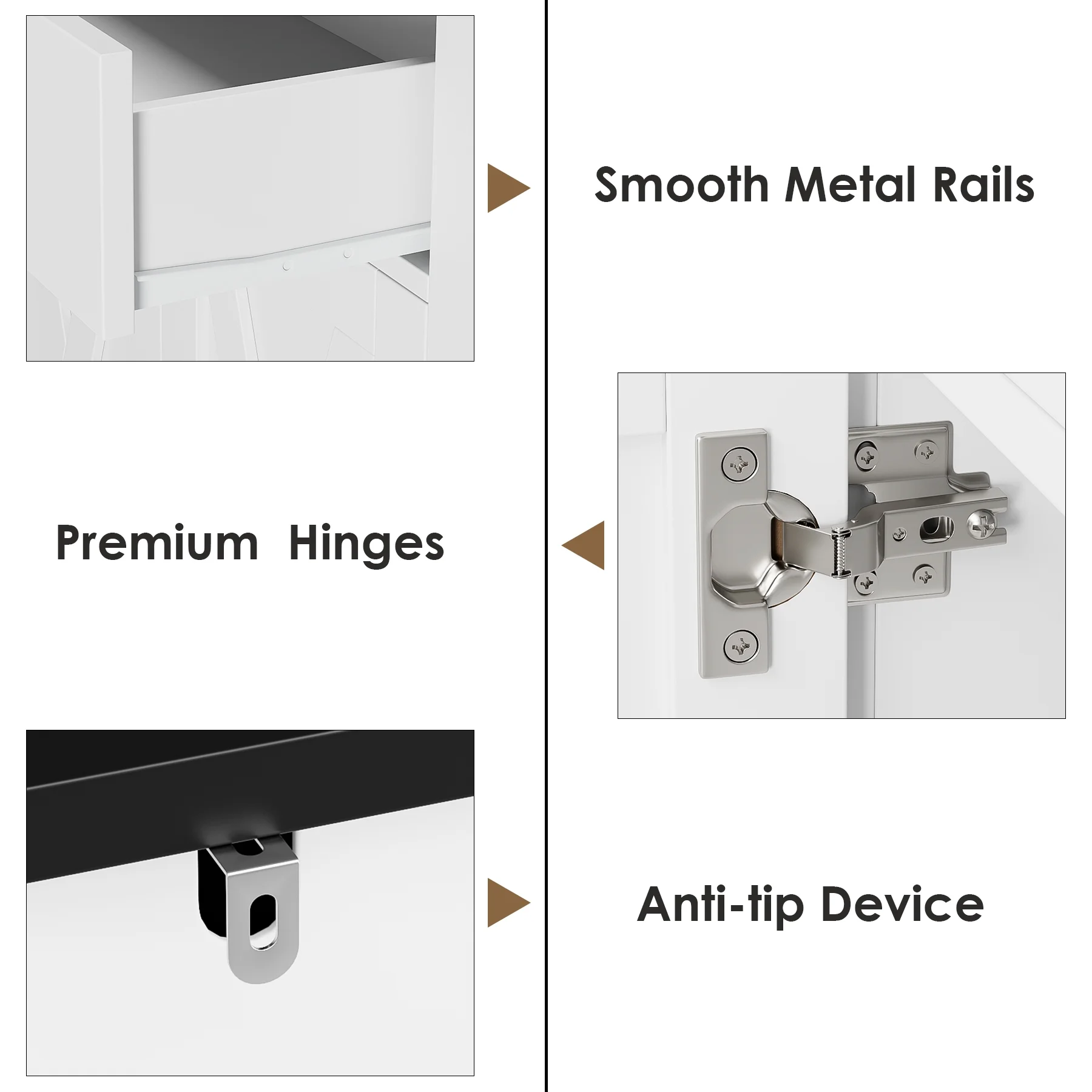 This Homfa wood farmhouse white kitchen storage cabinet with doors and shelves is a perfect storage solution. 2 large capacity storage drawers help store dishes, knives, and other little kitchen things. This homfa kitchen storage cabinet has double adjustable dividers bringing more flexibility to the interior shelf space, making more diverse storage need available. Tableware, kettles, condiments, kitchen appliances, all of them will get an excellent way to store in this white kitchen buffet cabinet with storage.