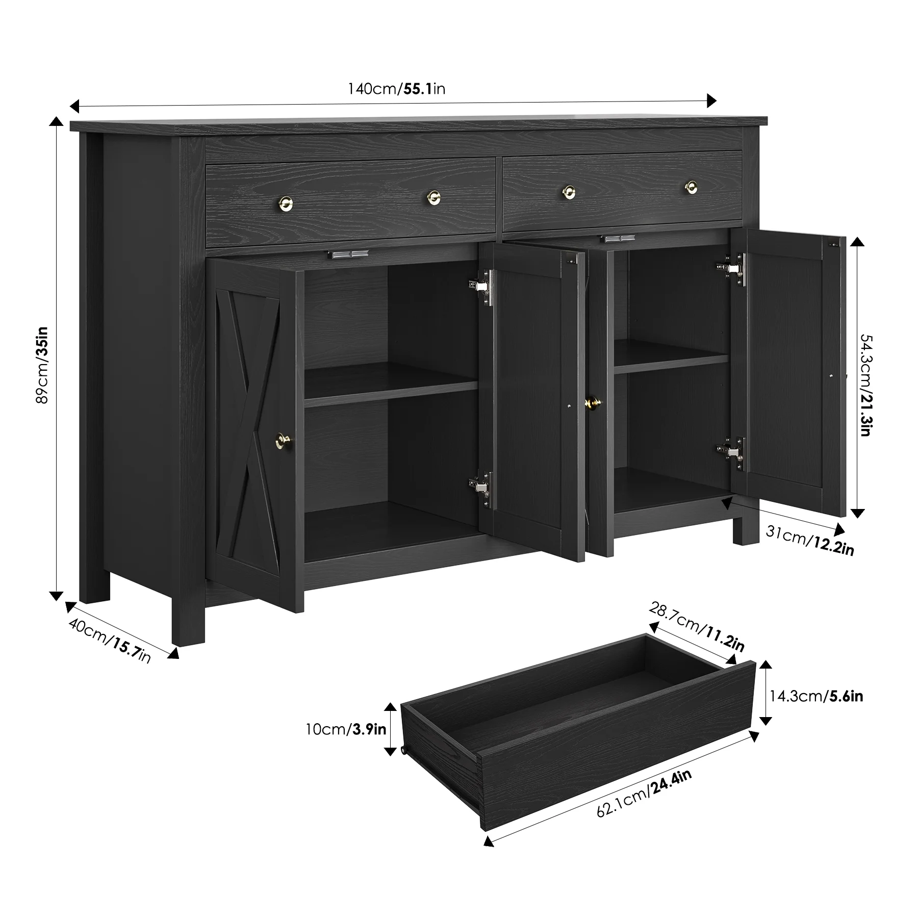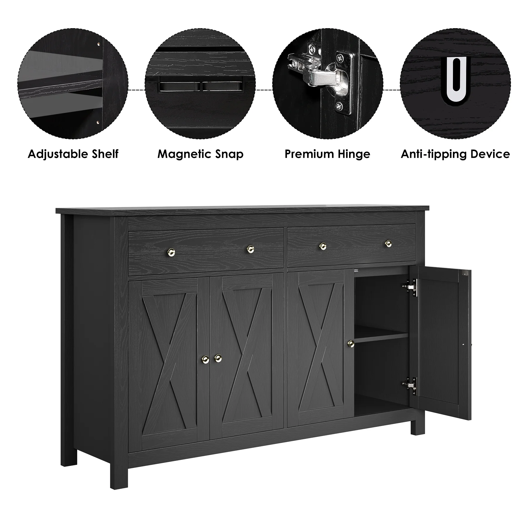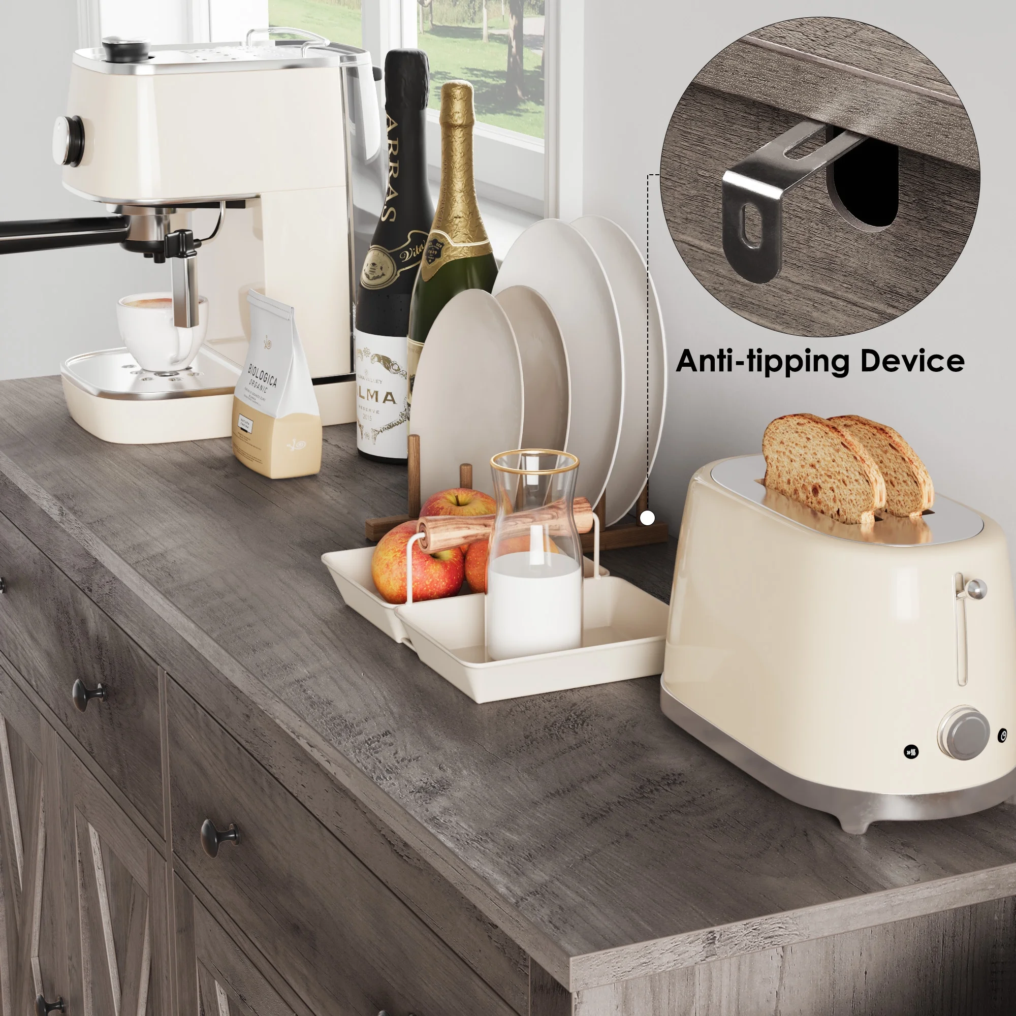 - 【Sturdy & Durable�?/b>This buffet cabinet with storage is made of slightly denser and stronger MDF material for better quality, which is stronger than conventional particleboard. The design shape of the base increases stability, the kitchen sideboard storage cabinet is not easy to deform, scratch-proof, moisture-proof.