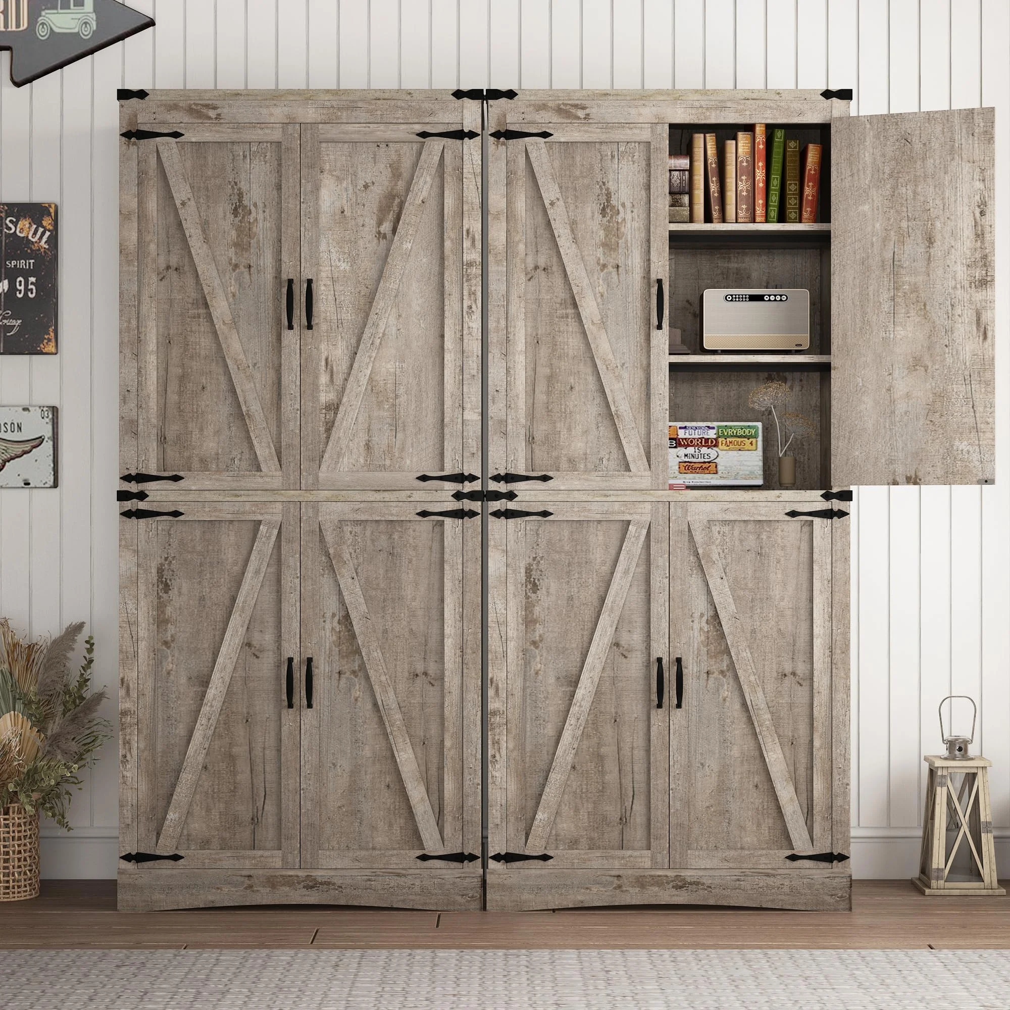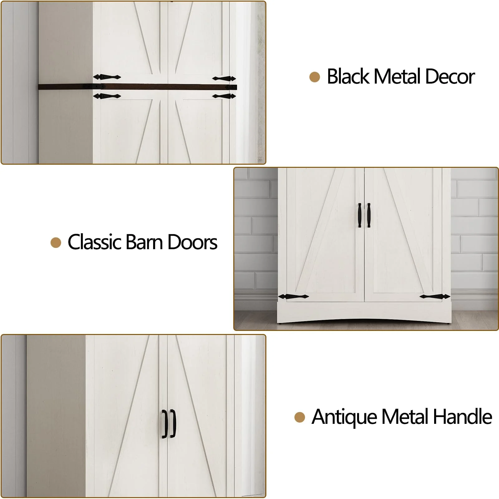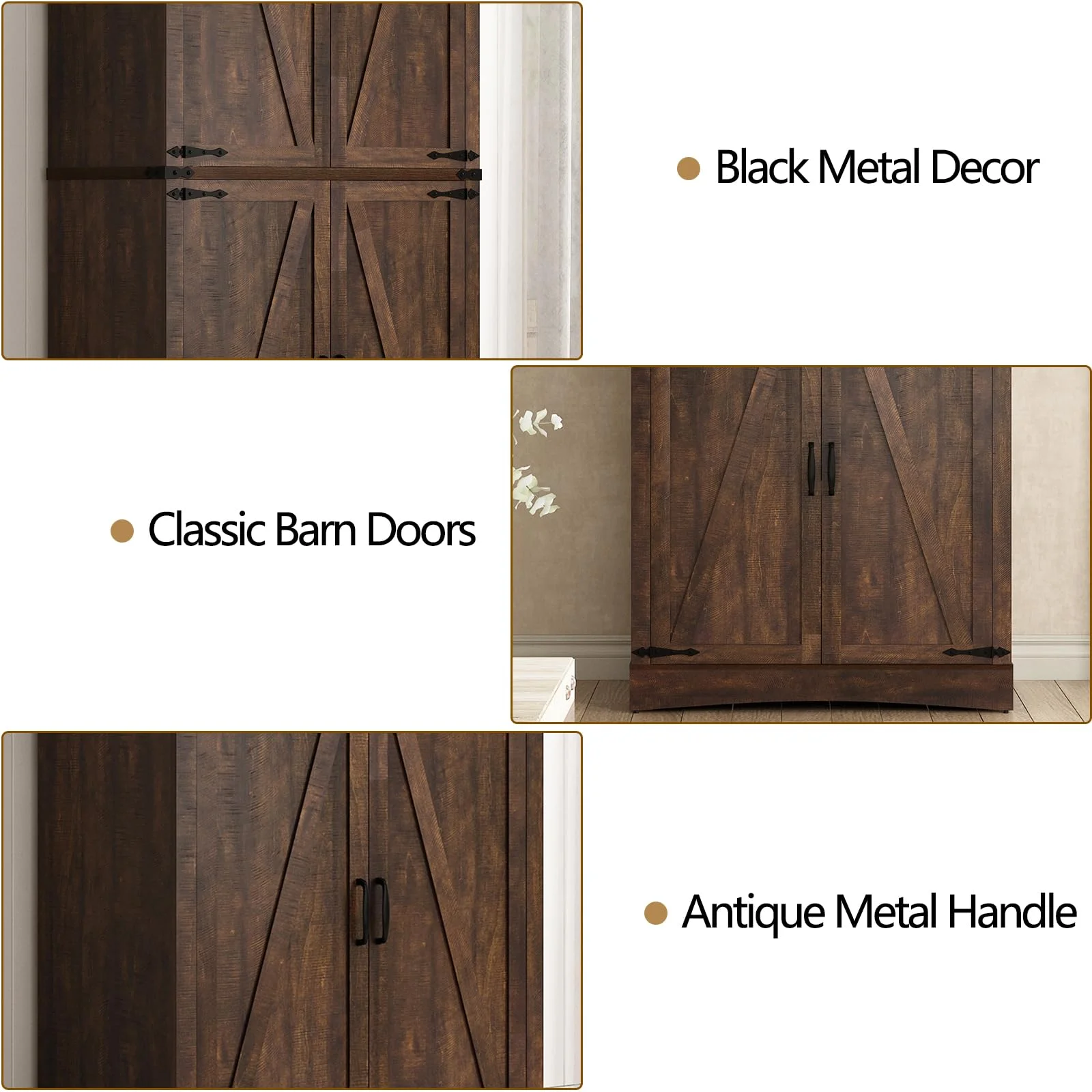 Design: 4-Barn Doors, Metal Snaps,5 Layers Adjustable Shelves.
