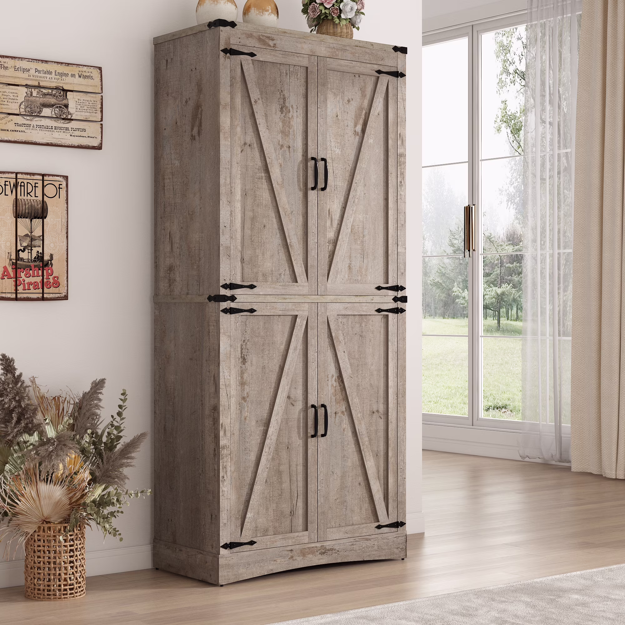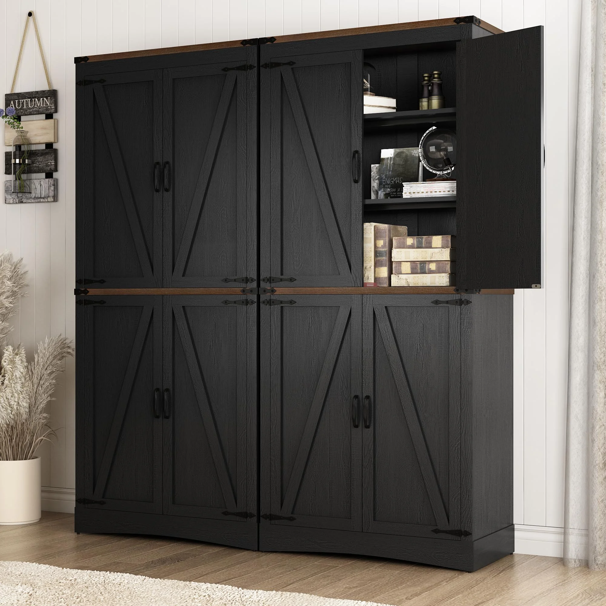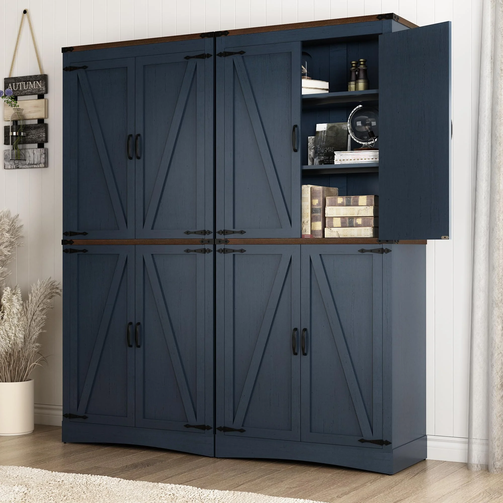 Design: 4-Barn Doors, Metal Snaps,5 Layers Adjustable Shelves.