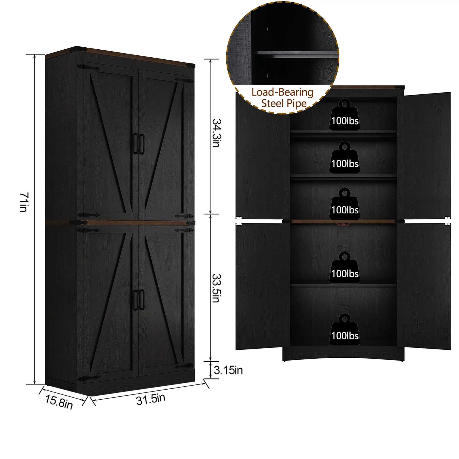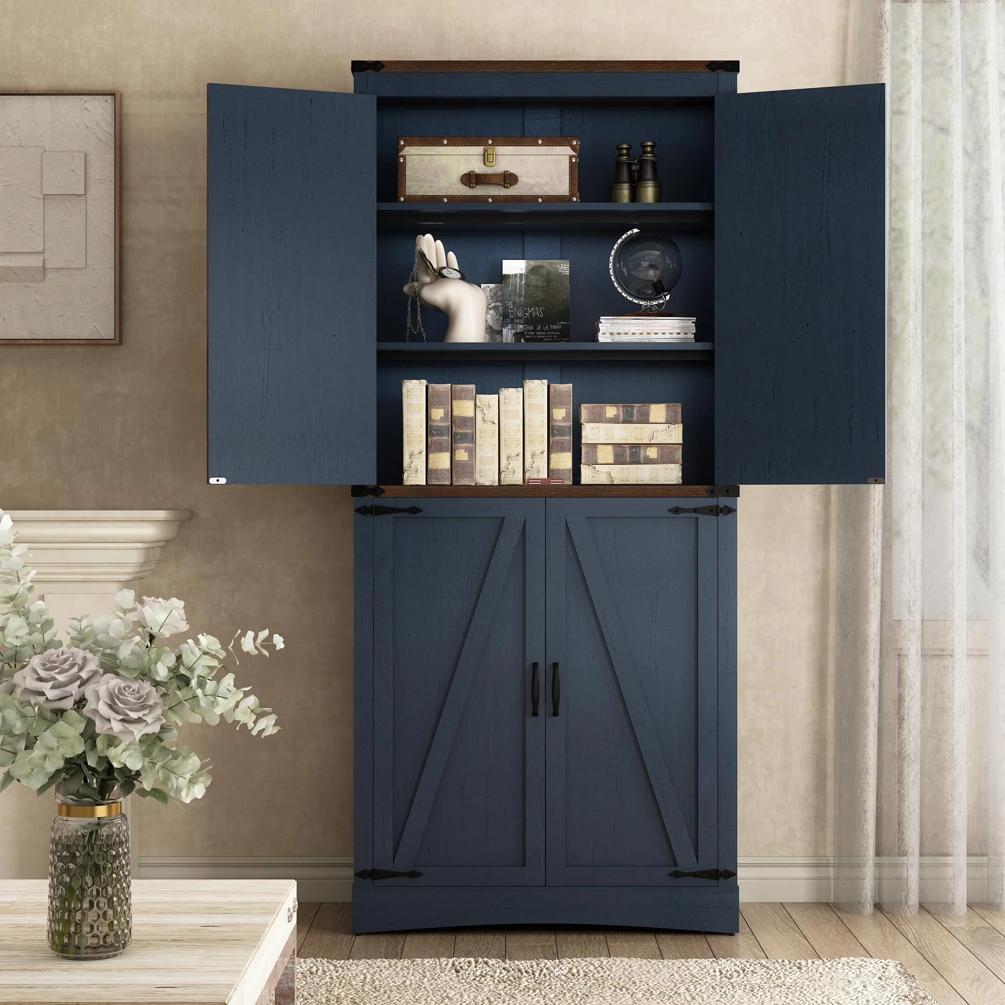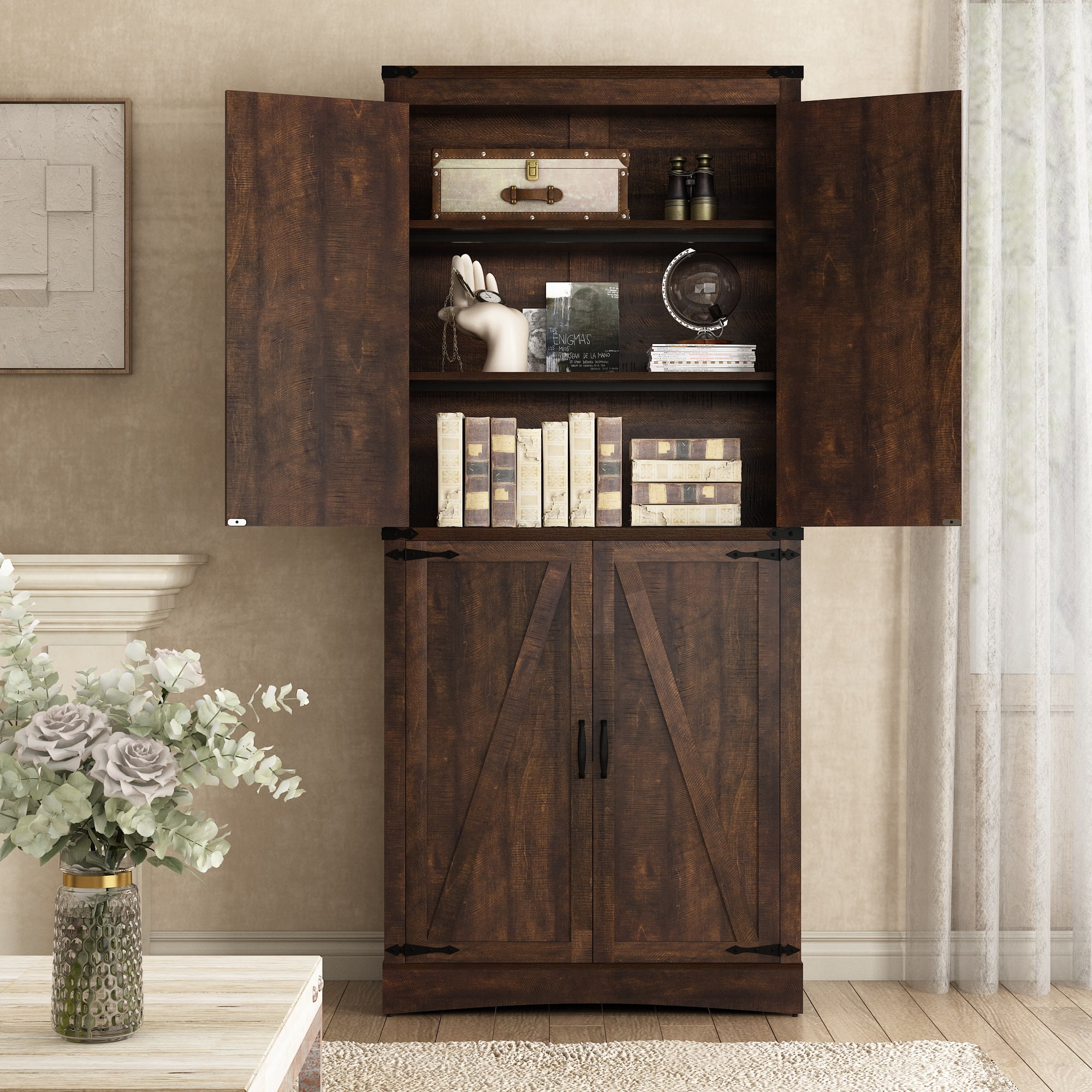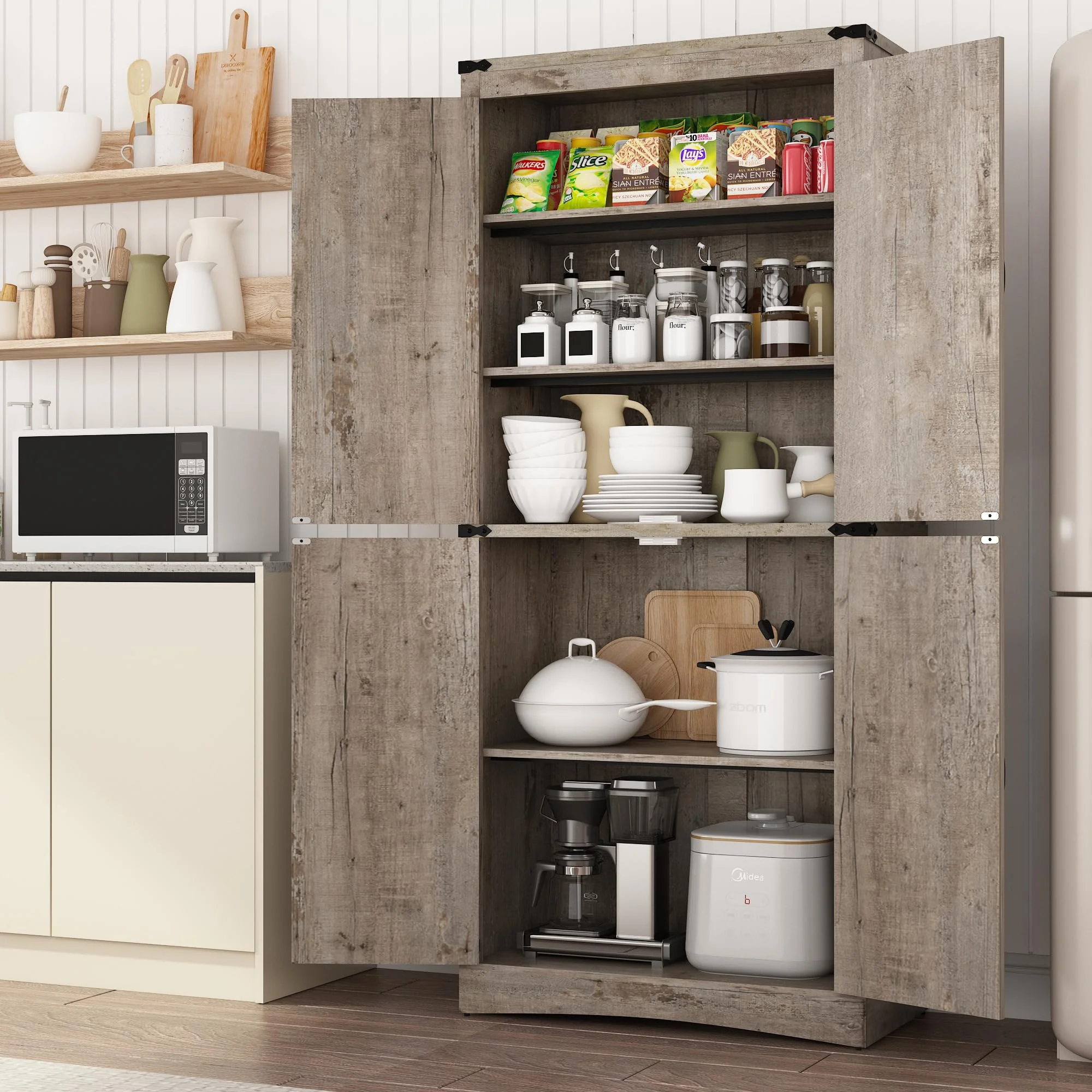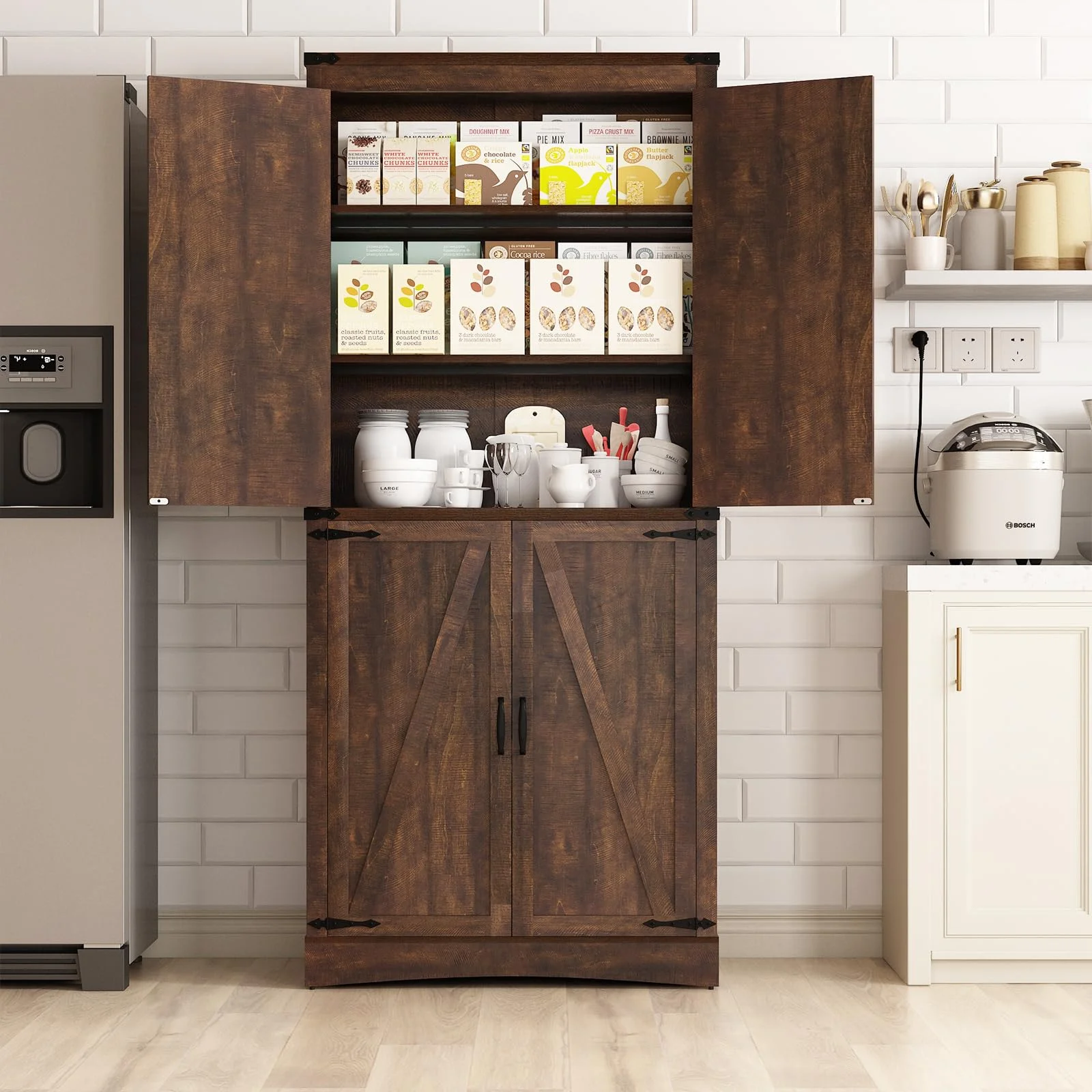 71" Tall Farmhouse Kitchen Pantry Cabinet, 5 Layers Storage Cabinet with Adjustable Shelves, Farmhouse Pantry Cabinet with 4 Barn Doors for Kitchen, Dining Room, Bathroom, Living Room, Rustic White