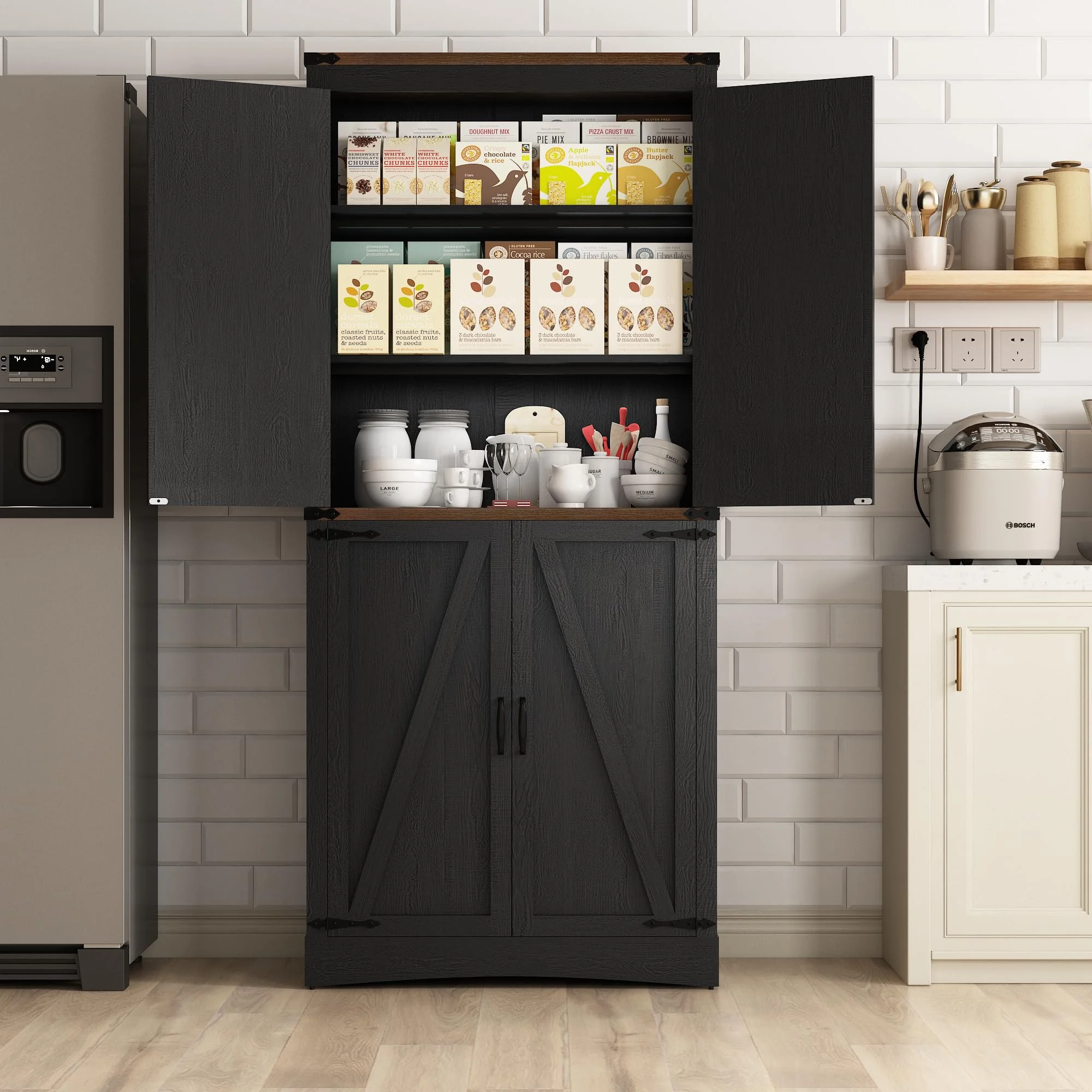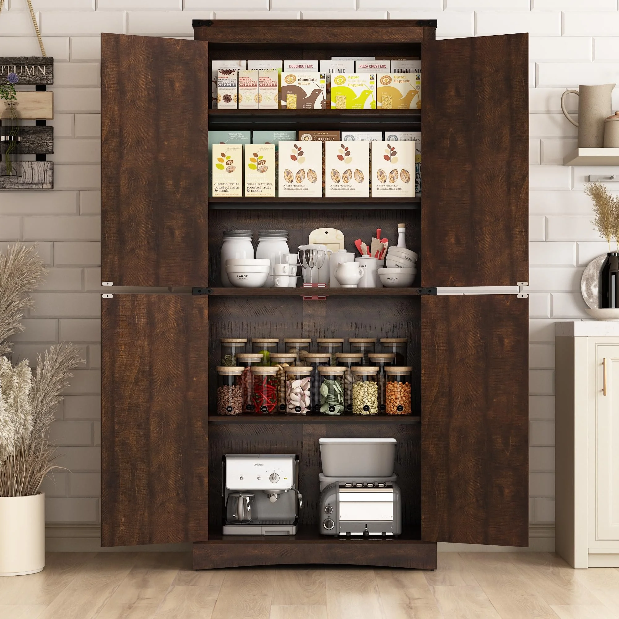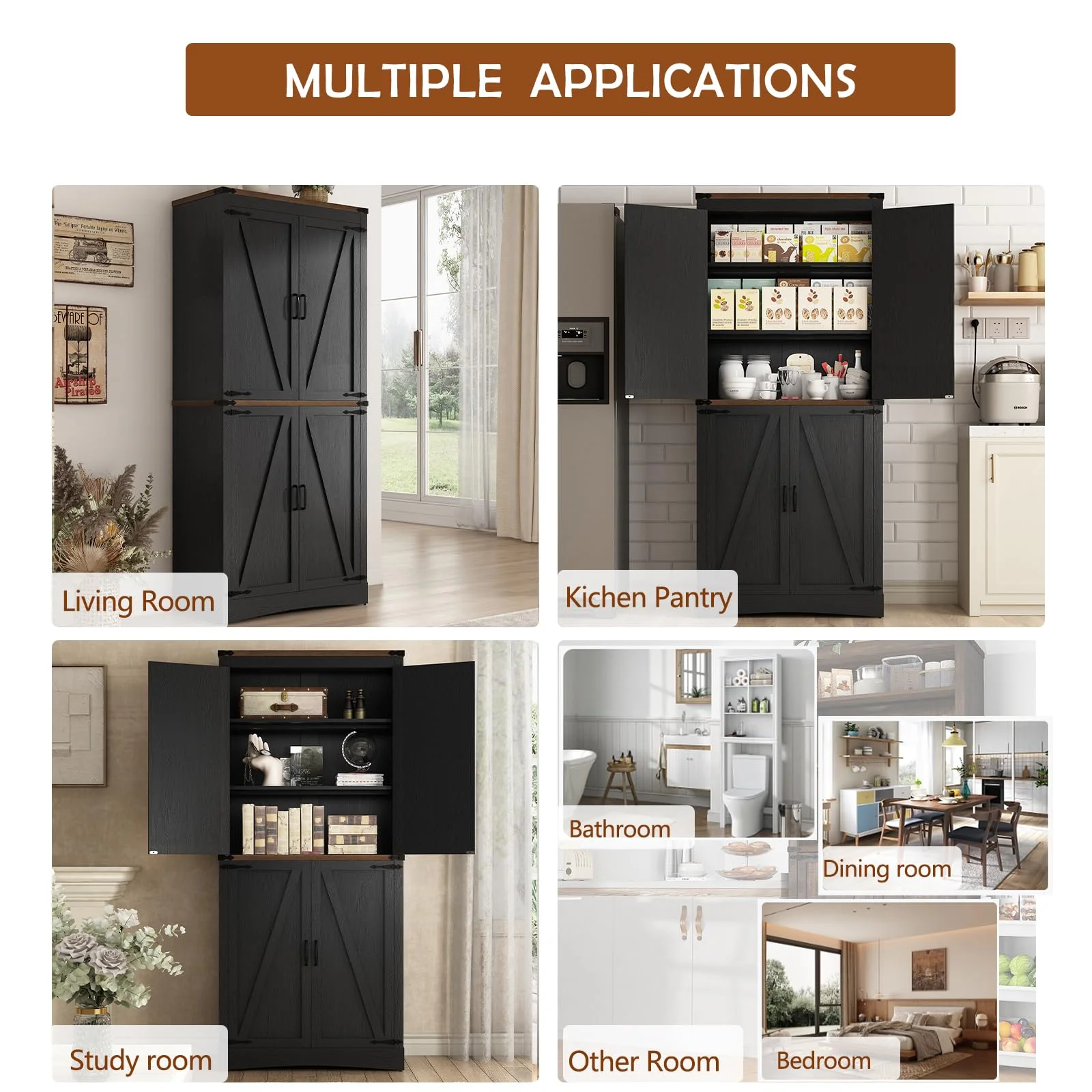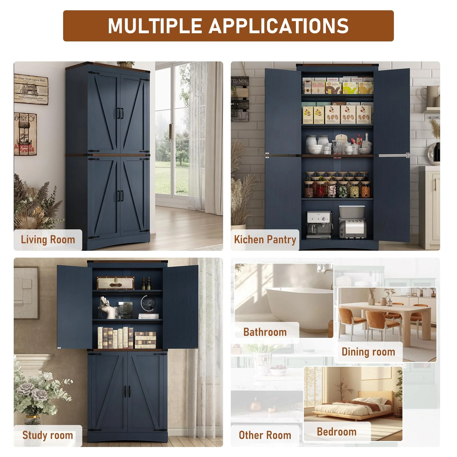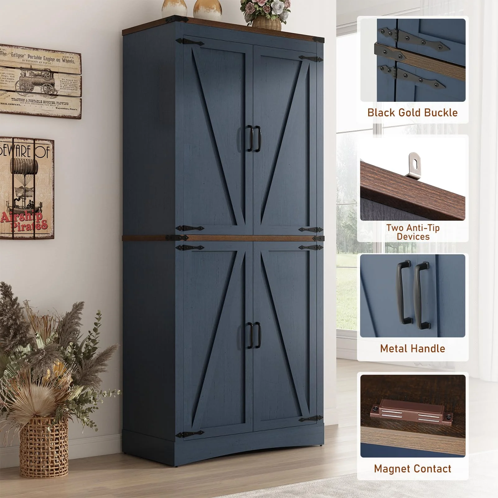 71" Tall Farmhouse Kitchen Pantry Cabinet, 5 Layers Storage Cabinet with Adjustable Shelves, Farmhouse Pantry Cabinet with 4 Barn Doors for Kitchen, Dining Room, Bathroom, Living Room, Rustic White