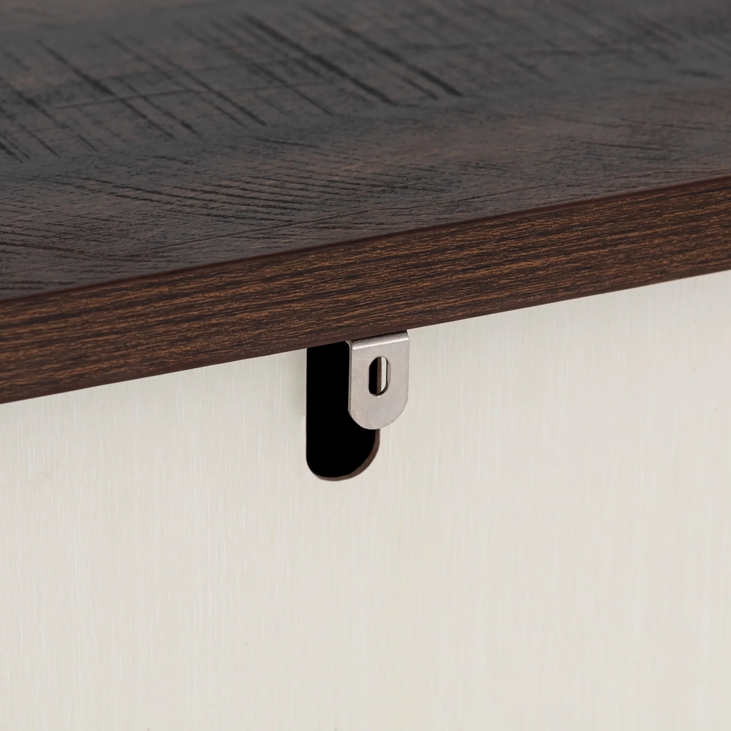 Sturdy & Durable : This farmhouse wood storage cabinet is made of premium engineered wood and metal, equipped with a sturdy base and anti-tipper.The top board and middle layer board are 25mm thickened to make the board stronger.ensuring strength and impressive load-bearing capacity. The durable aluminum alloy handle adds a touch of sophistication.
