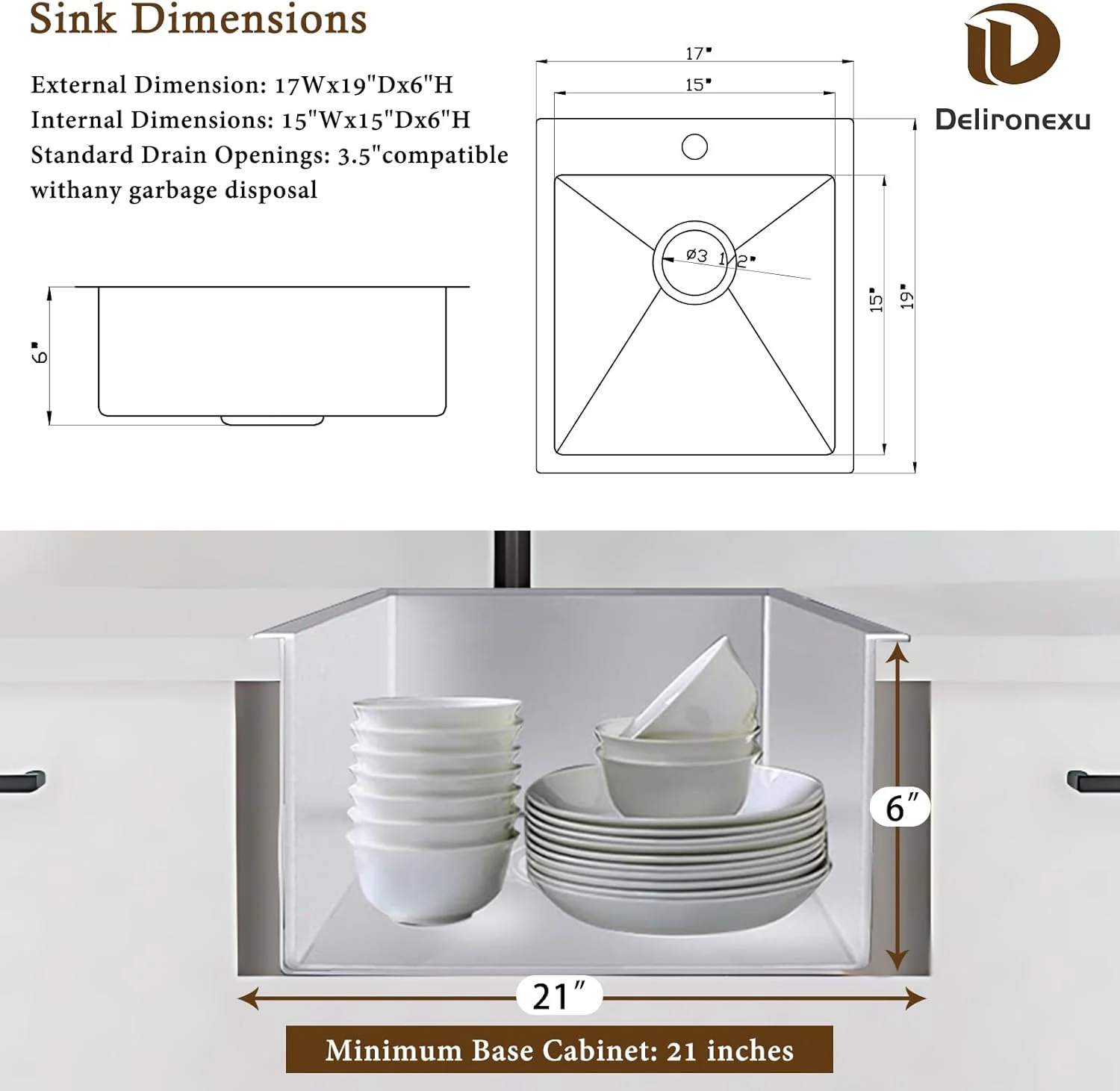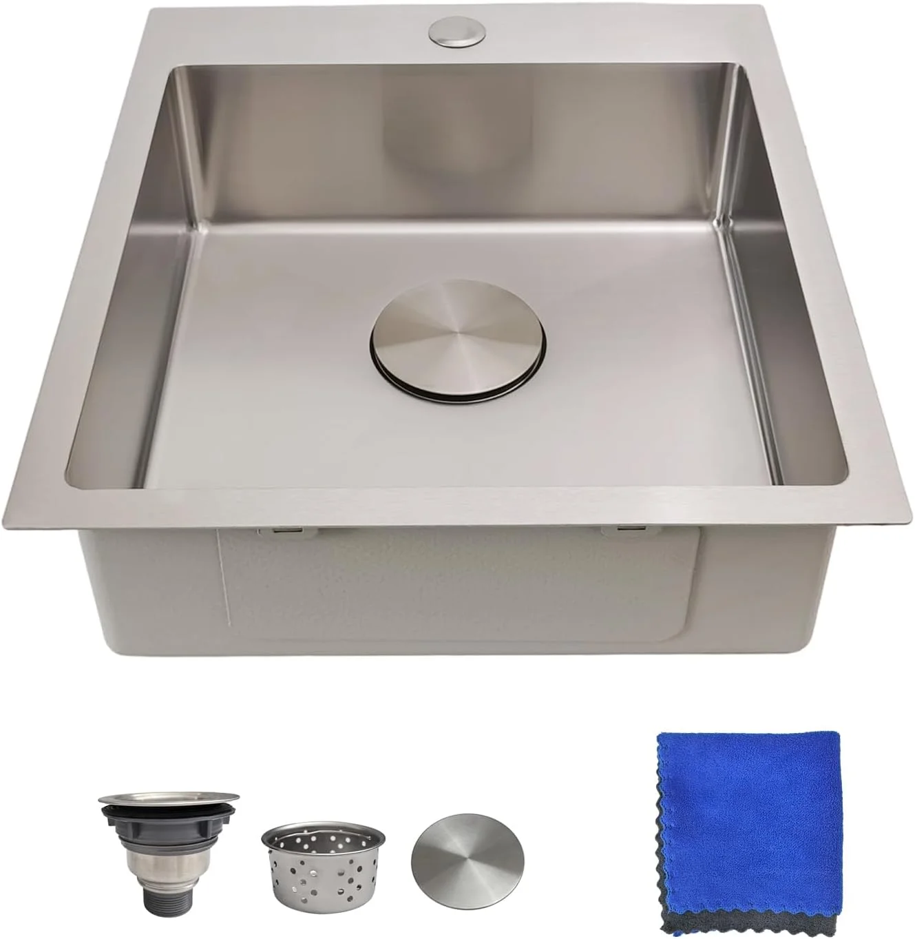 - ��Easy to Install & Bar Sink Size��:This drop in sink features an overmount design, allowing for quick and hassle-free drop-in installation on any kitchen countertop. Ideal for DIY projects, this drop in bar sink comes with a cut-out template and all necessary mounting hardware. Measures 17"L��19"W��6"D externally and 15"L��15"W��6"D internally, with a 3.5" standard drain opening that fits most garbage disposals. KIT INCLUDES��bar sink, drain cover, stainless steel drain assembly, kitchen cleaning cloth, mounting hardware, and cutout template.