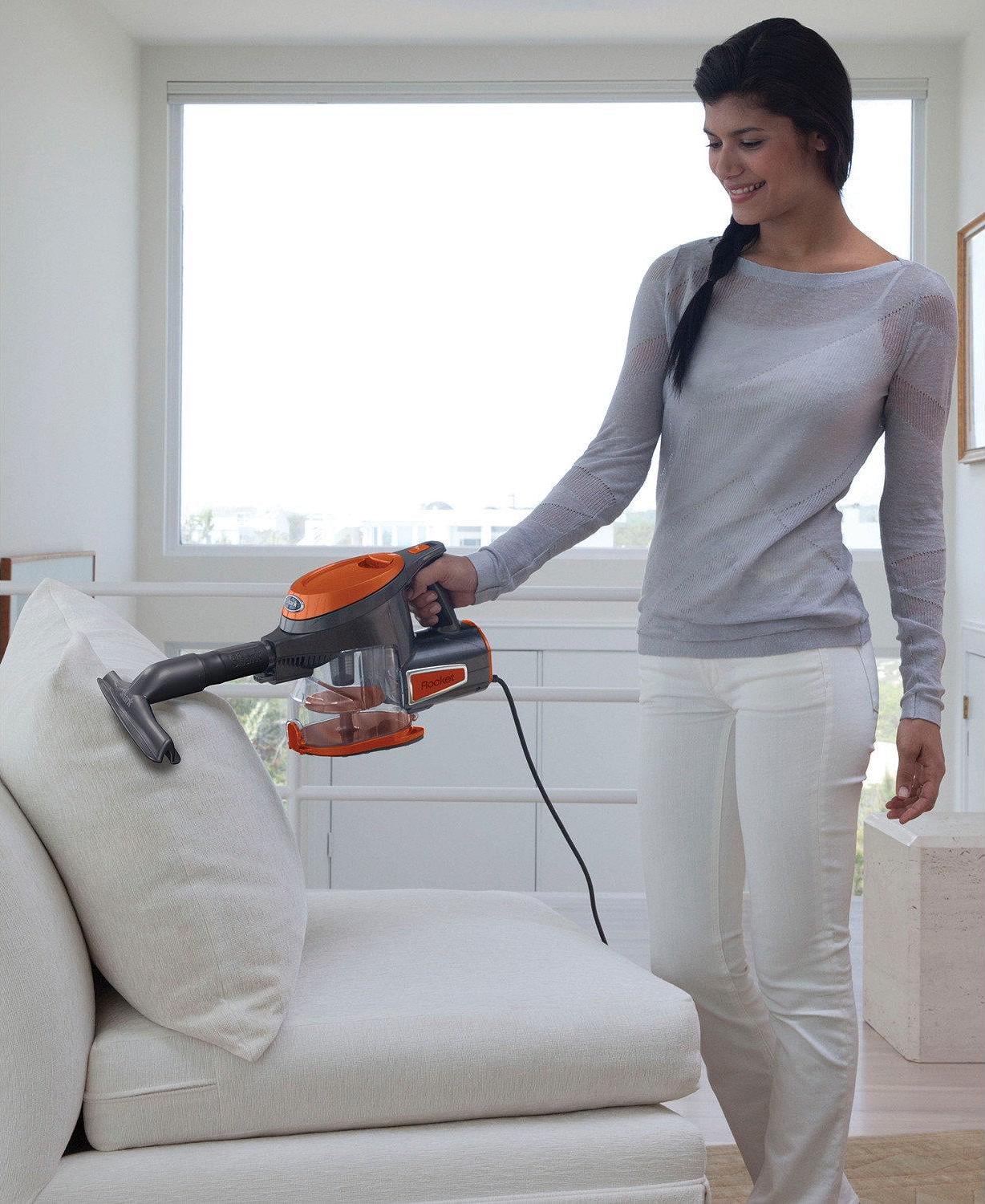 Shark Rocket Ultra-Light Corded Bagless Vacuum for Carpet and Hard Floor Cleaning with Swivel Steering <br> <br> This never loses suction, never loses power vacuum cleans as well as an upright without all the weight of one! It cleans bare floors and deep cleans carpets. Swivel steering provides the ultimate control to get in and around obstacles and furniture. The versatility of this vacuum allows for floor-to-ceiling cleaning. Use the wand to reach high above or between narrow spaces. Use the handheld like a hand vac to clean stairs and furniture. The slim design is also great for cleaning under furniture. Includes a crevice tool, pet hair tool, dusting brush, and dust-away with the microfiber pad. This corded vacuum is portable and easy to store.Shark Rocket Ultra-Light Corded Bagless Vacuum for Carpet and Hard Floor Cleaning with Swivel Steering