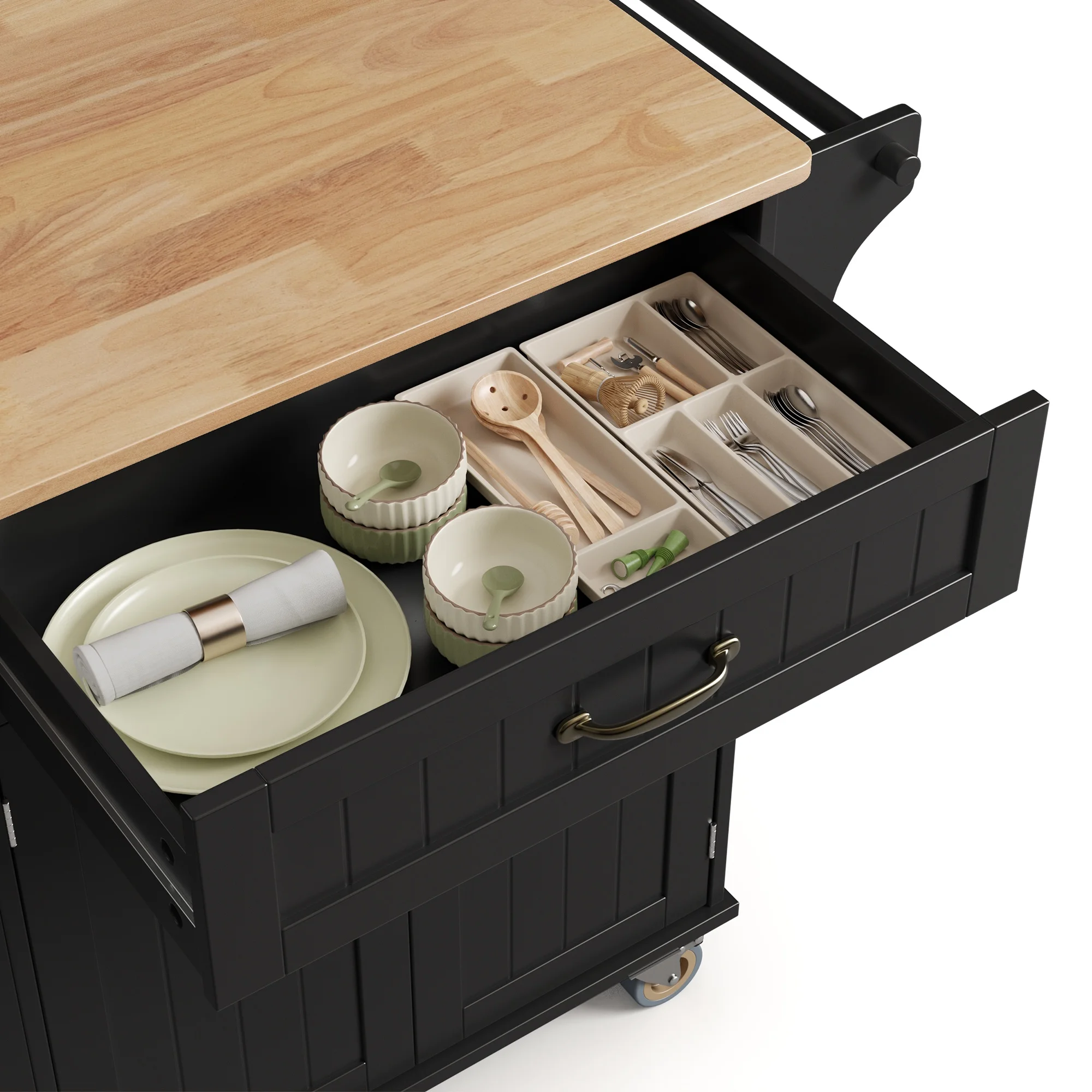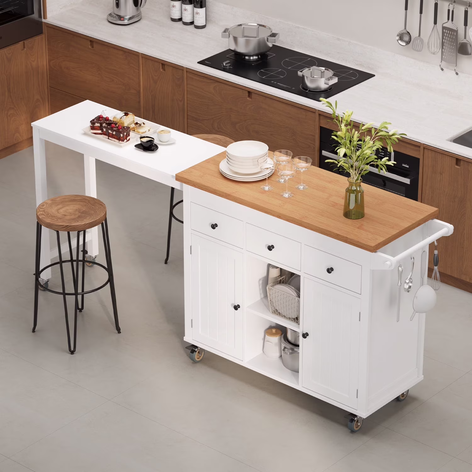 Easy to assemble with clear instructions and all tools included, this versatile kitchen island cart is the perfect blend of function and charm. Use it as a prep station, mobile serving cart, or compact dining table, and elevate your kitchen experience with one smart solution.