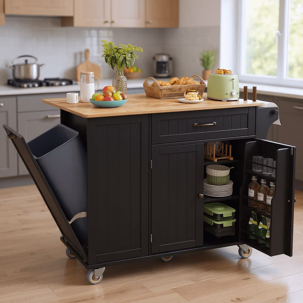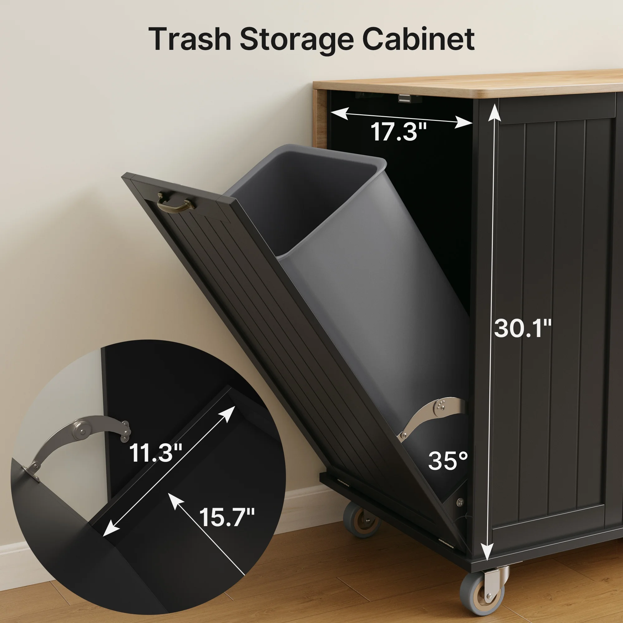 Enjoy extra prep or dining space when you need it, and simply fold it down to save room. Perfect for cooking, casual meals, or entertaining in small kitchens, apartments, or dining rooms.??? Hidden Trash Cabinet for a Cleaner Kitchen