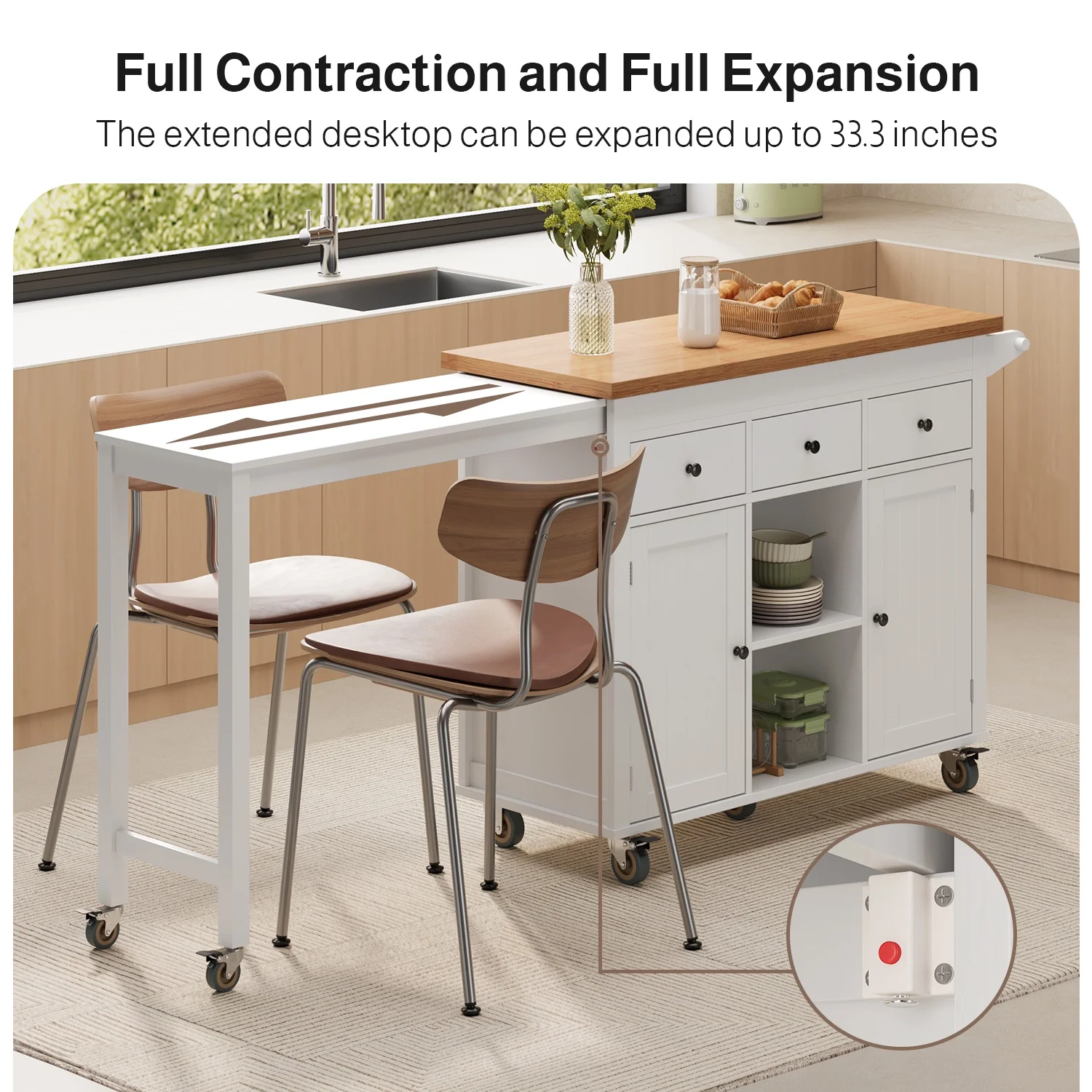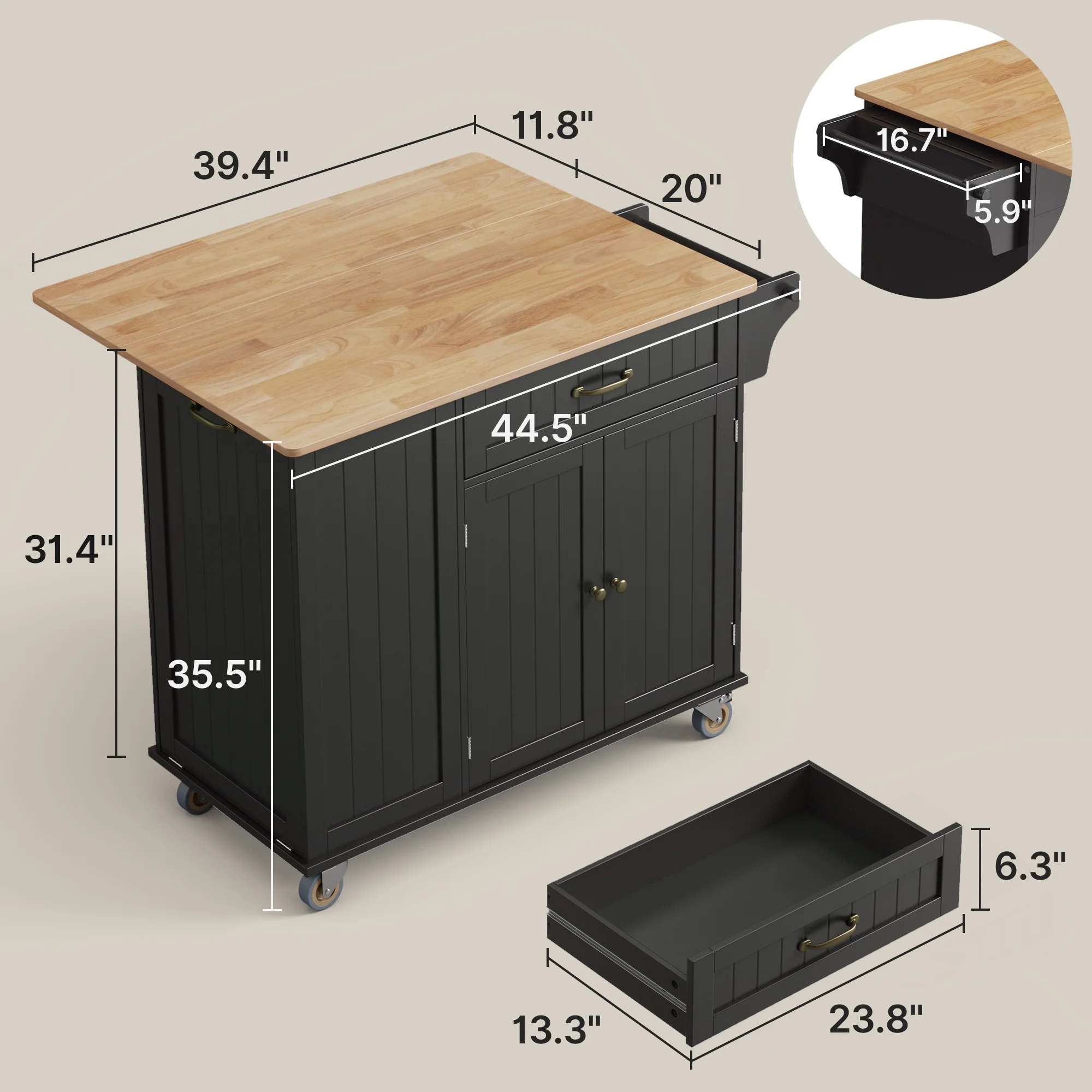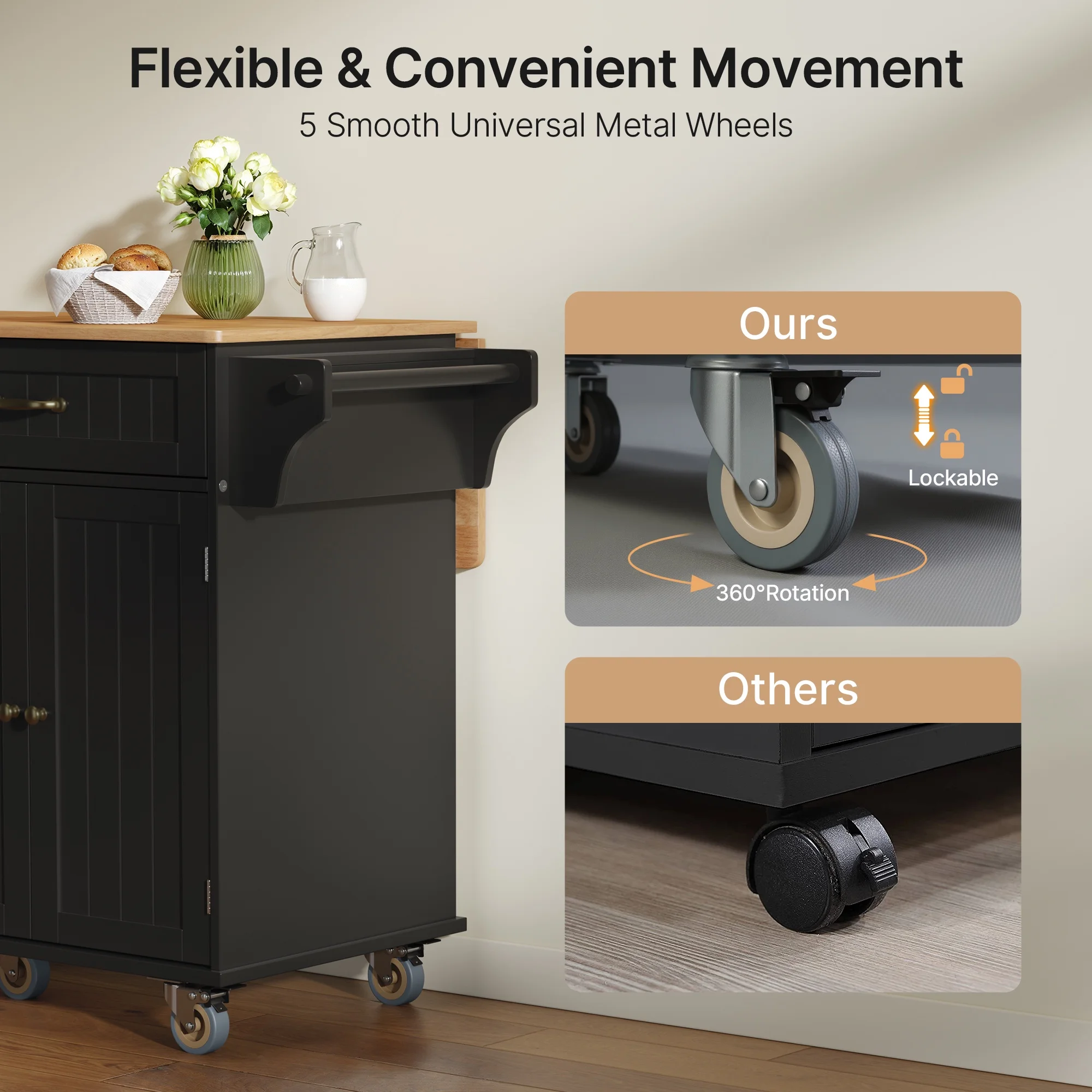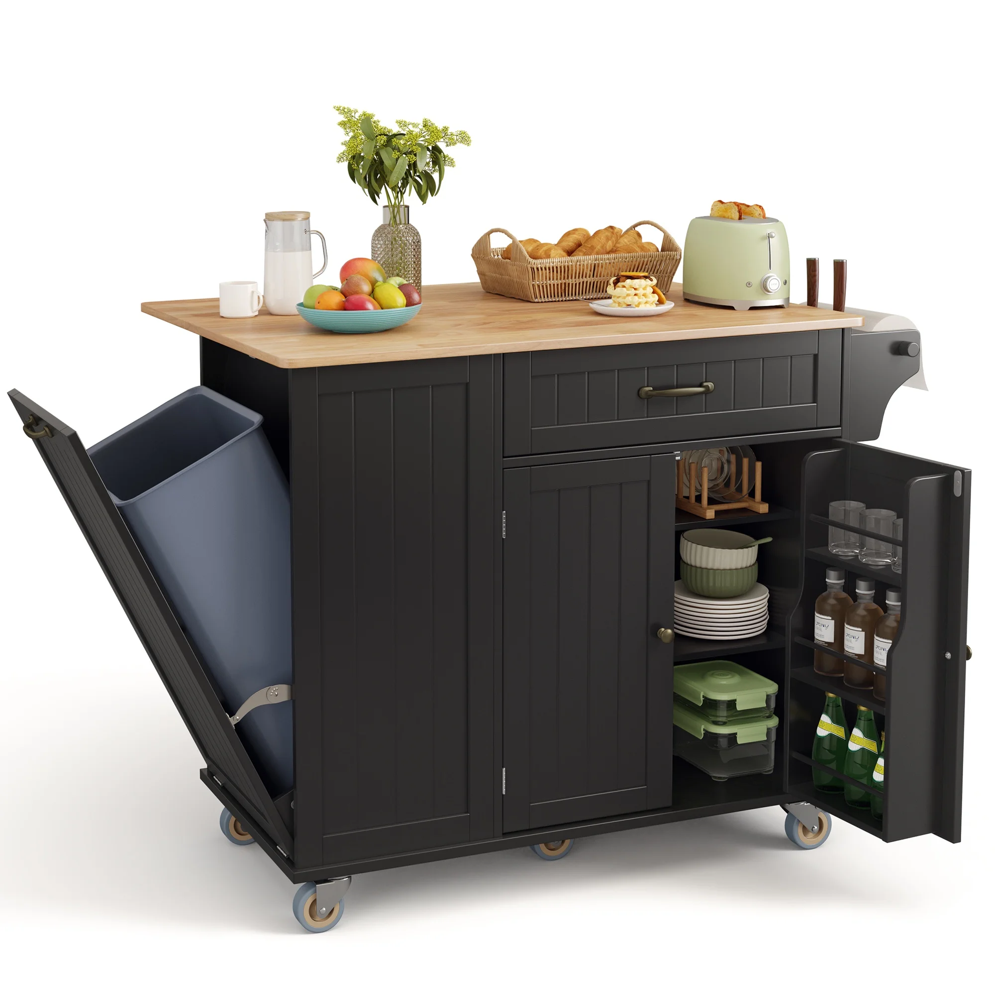 Transform your kitchen into a cleaner, smarter, and more spacious hub with the Noelse Rolling Kitchen Island with Drop Leaf Table & Hidden Trash Cabinet. Designed for families who want both functionality and style, this mobile kitchen storage solution combines expandable workspace, discreet trash storage, and generous organization��all in one compact cart.