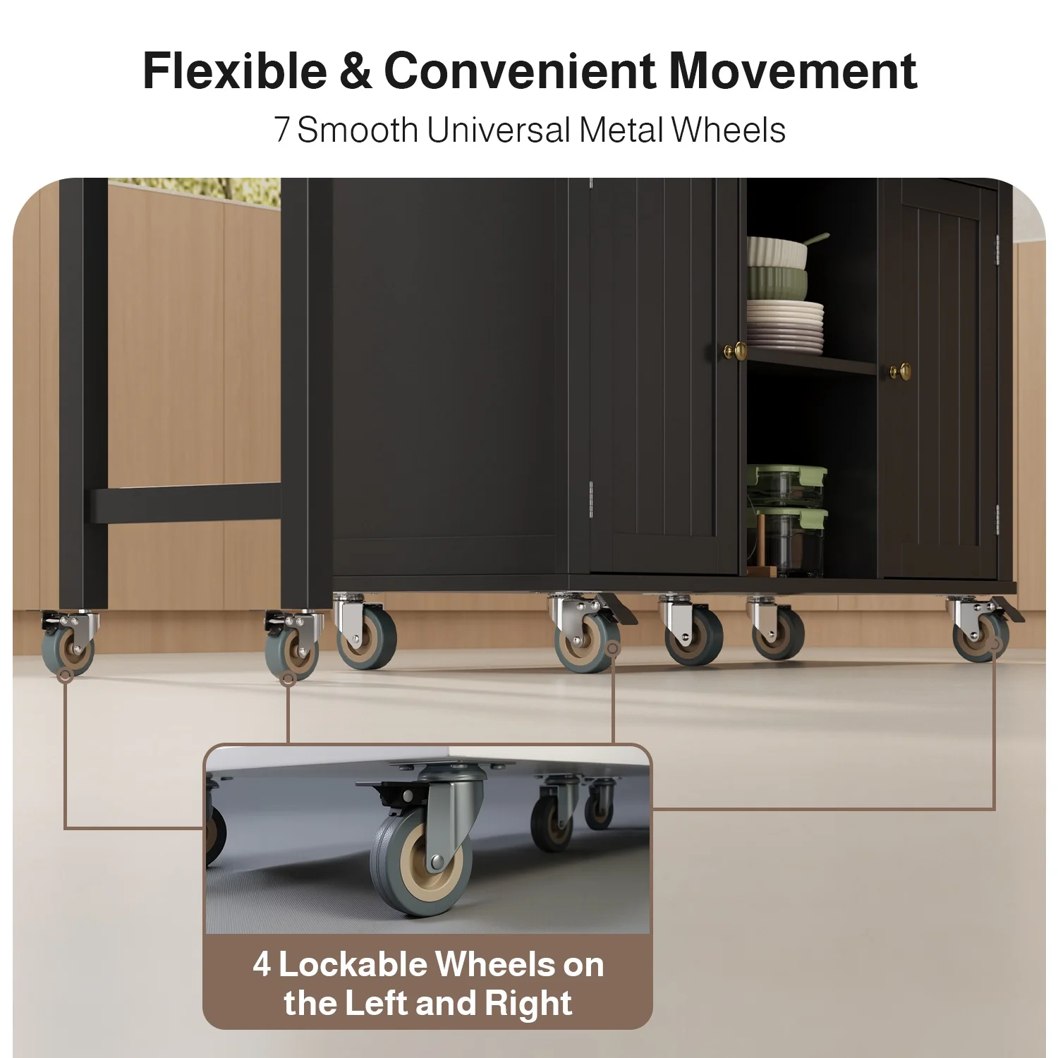 Built for flexibility, this kitchen cart on wheels moves effortlessly between rooms with five 360�� swivel casters, including two lockable wheels for added stability. Whether serving guests in the dining room or prepping meals in the kitchen, it adapts to your lifestyle with ease.