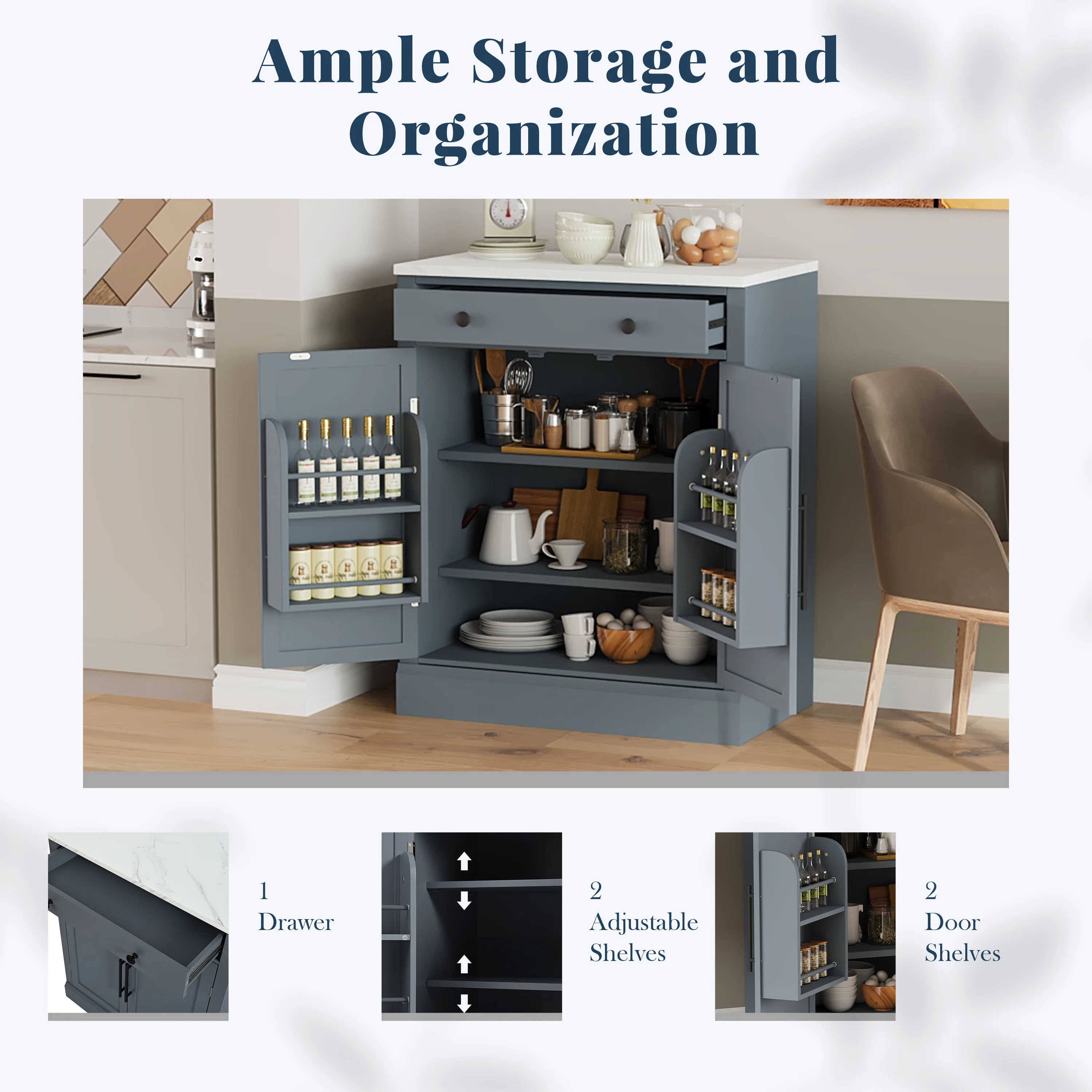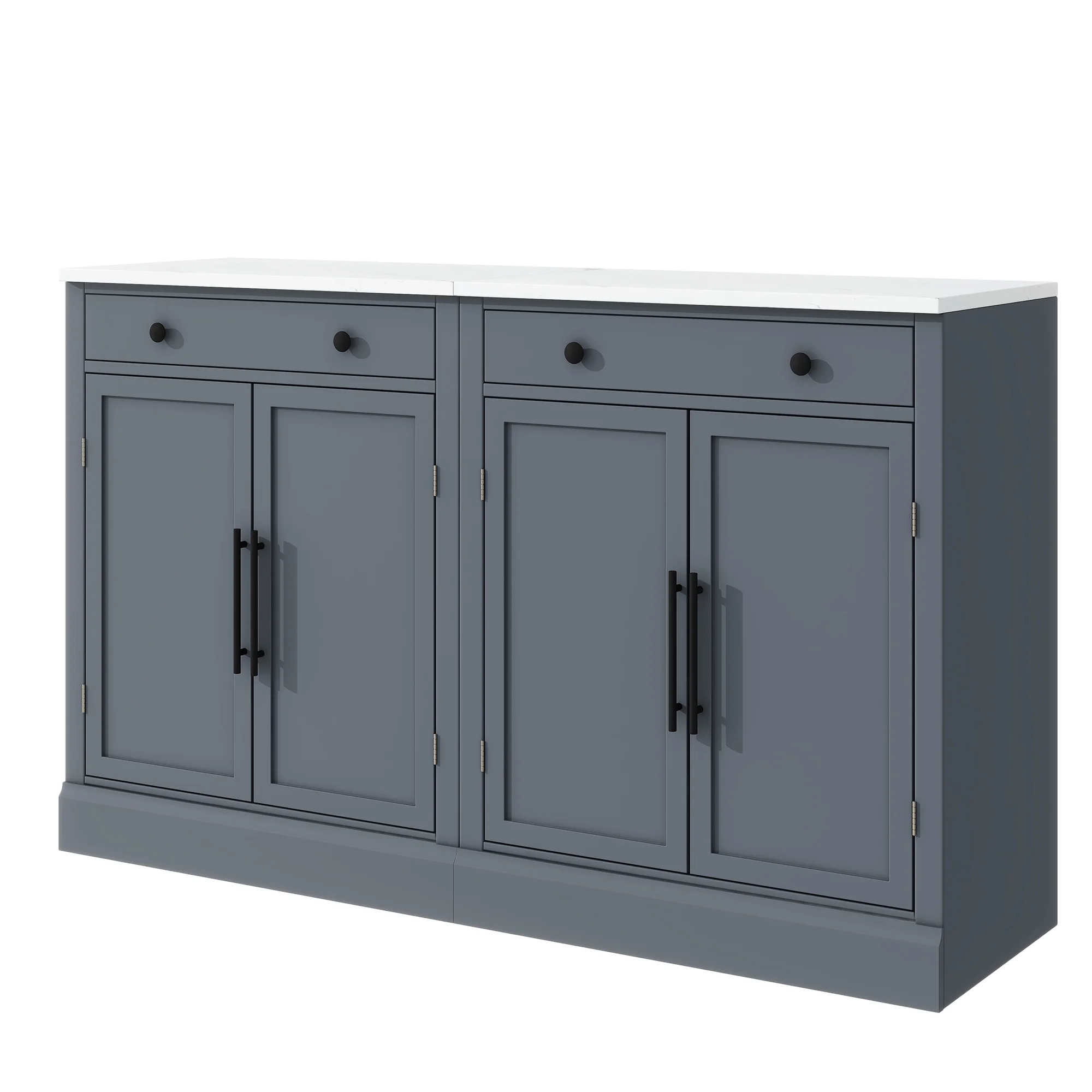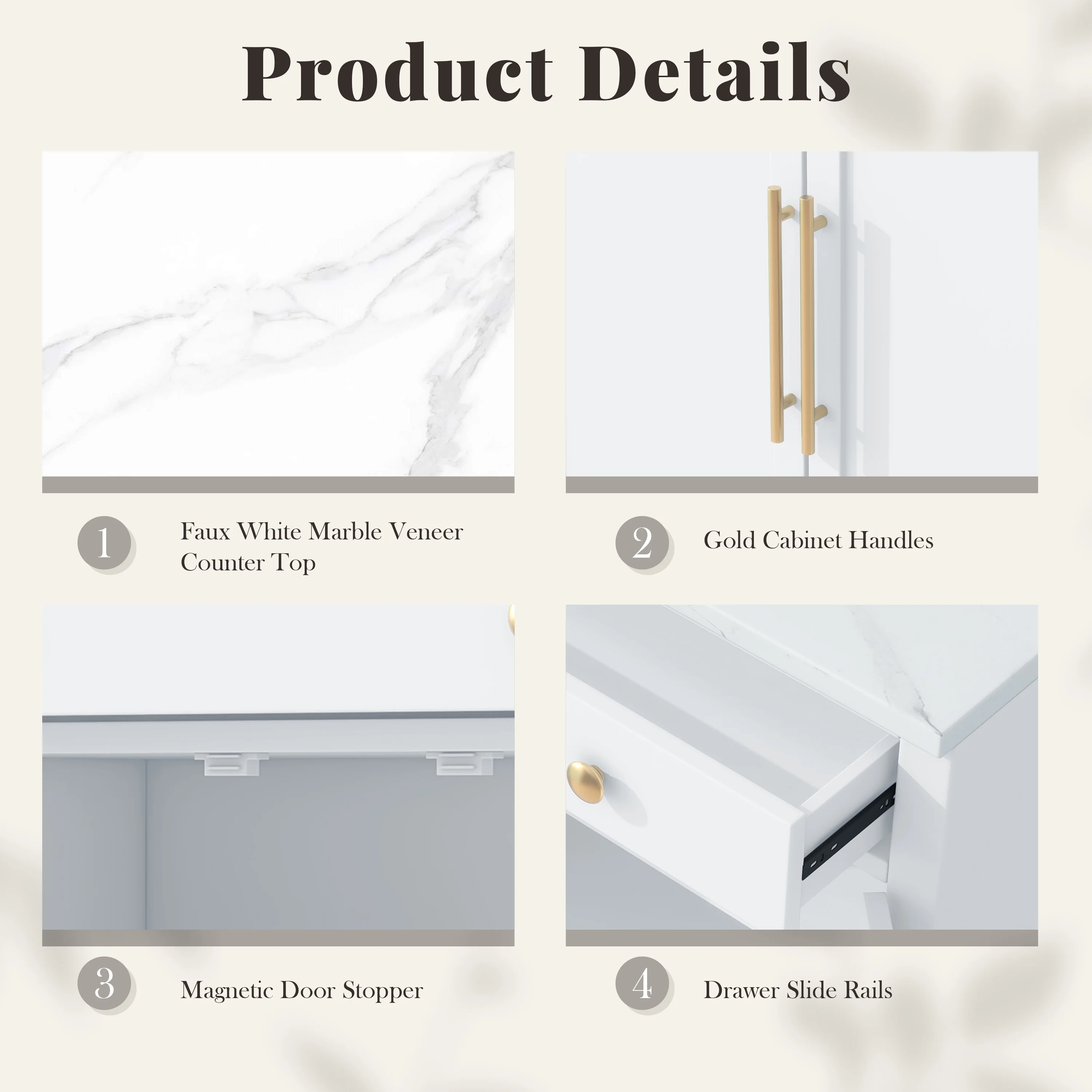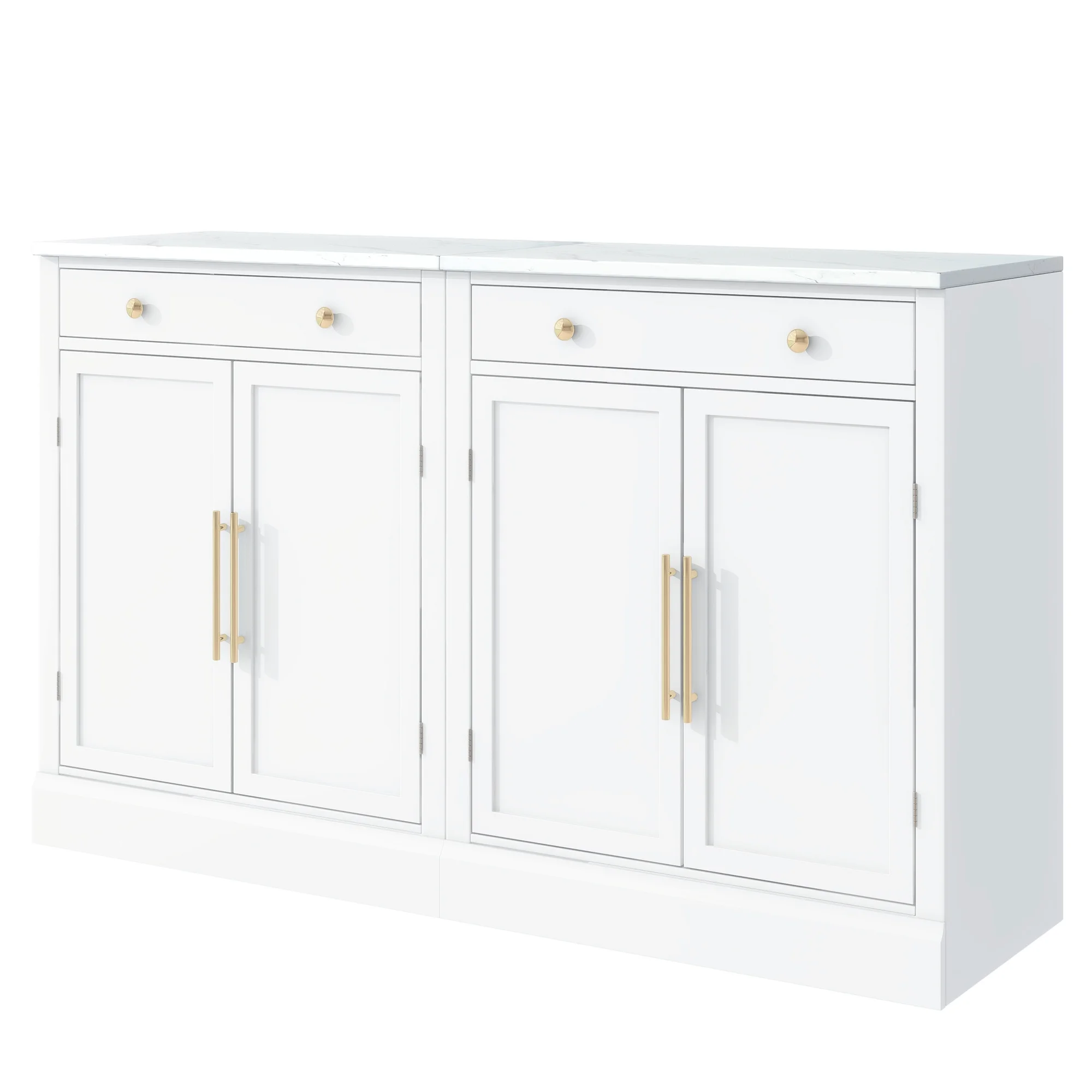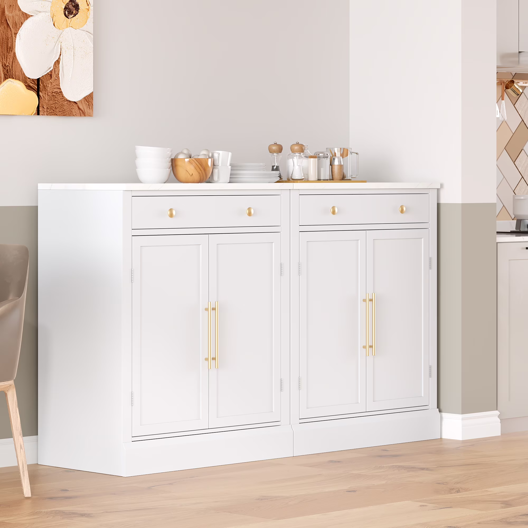 - [Elegant and Durable Design]This set of 2 cabinets is crafted with a premium painted P2 MDF frame and topped with a faux white marble veneer countertop, blending modern elegance with durability. The sleek lines and sophisticated design enhance kitchens, dining rooms, or coffee bars, complementing various home decors. Available in two timeless colors, these cabinets provide a cohesive and stylish solution while ensuring long-lasting quality and function.