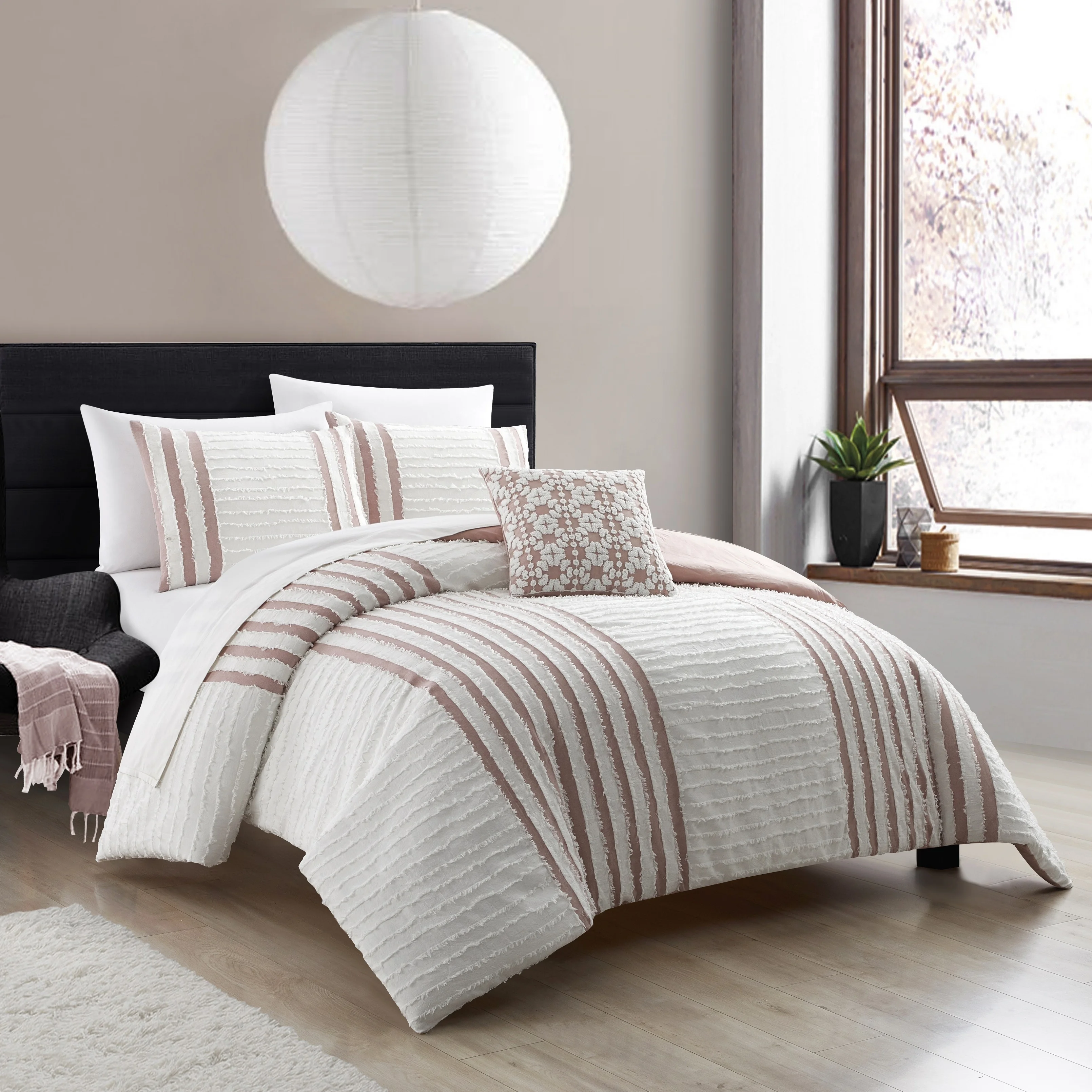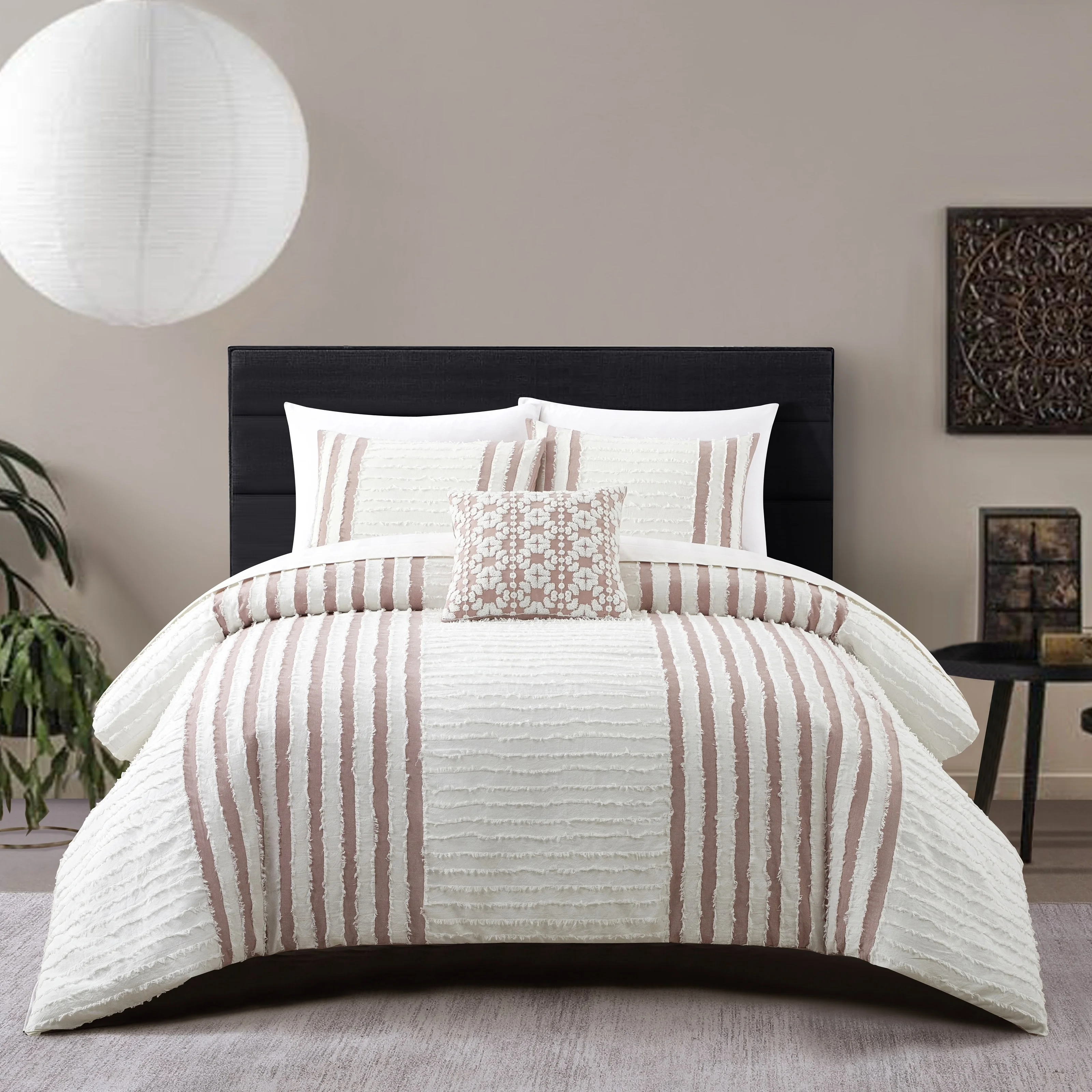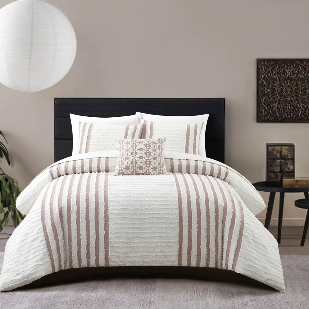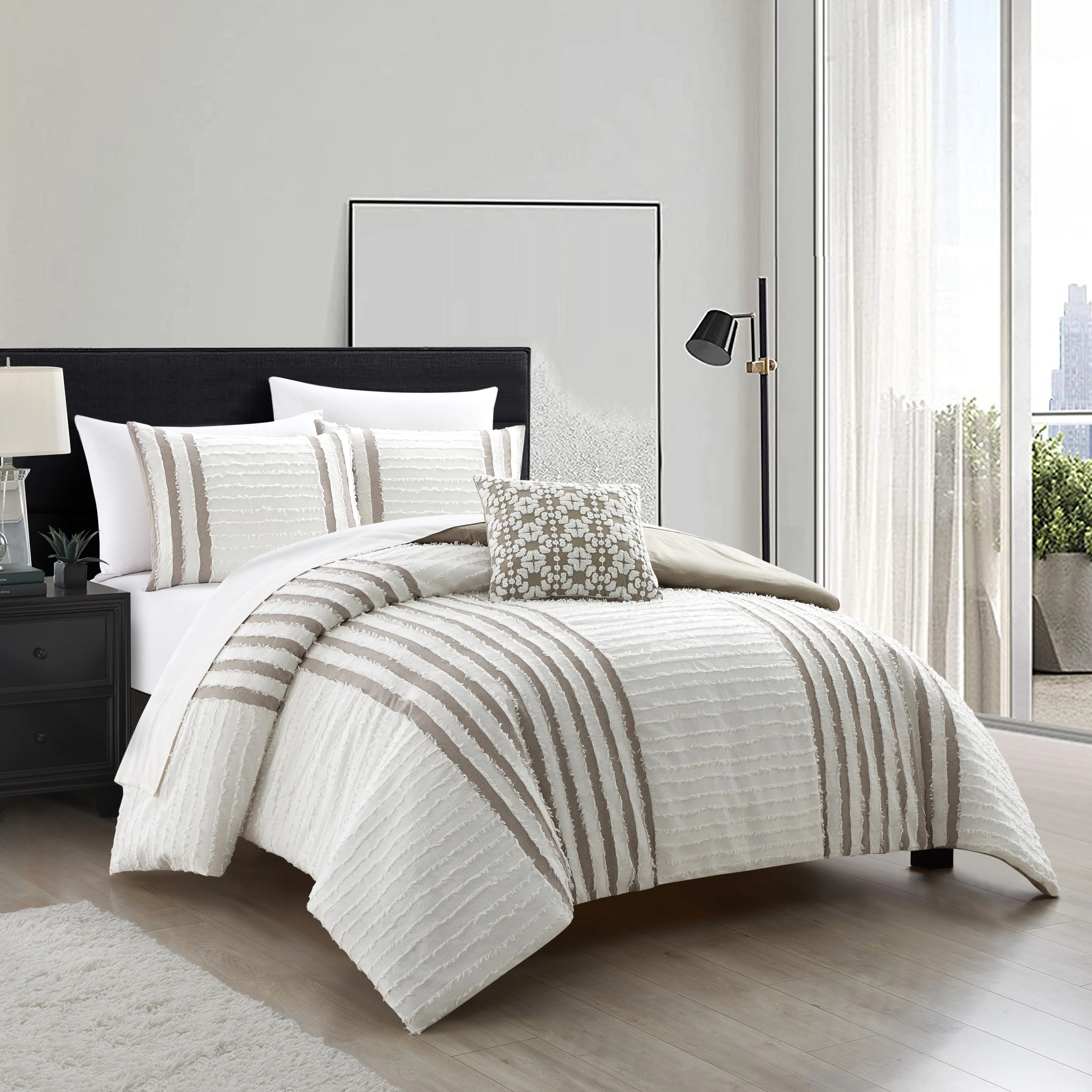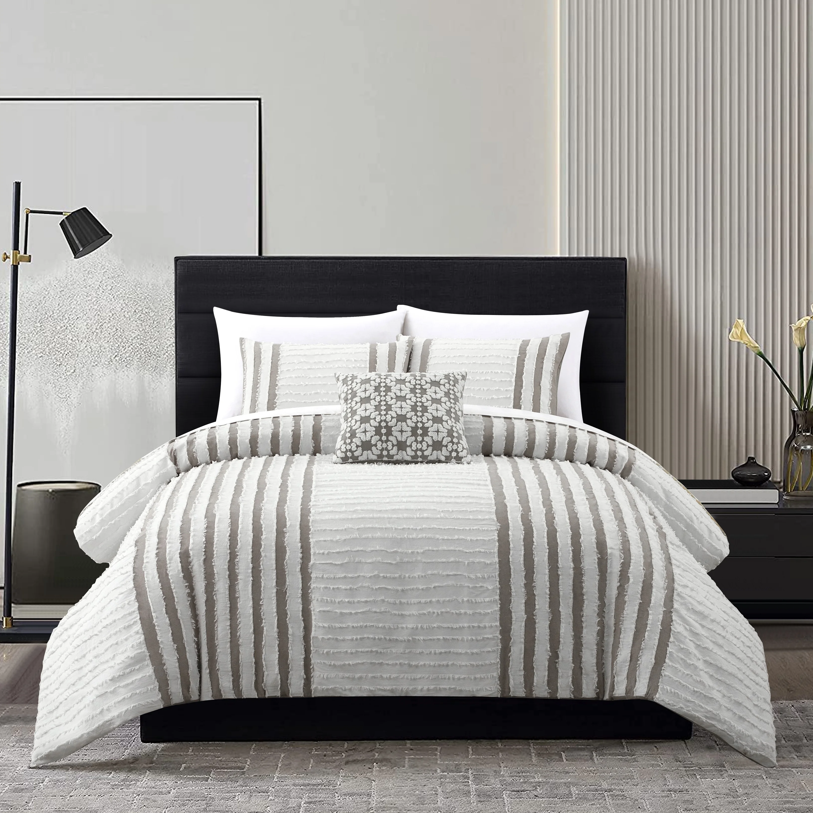 Specifications: Size: Queen Color Scheme: Beige Piece Count: 4 Set Includes: 1pc Cotton Clip Jacquard Comforter (92 x 96 ) 2pc Cotton Clip Jacquard Pillow Shams (20 x 26") 1pc Tufted Decorative Pillow (18 x 18 )