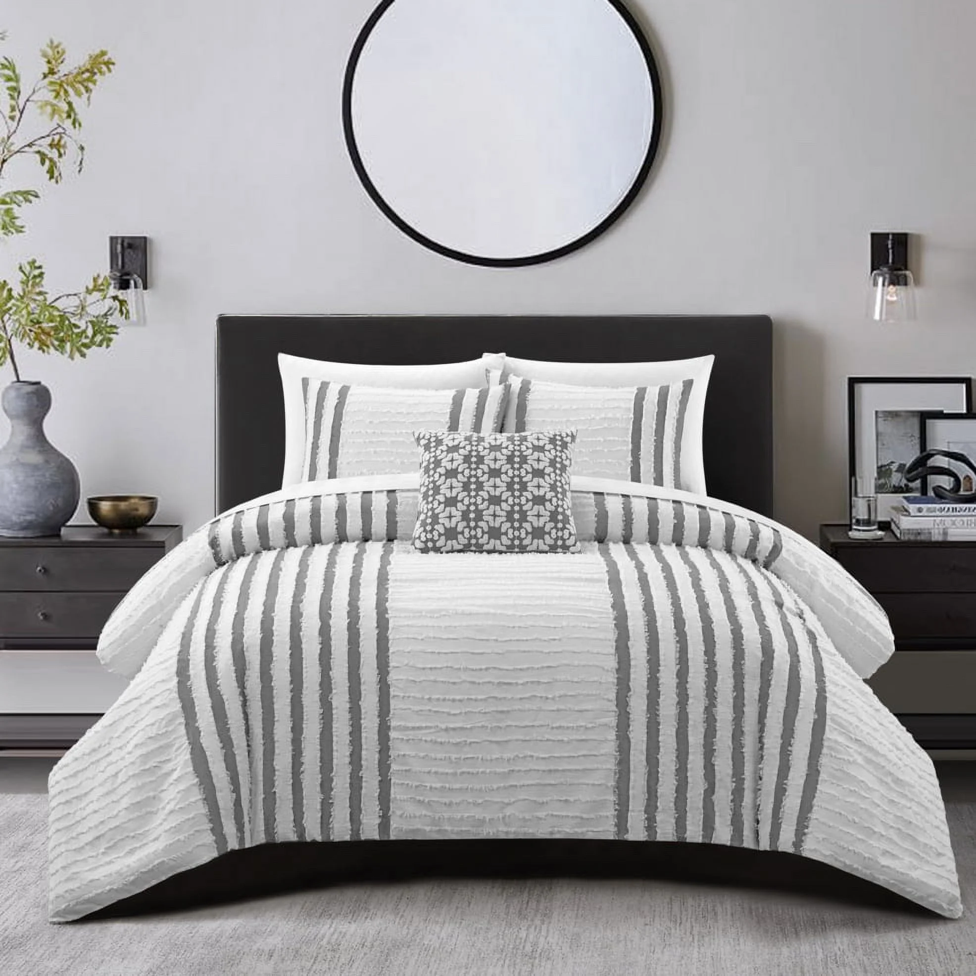 4 Piece Queen Dimensions:1 Comforter Cotton Clip Jacquard: 92x96 inches2 Cotton Clip Jacquard Pillow Shams: 20x26 inches1 Tufted Decorative Pillow: 18x18 inches