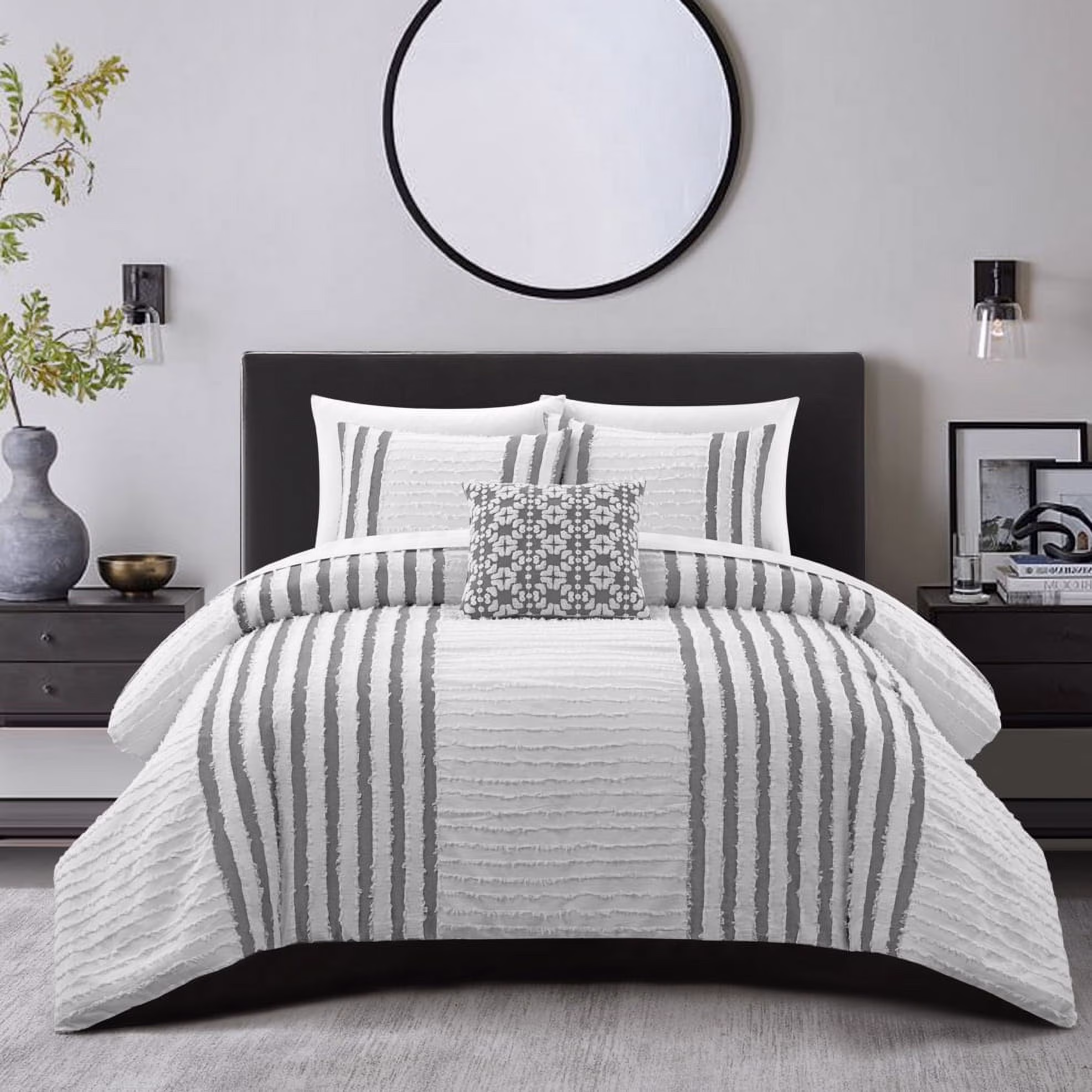 - STRIPED JACQUARD DESIGN - Luxurious clip jacquard shell with striped pattern - Design coordinated shams and a decor pillow are included