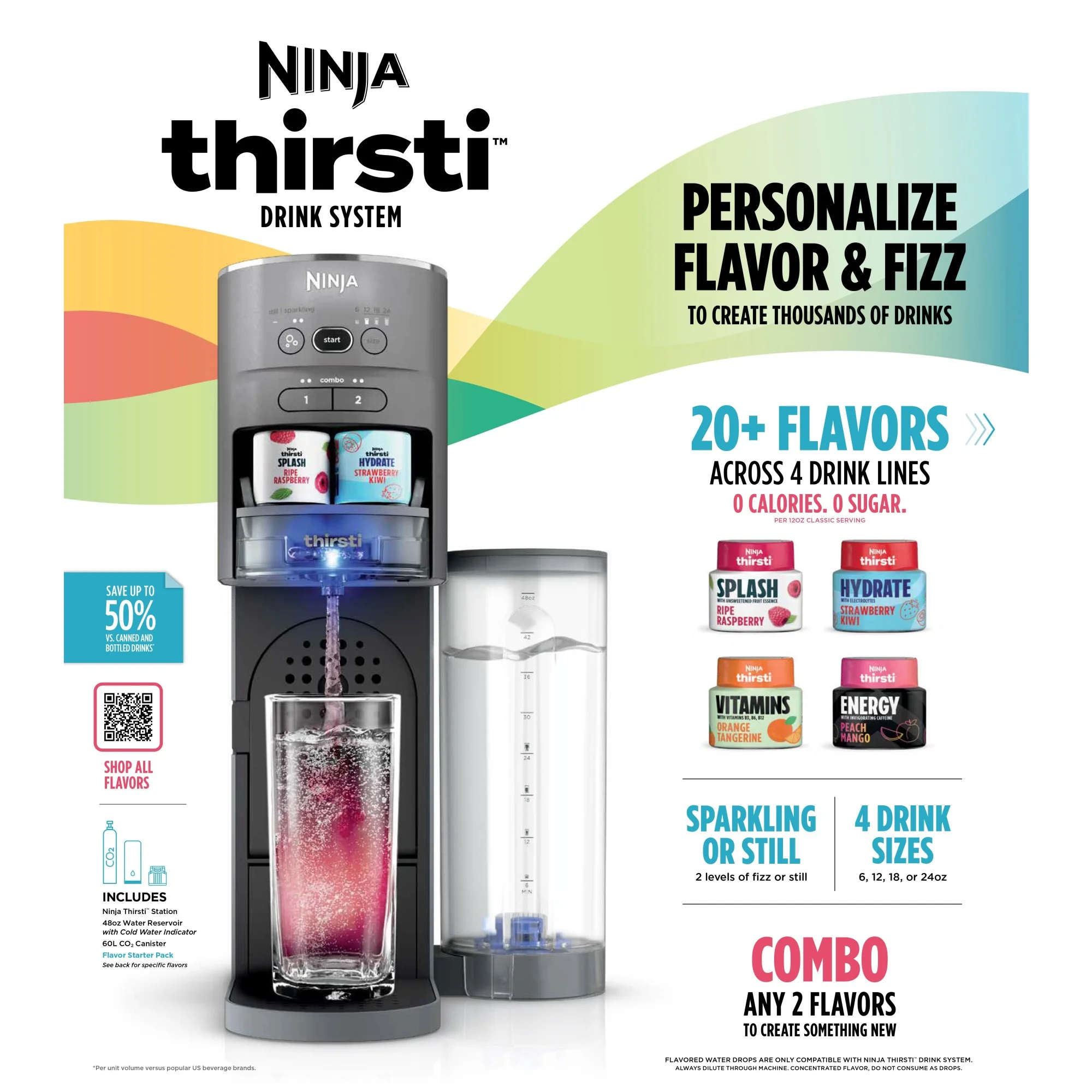- Ninja Thirsti Drink Maker- Still & Sparkling Custom Drink Kit with CO2 Canister, Flavors, & 48oz Reservoir,WC1000