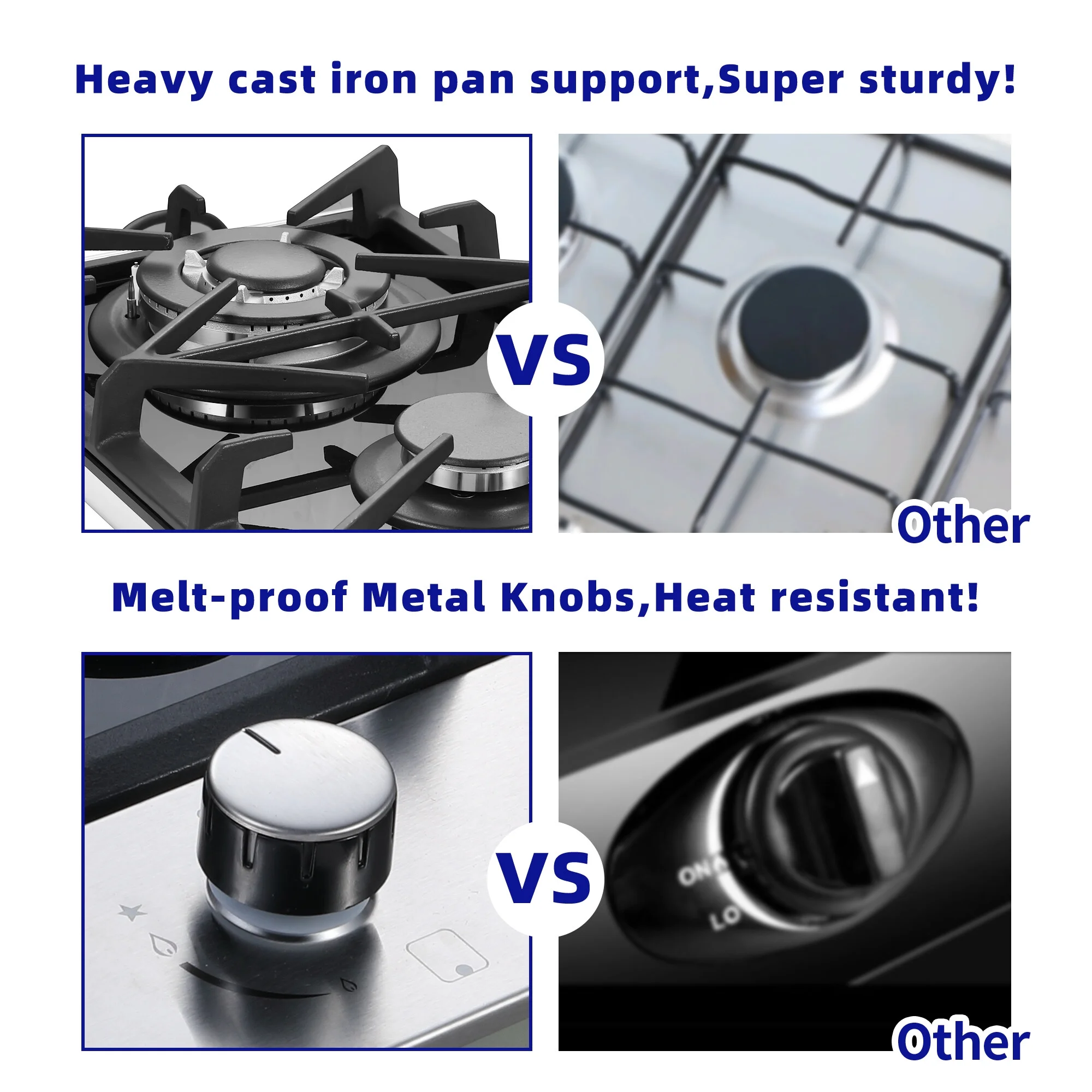 One-piece heavy cast iron grate, easy to assemble and remove, will not deformed. The unique eight-claw structure is stronger and more stable than the four-claw and six-claw grate, can support the pot firmly, avoid letting the pan slip off.