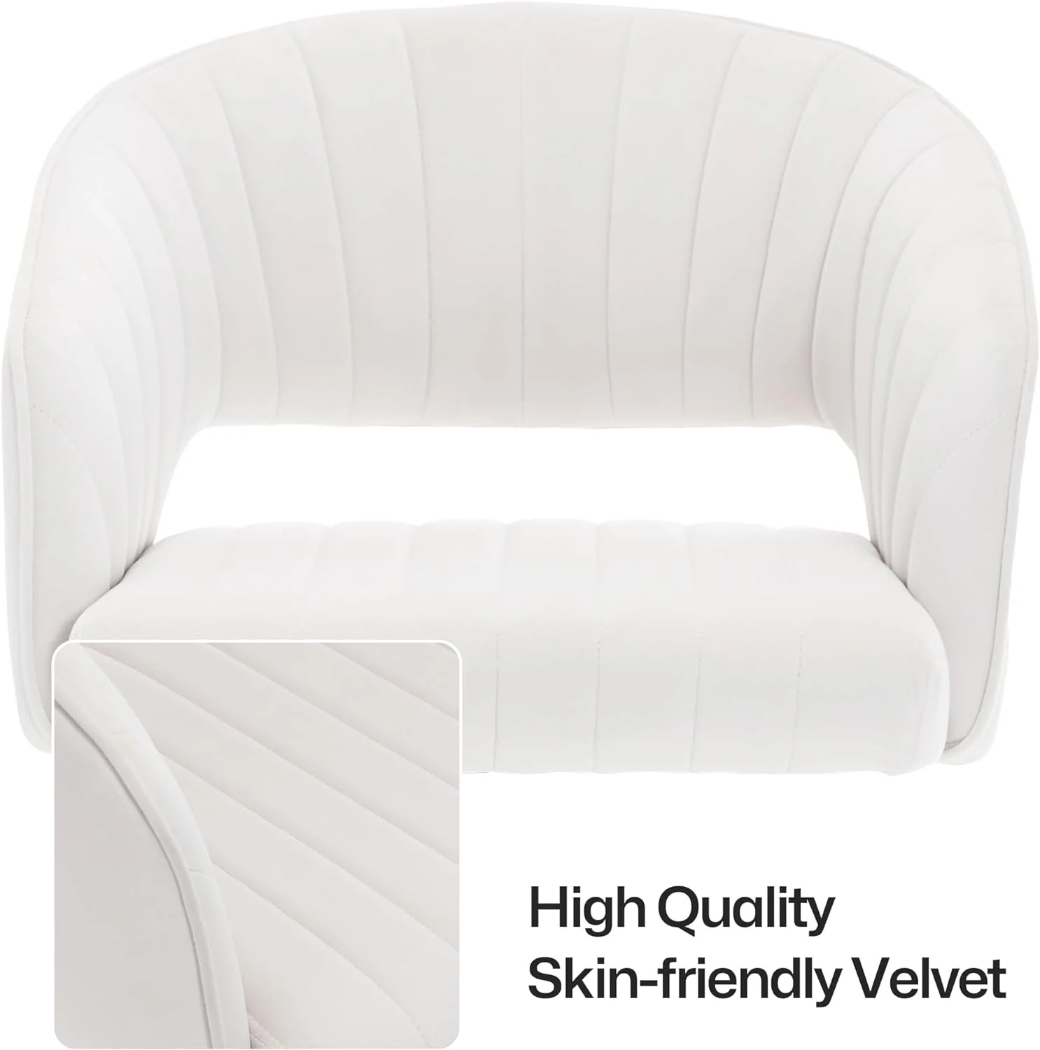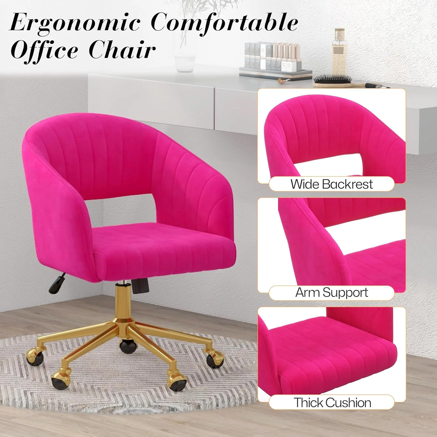 Home Office Swivel Desk Chair, Modern Velvet Vanity Chair, Height Adjustable Armchair with Gold Base, Ergonomic Office Chair for Task Study Computer Room, Beige