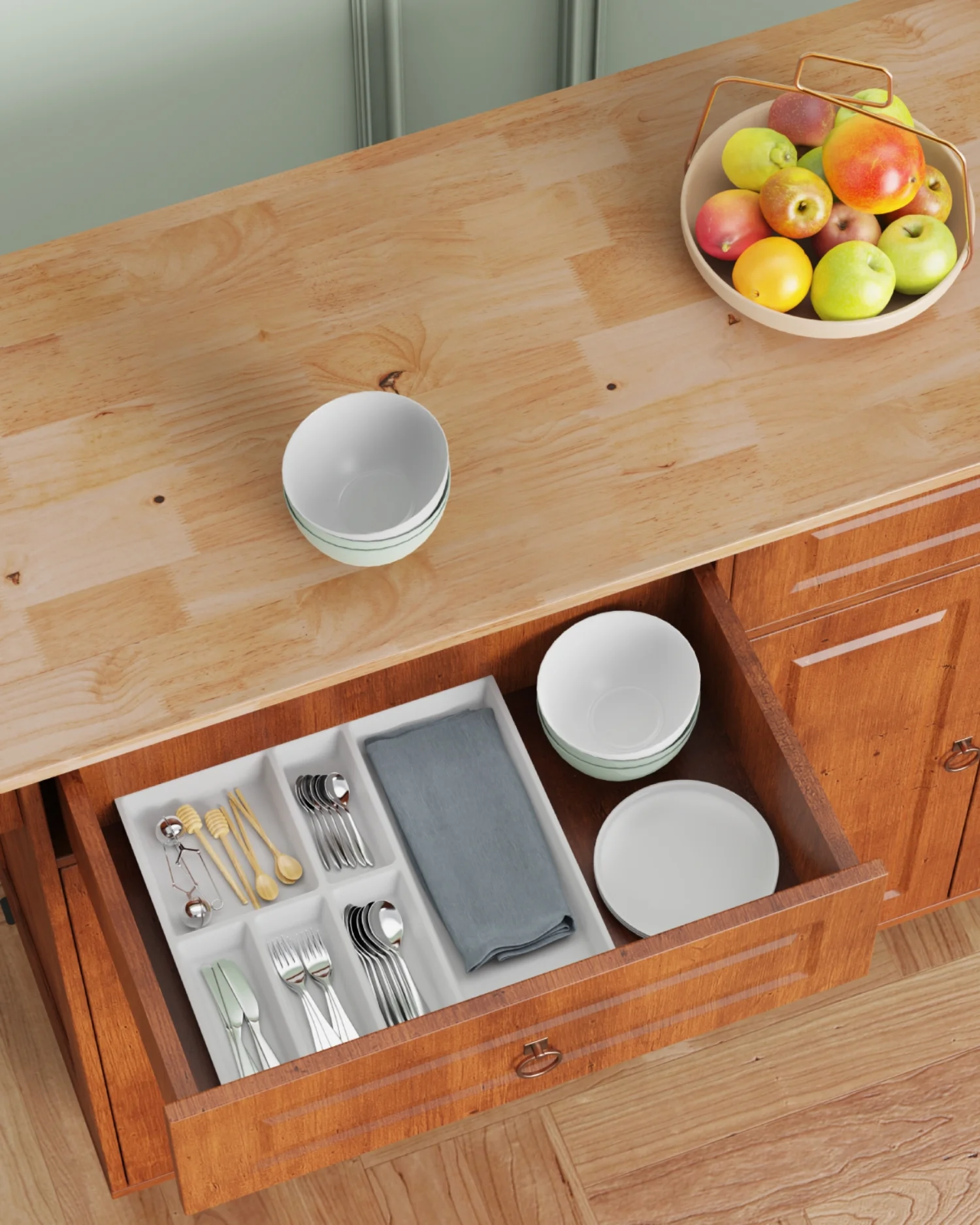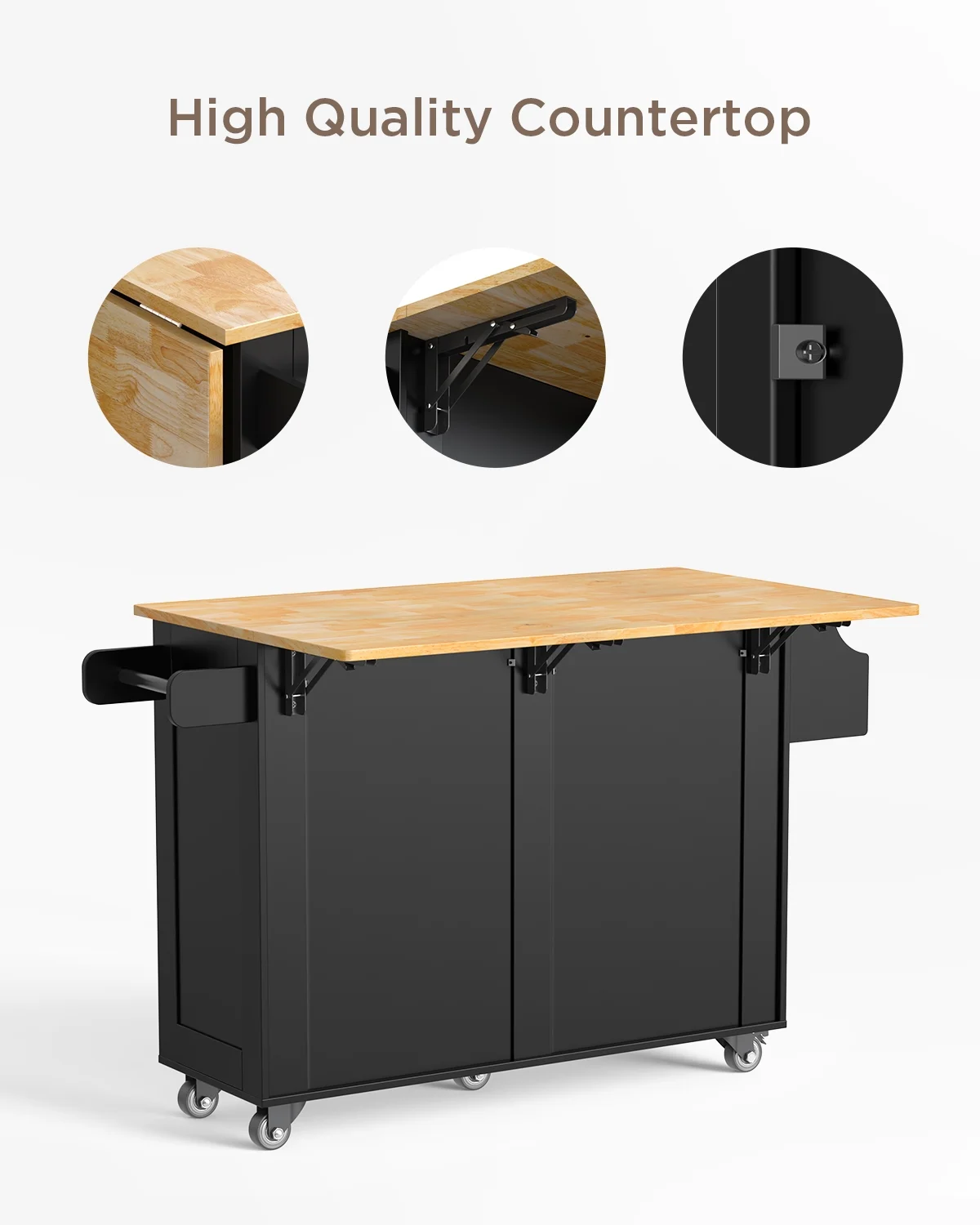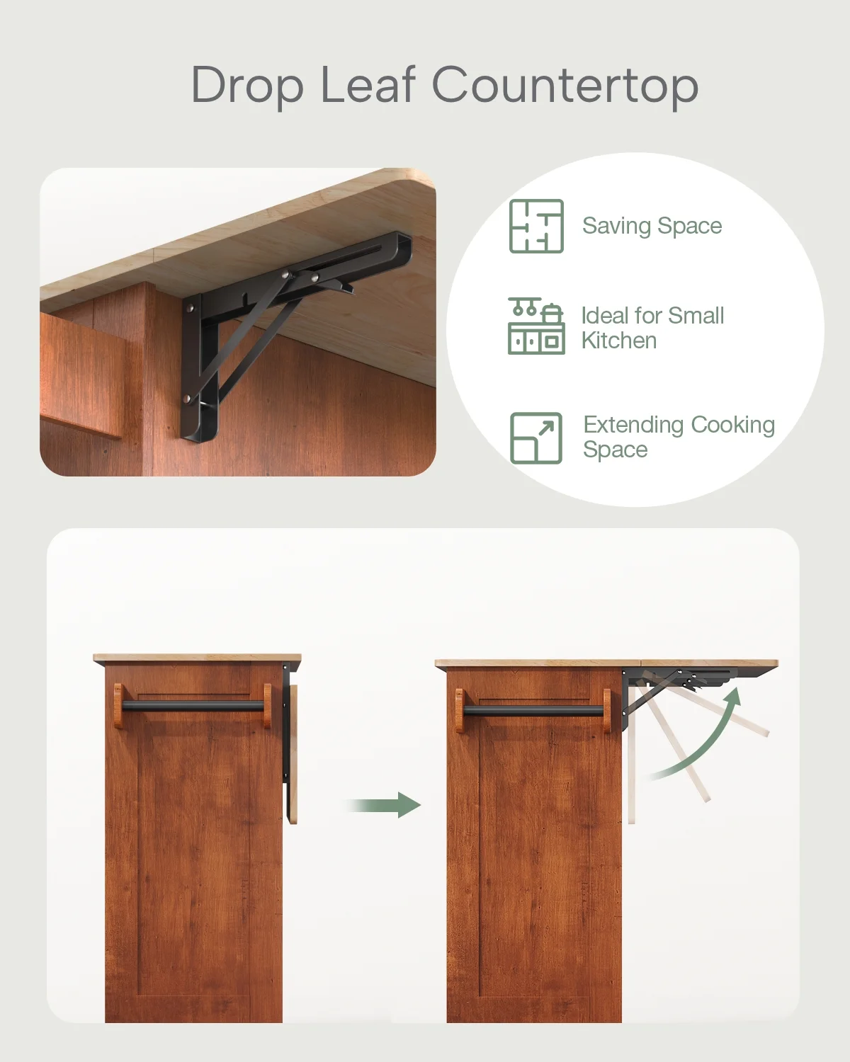 - ??��ADJUSTABLE SOLID WOOD COUNTERTOP �� �C The solid wood countertop can be folded out to create a spacious 29.3" x 43.3" kitchen workspace, allowing you to easily adjust it and gain extra counter space, perfect for smaller kitchens.