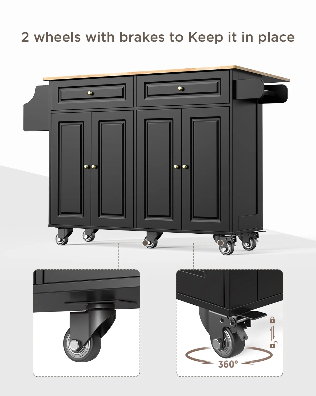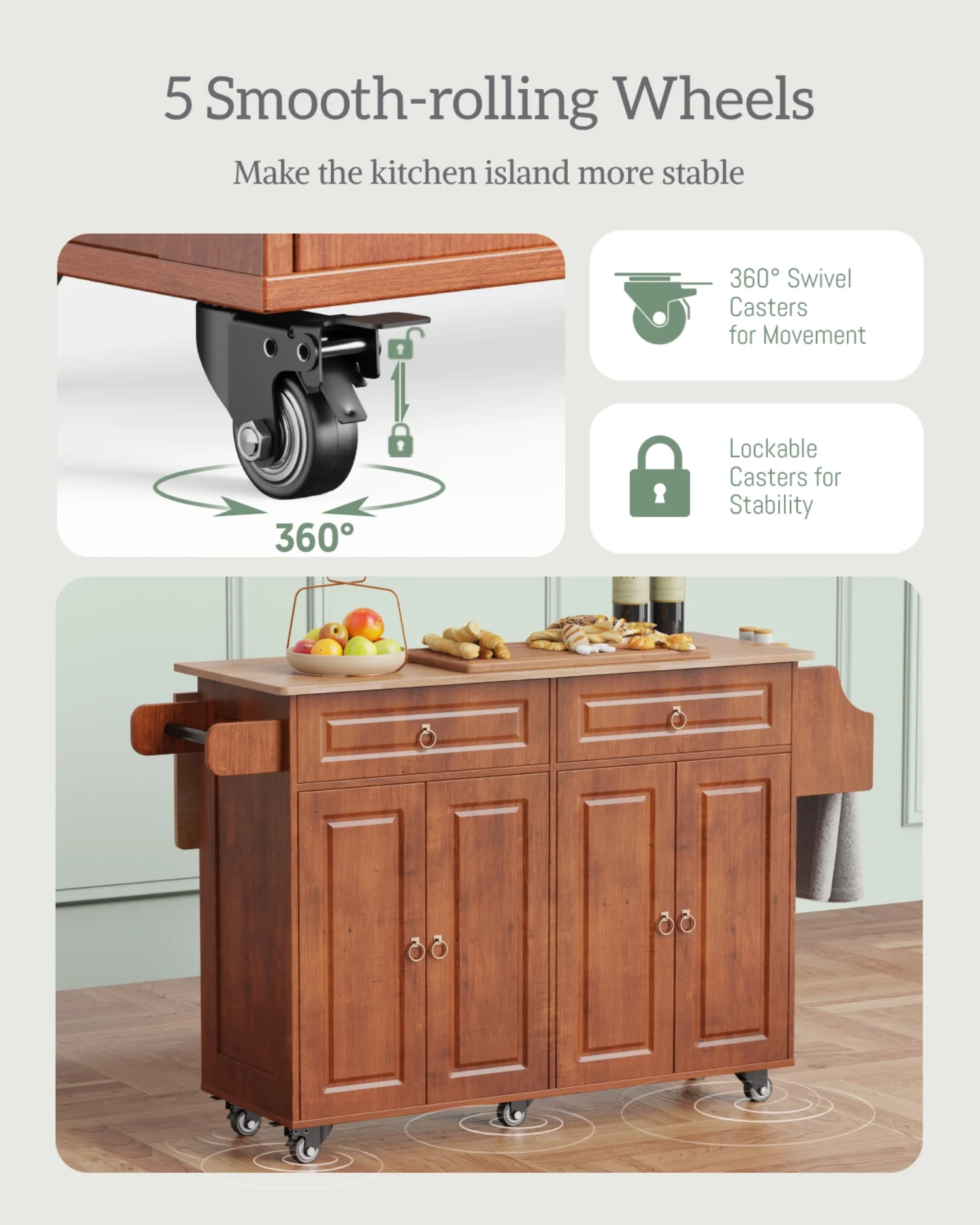 - ??��ANTI-SLIP CASTERS�� �C Equipped with five rolling wheels at the bottom, this kitchen island is easy to move around, with two locking wheels to keep it securely in place, even on uneven surfaces. You can place it anywhere in your kitchen, or use it as a mobile coffee table or bar cart.