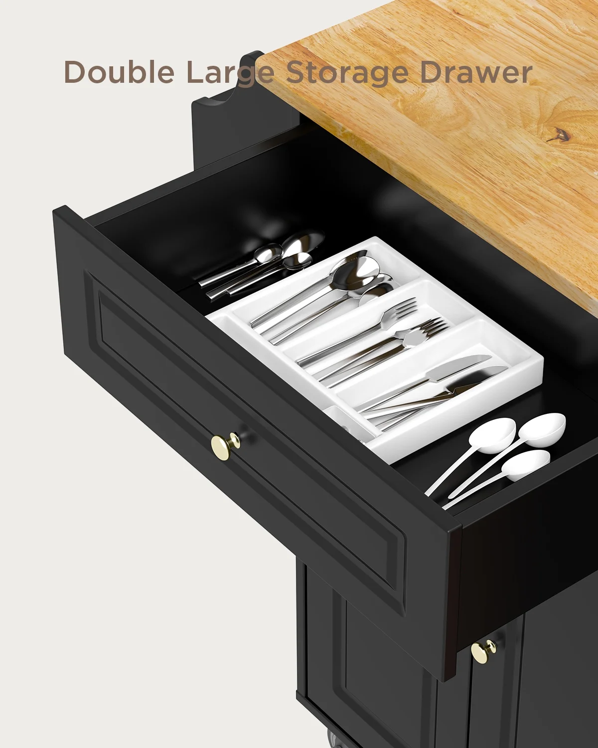 Aiho Rolling Kitchen Island Cart with Storage and Rubber Wood Countertop, Black