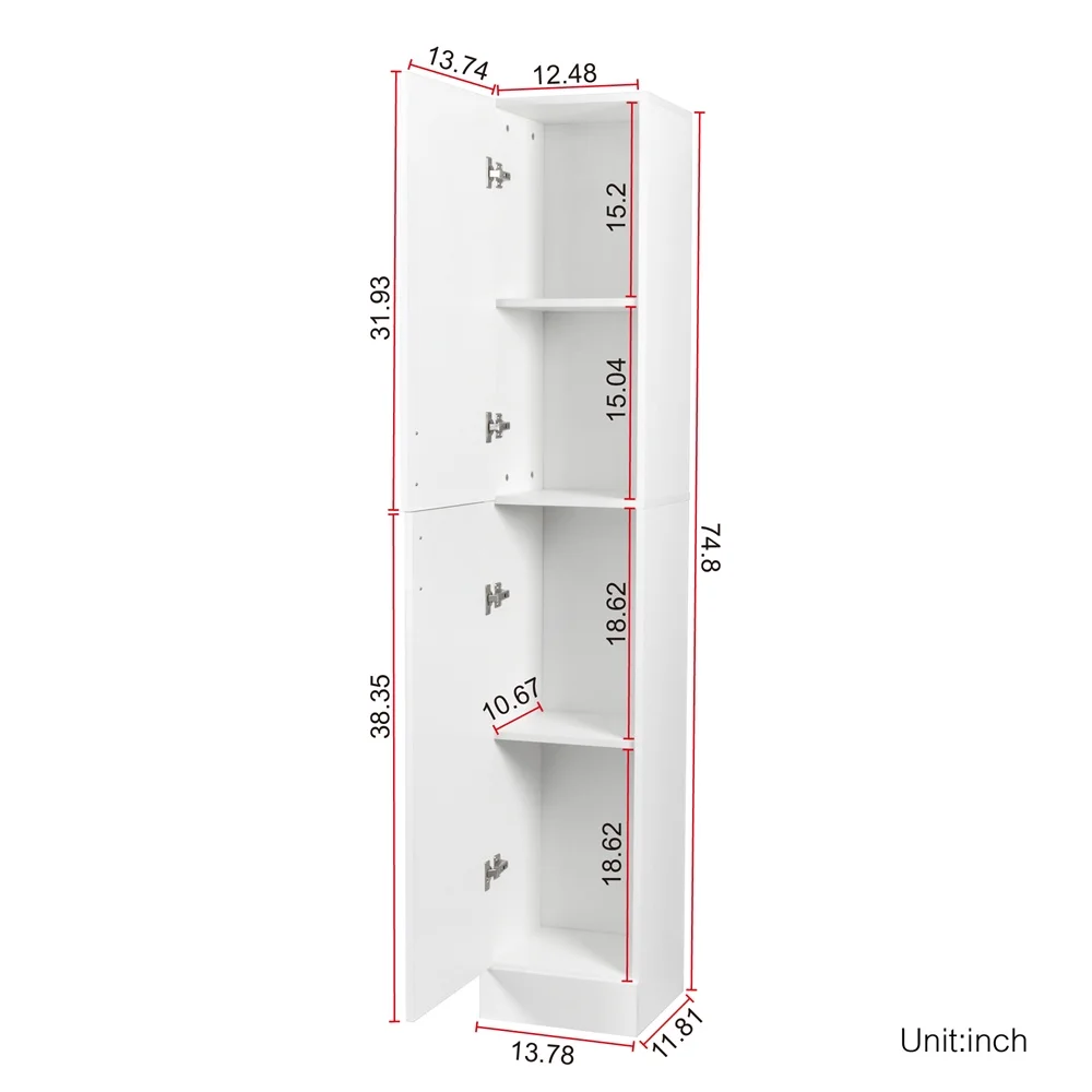- ��Ample Storage Space��With its four-tier shelves in enclosed cabinets, this tall cabinet offers generous storage space to meet your daily needs. Organize your towels, shampoos, and other bathroom accessories efficiently and keep your bathroom clutter-free.