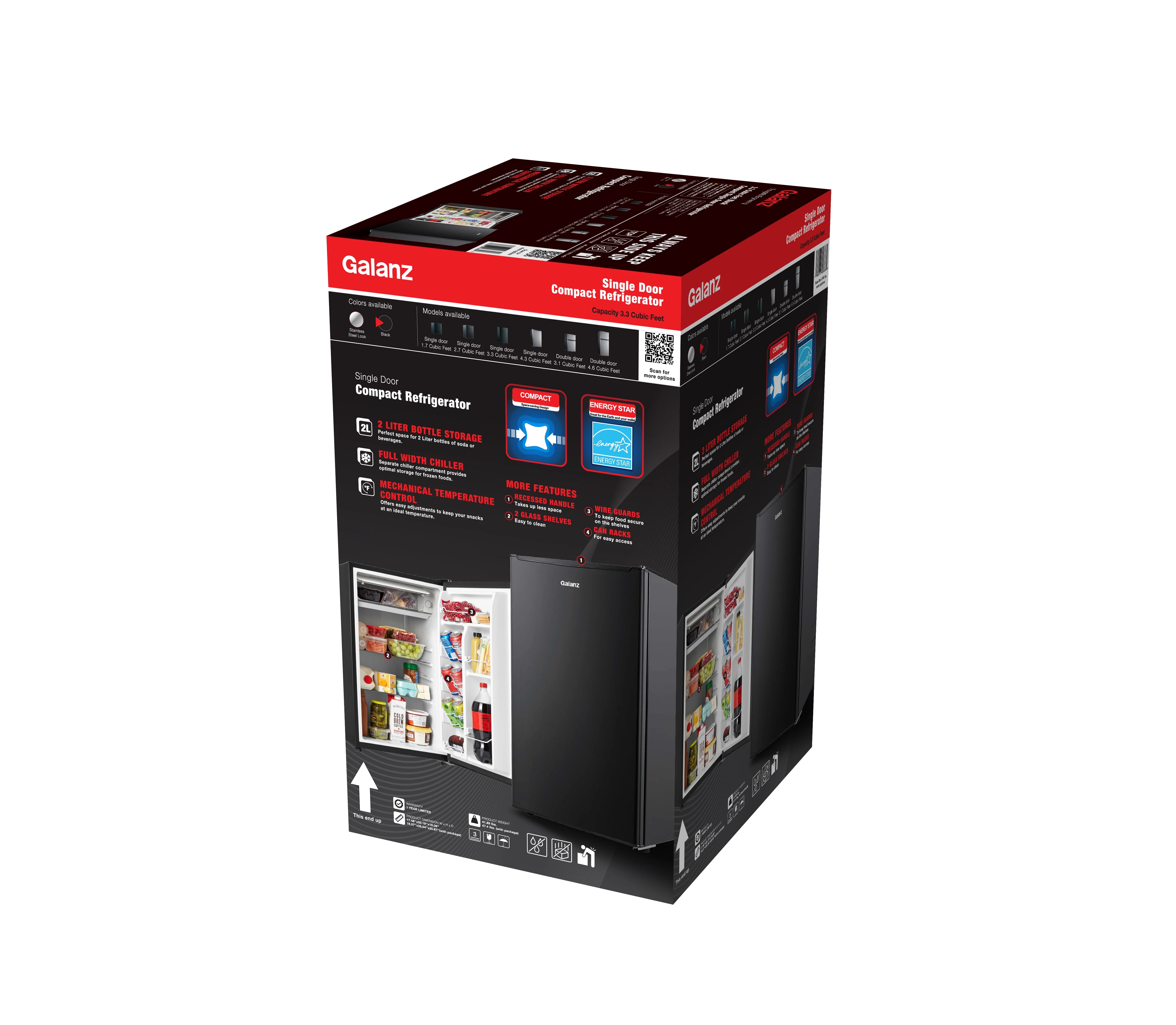 - Galanz 3.3 Cu ft One Door Mini Fridge, Black Estar