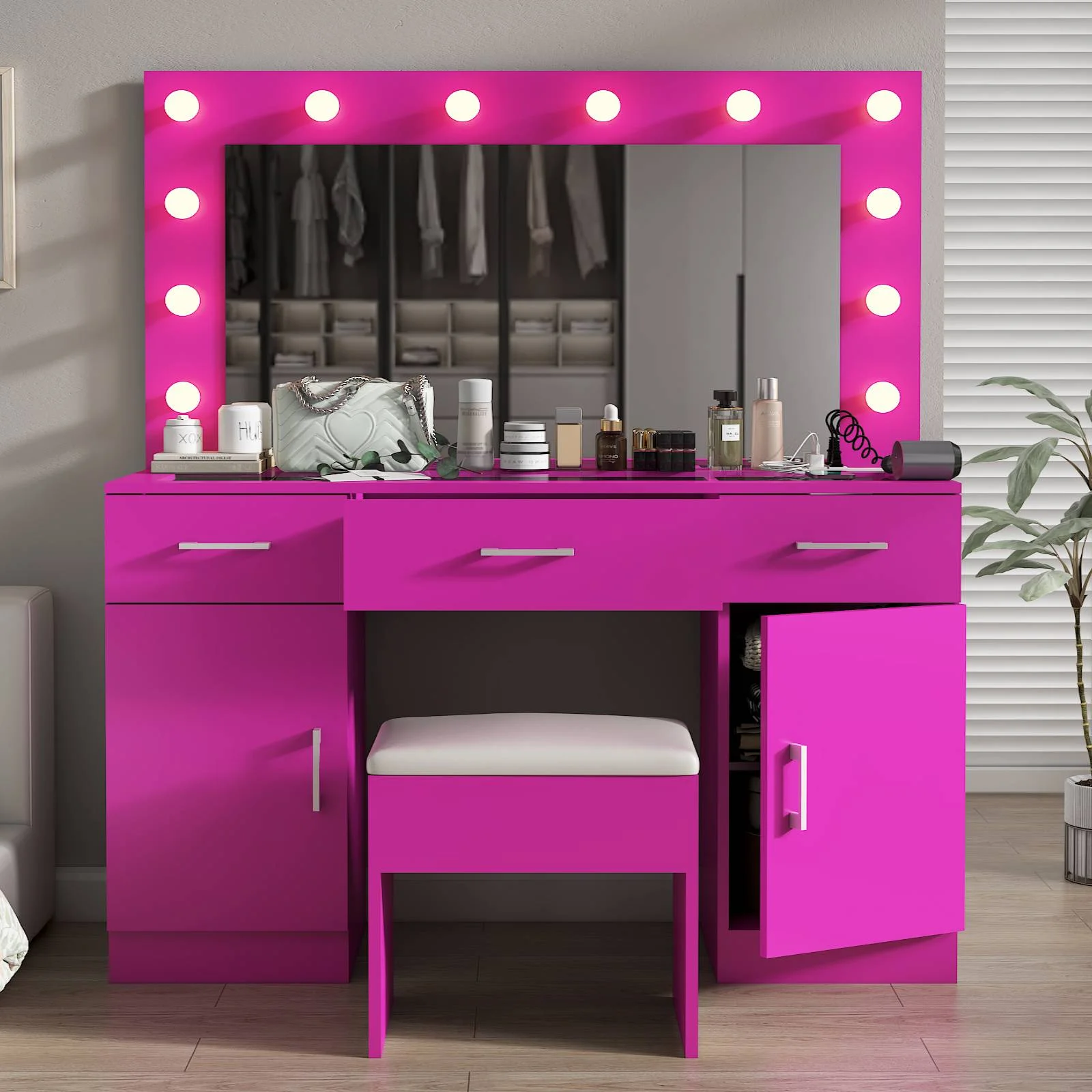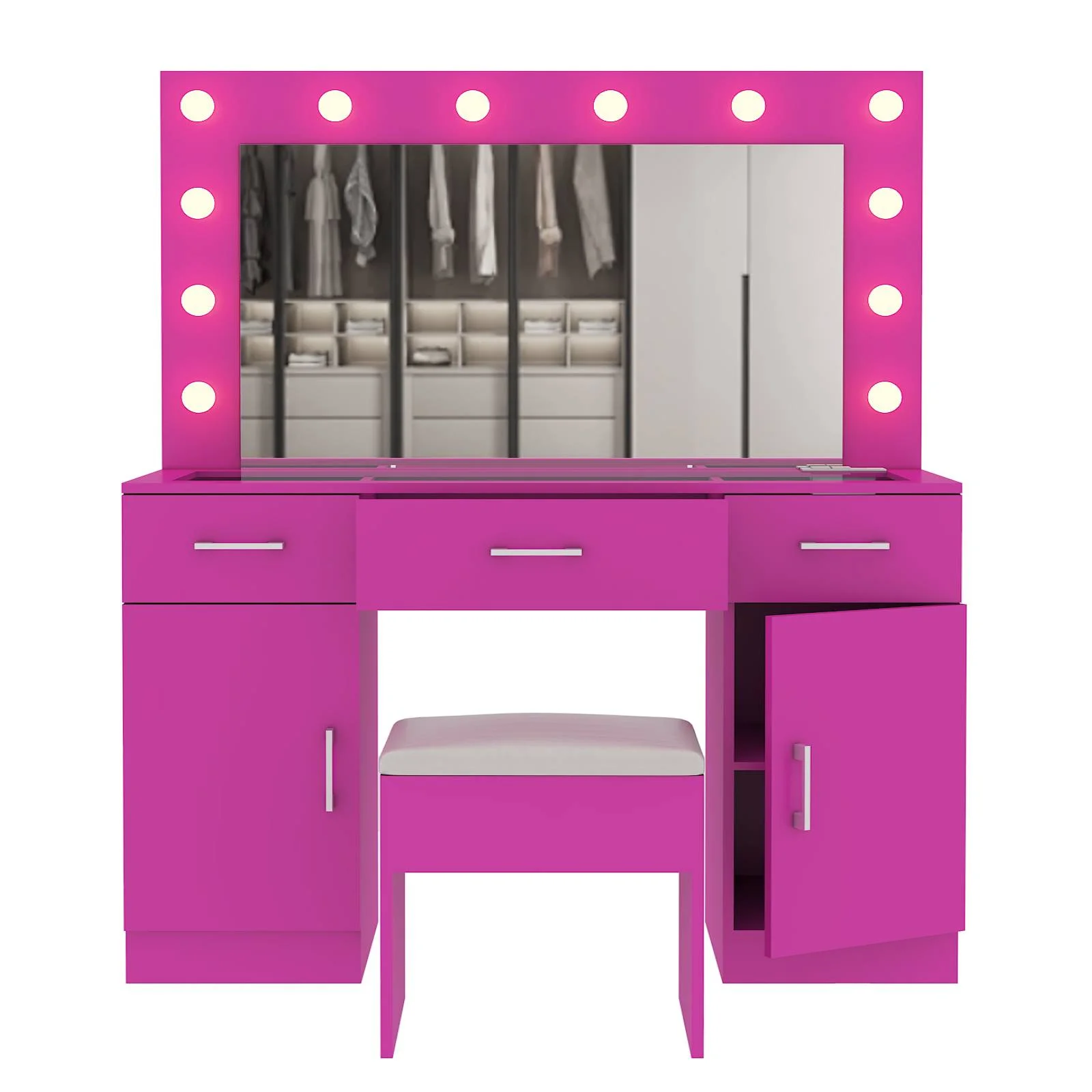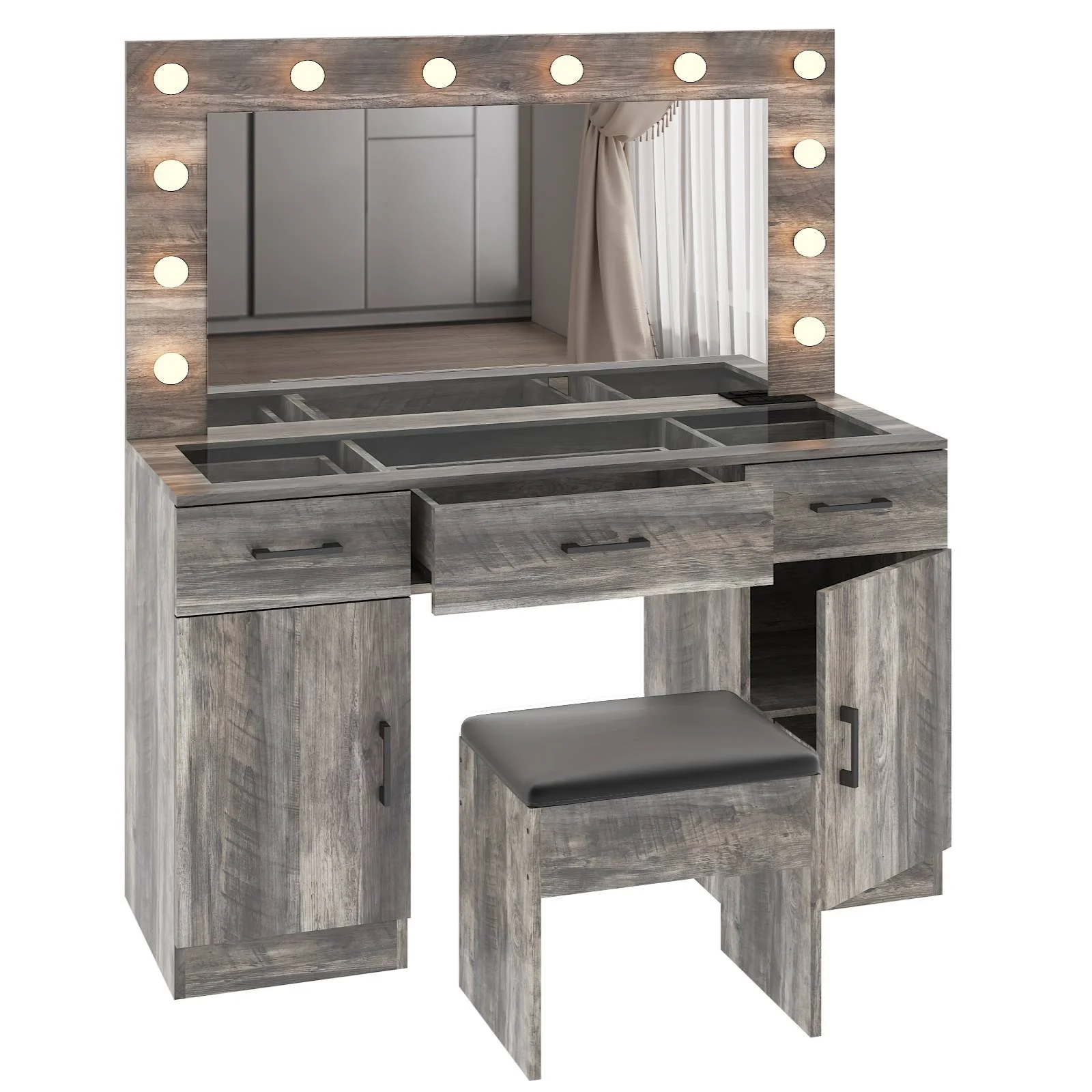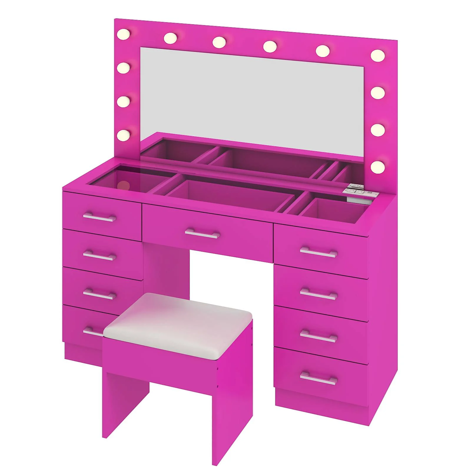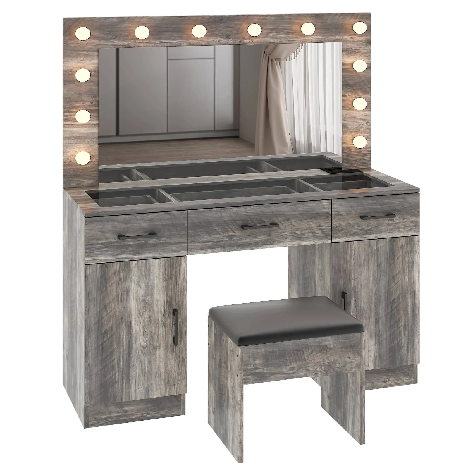Customize your lighting experience with the dressing table's adjustable tri-color lighting. Whether you prefer warm, cool, or natural tones, this feature ensures perfect lighting for every occasion. -