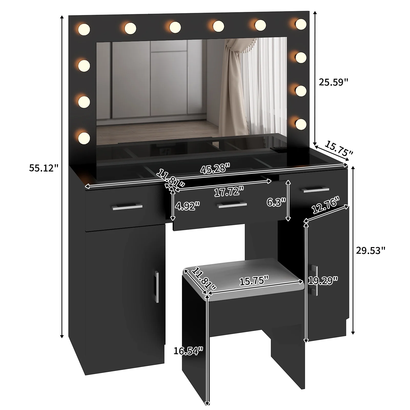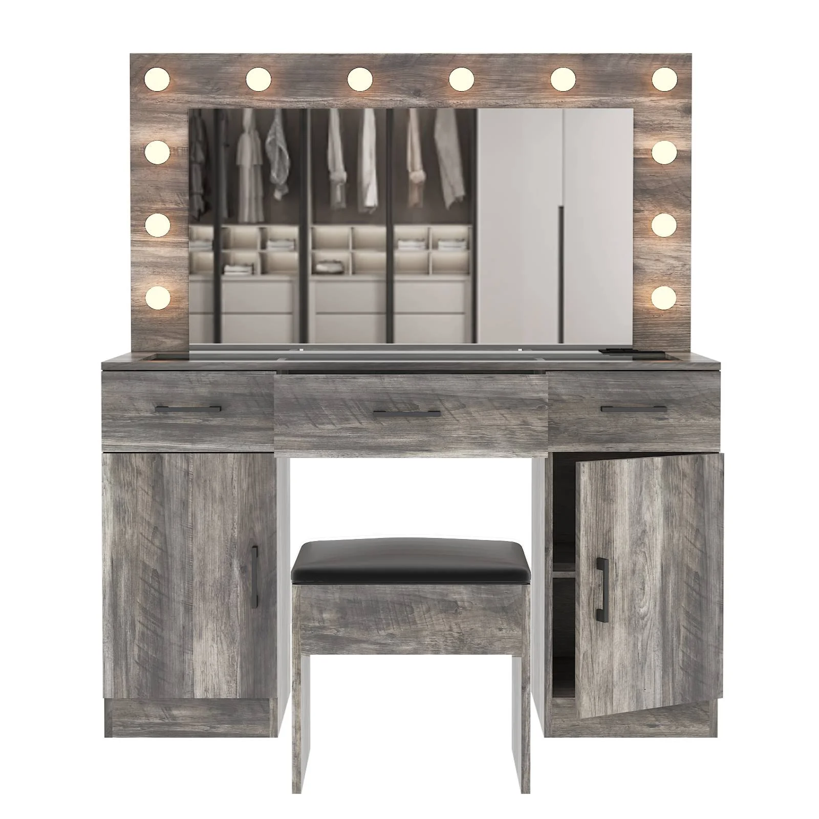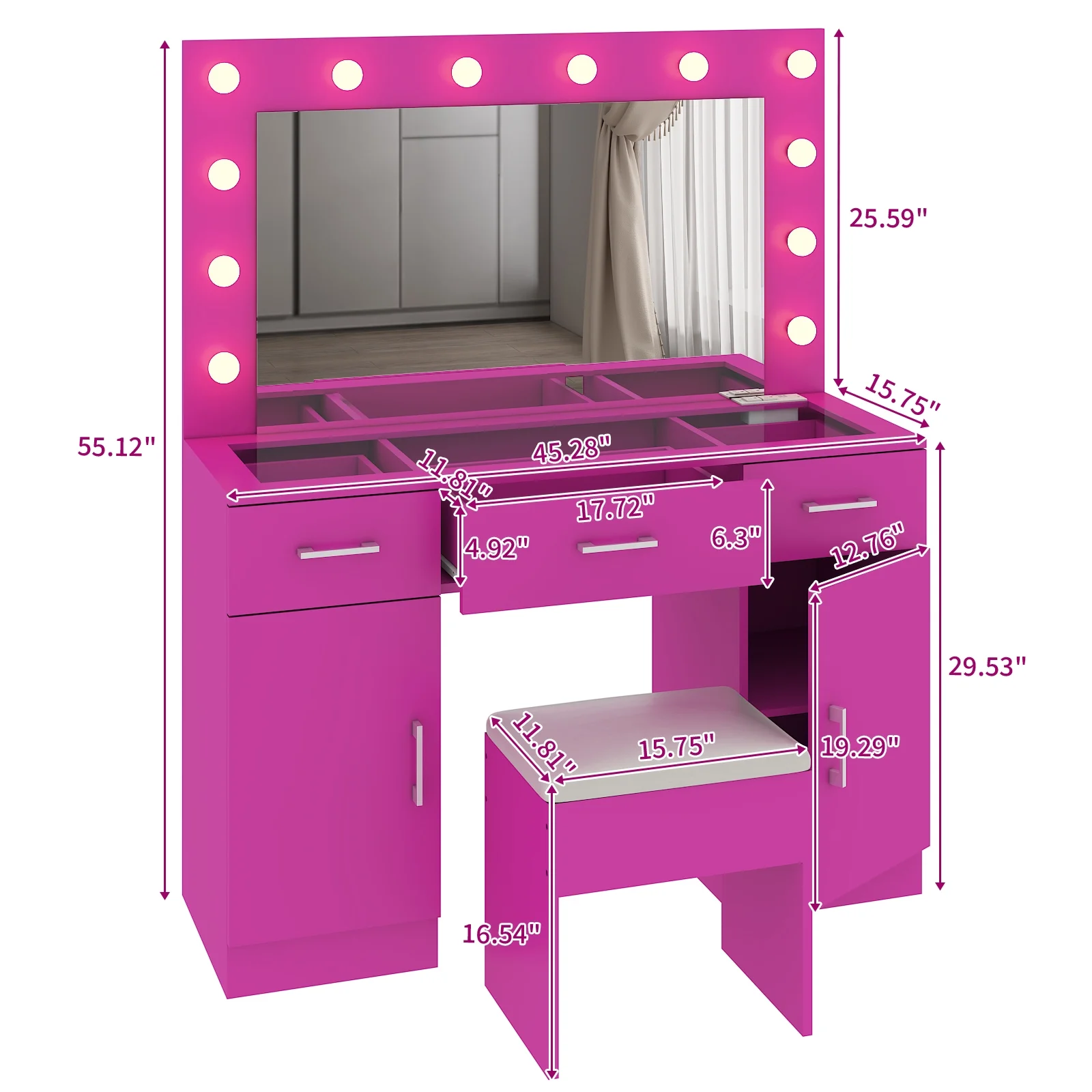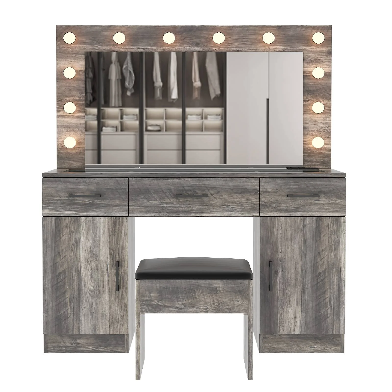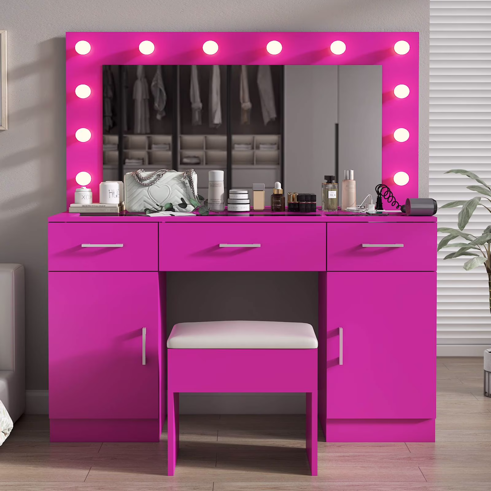 Customize your lighting experience with the dressing table's adjustable tri-color lighting. Whether you prefer warm, cool, or natural tones, this feature ensures perfect lighting for every occasion. -