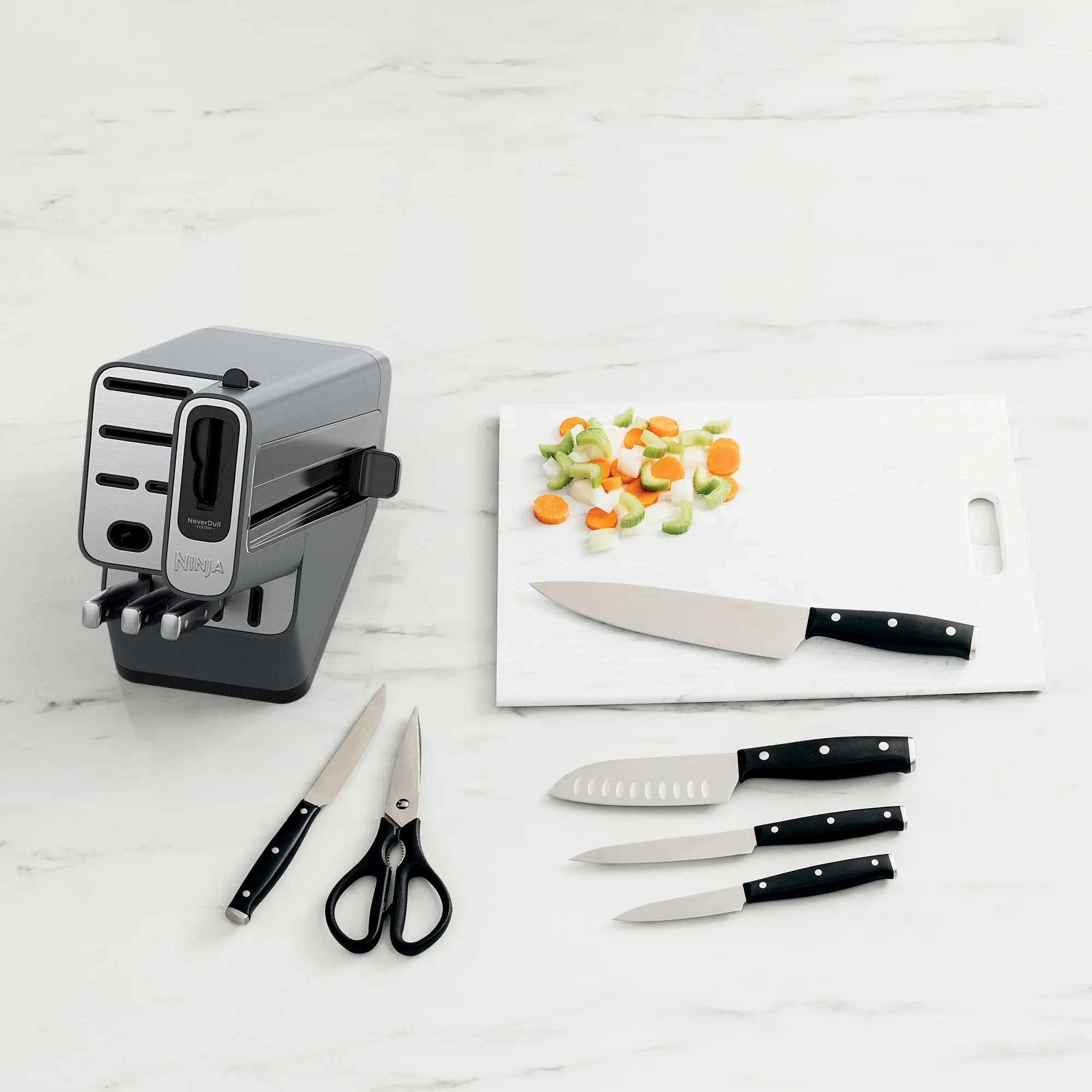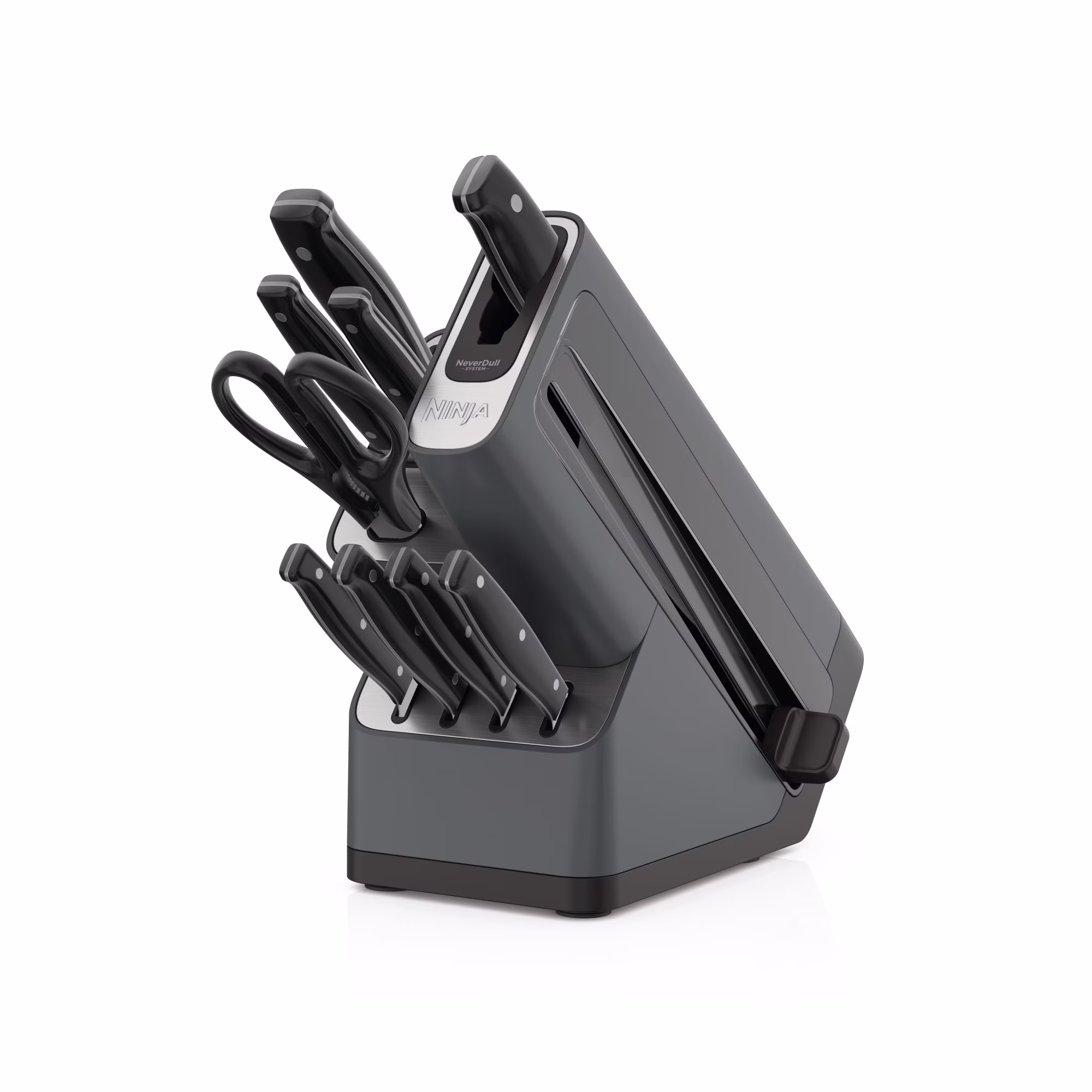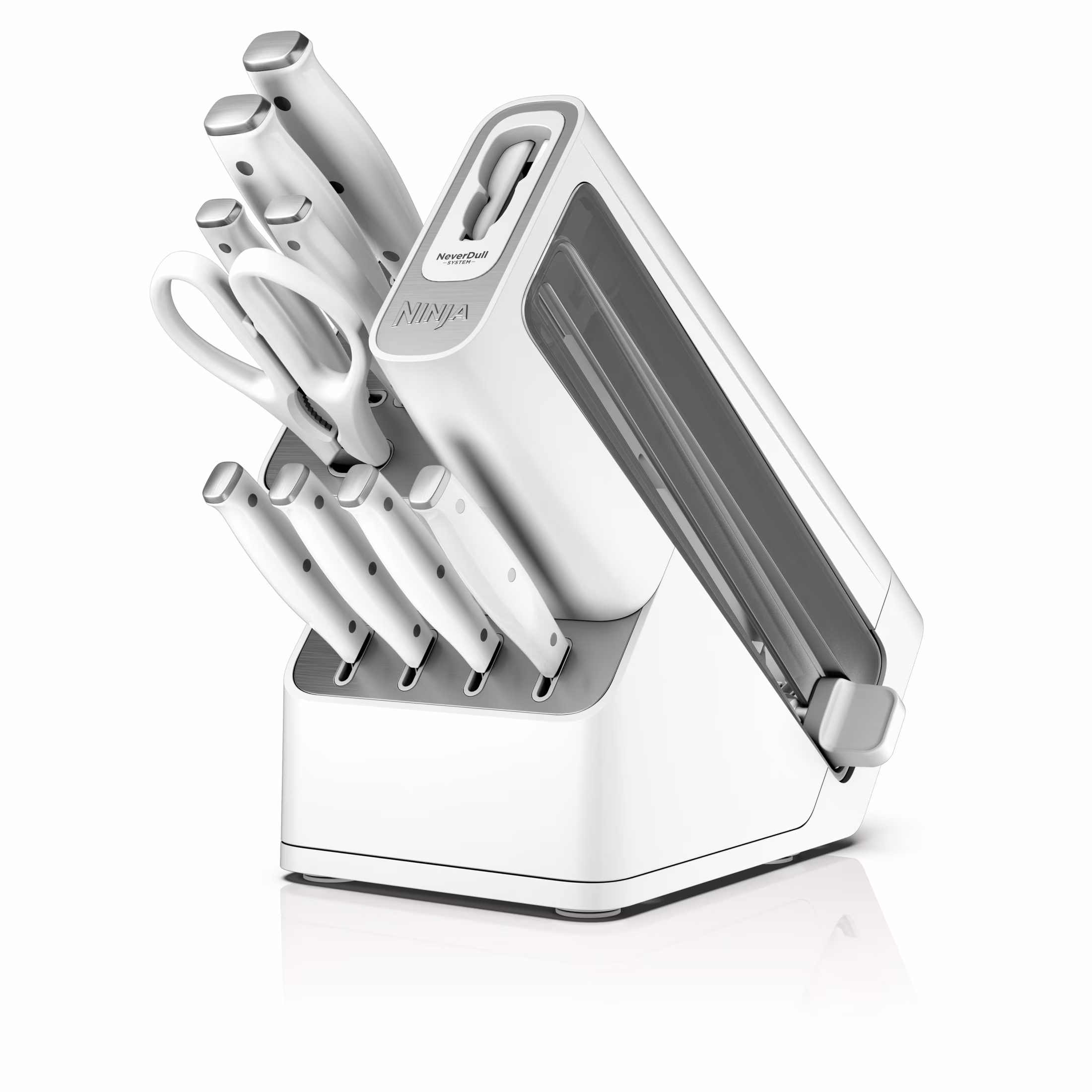 - BUILT-IN SHARPENER: NeverDull Technology is conveniently built into the storage block.