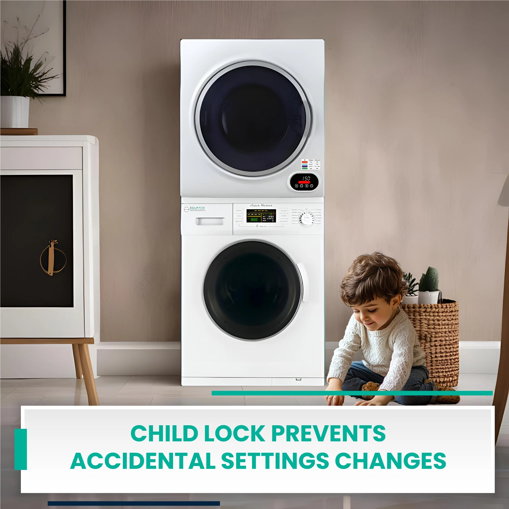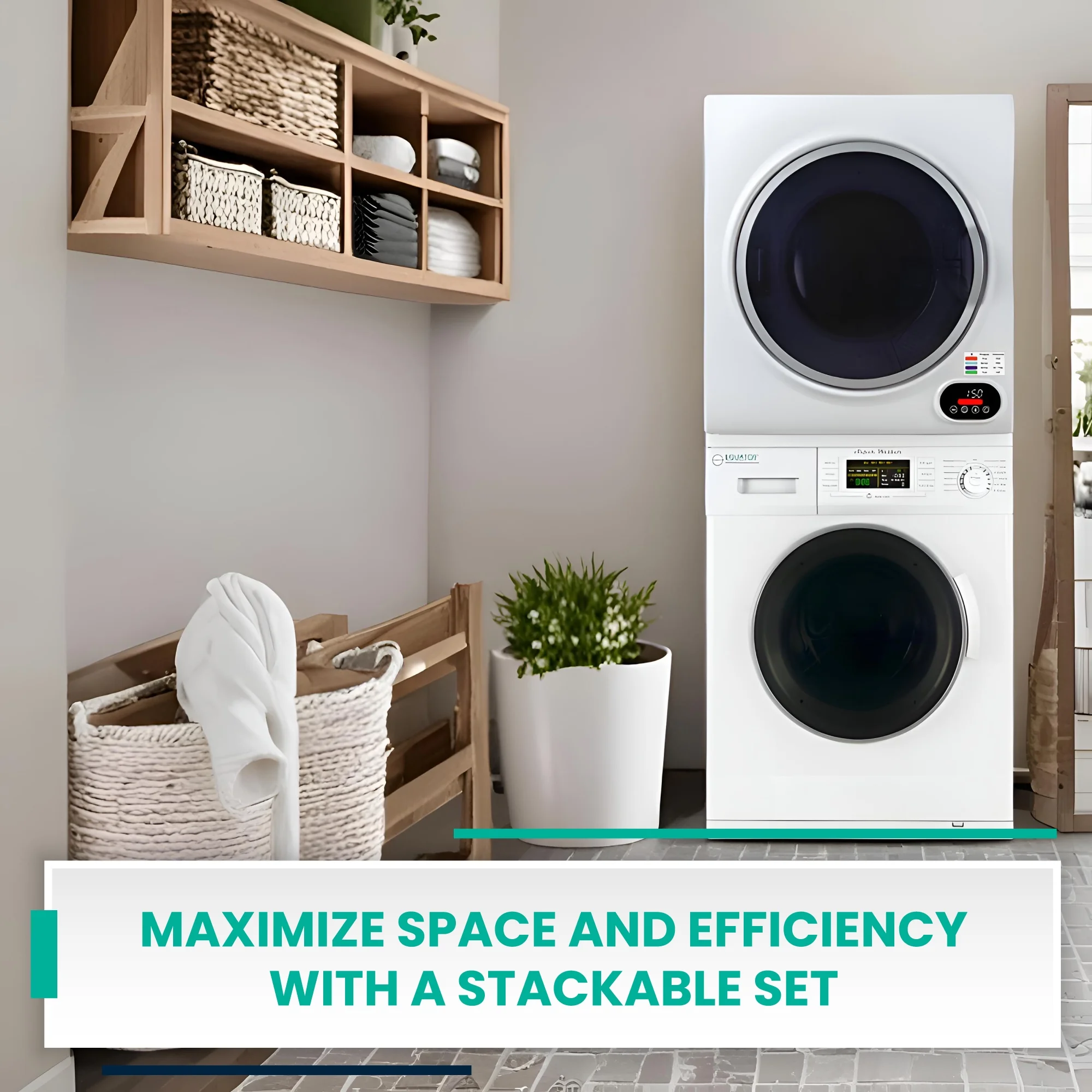 - SAVE SPACE- Stacked washer/dryer combination helps save space in your laundry room. By orienting your laundry units vertically as opposed to horizontally, you free up floor space for other appliances and tools
