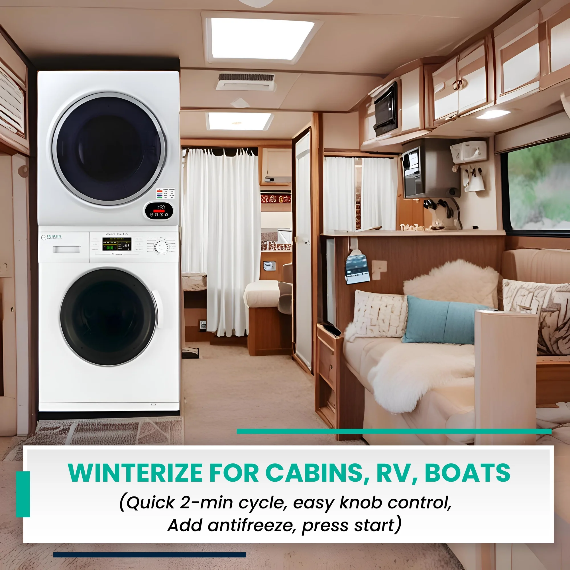 - WINTERIZE FOR CABINS, RV, BOATS- Quick 2 minute easy to operate cycle located on knob. Pour anti-freeze in drum and then press start.