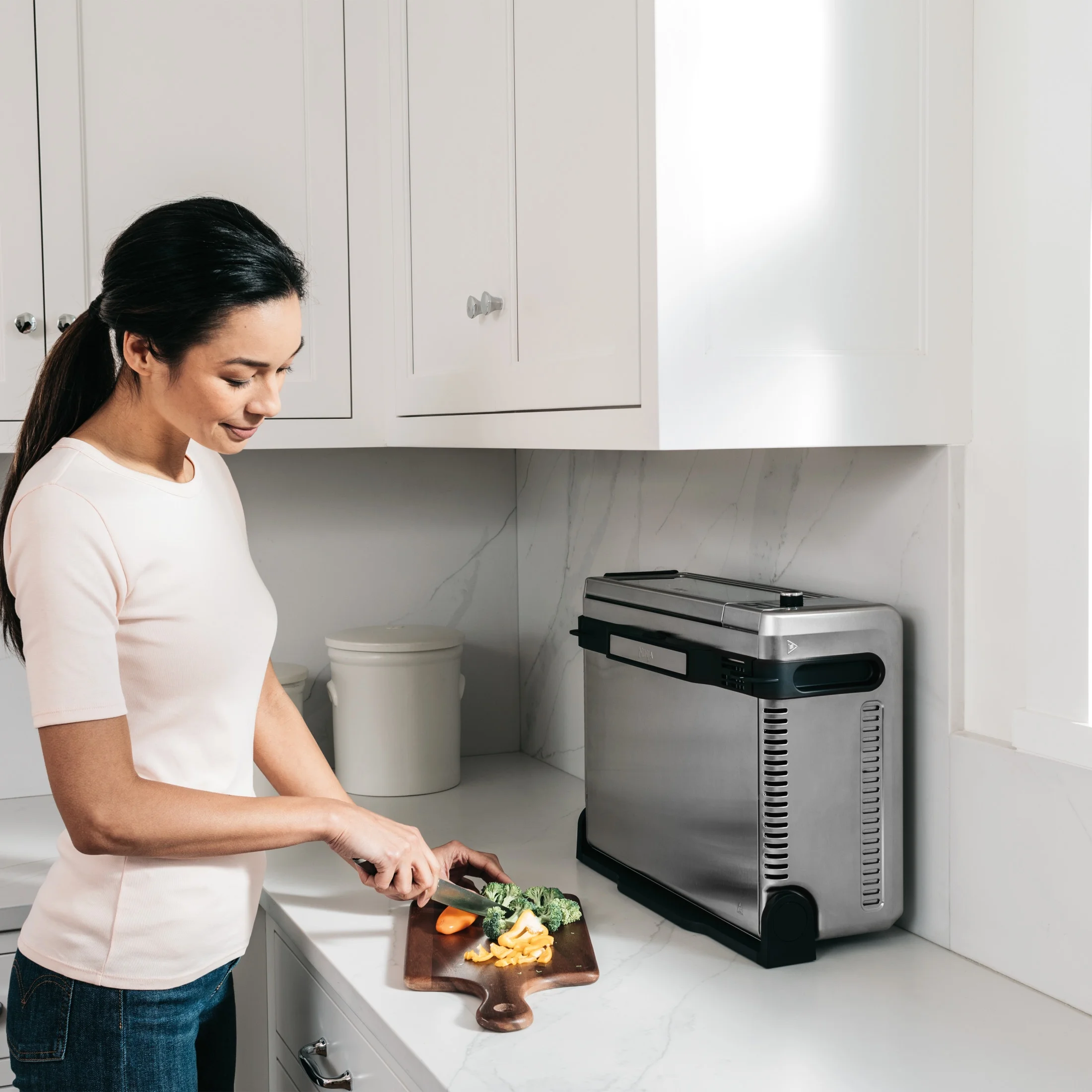 - The ultimate meal-making machine: Air Fry, Air Roast, Air Broil, Bake, Bagel, Toast, Dehydrate, and Keep Warm all in one powerful 1800-watt appliance.