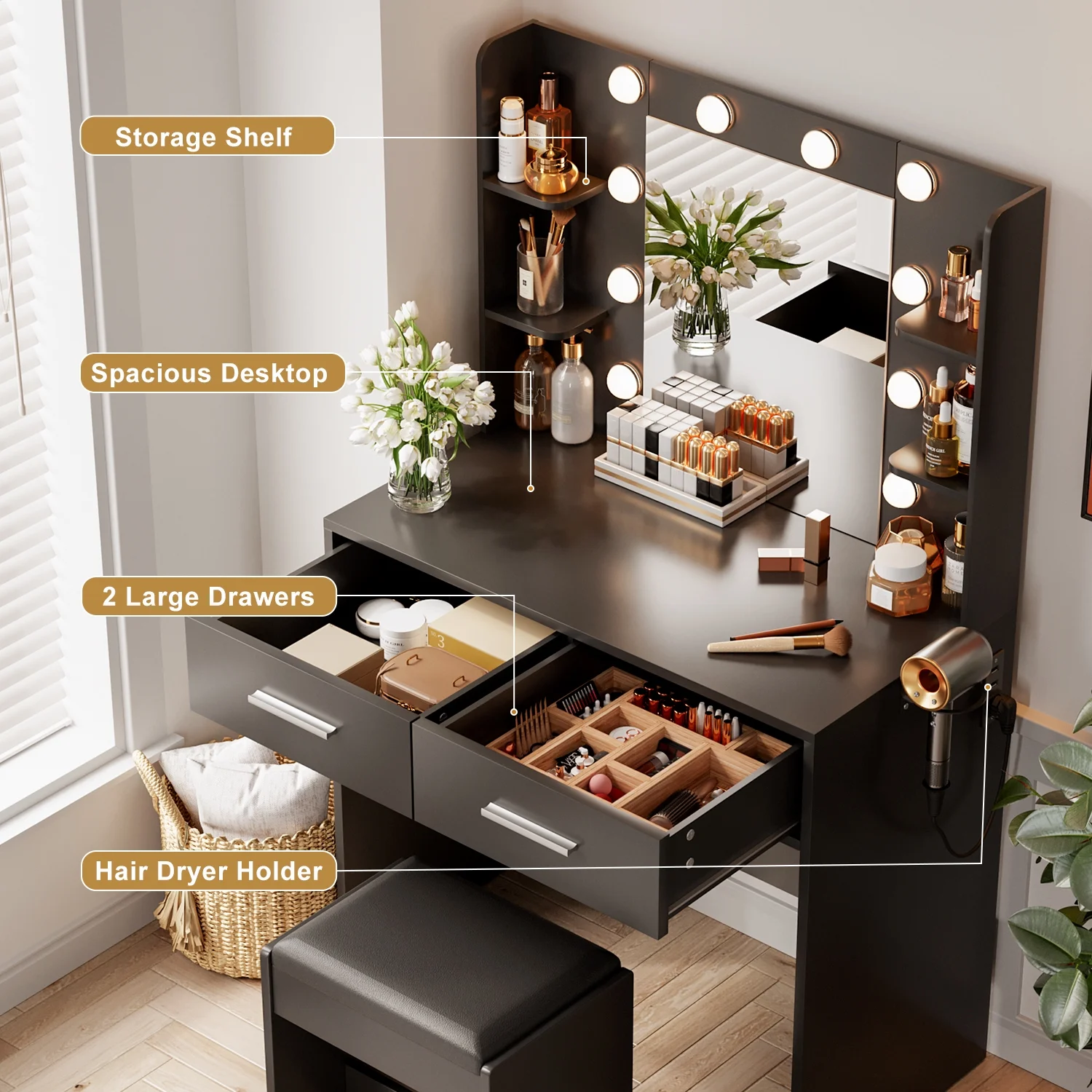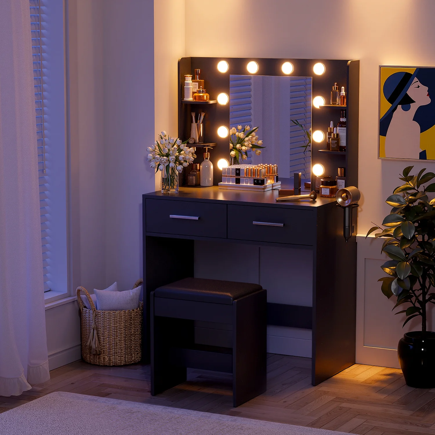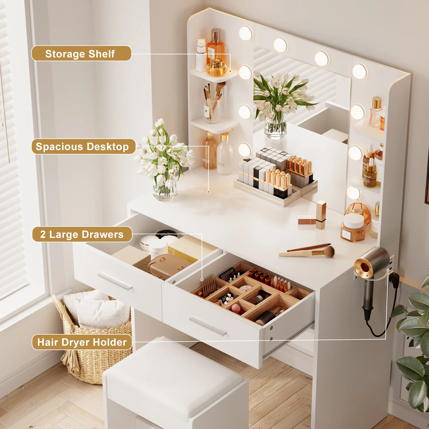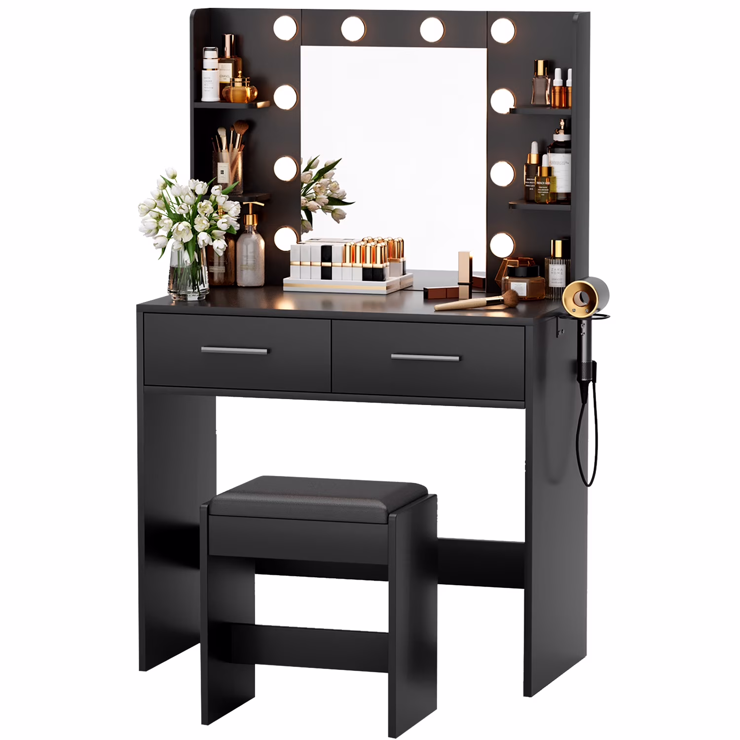 - Built-in Power Socket: The sockets on the side of the vanity table are designed to make it easy for you to use hair dryers, curling irons, beauty instruments and other small appliances without the hassle of looking for power sockets.