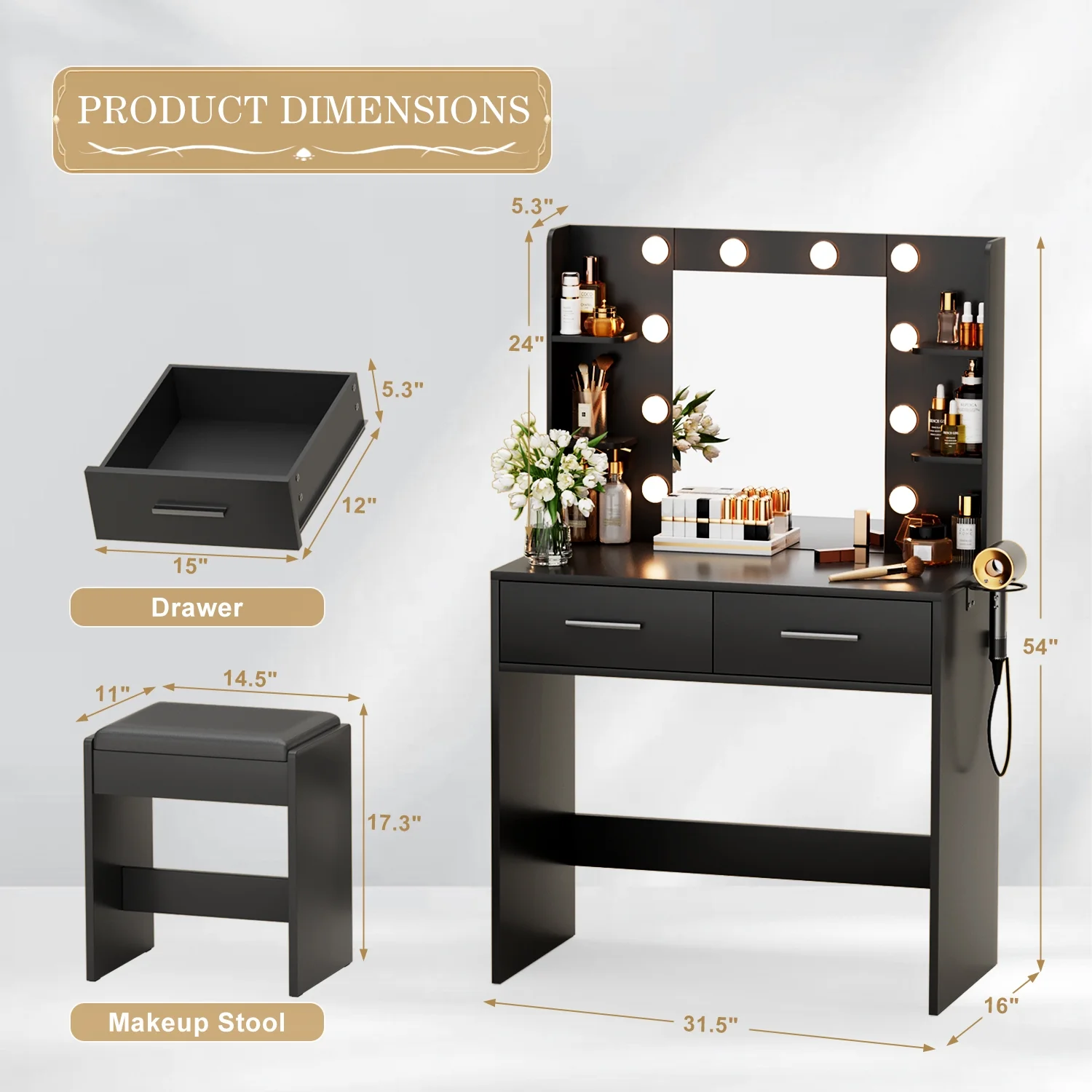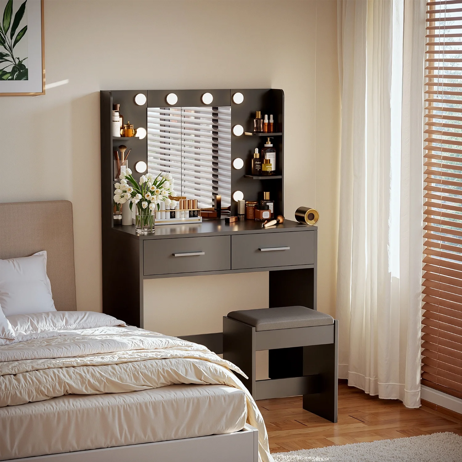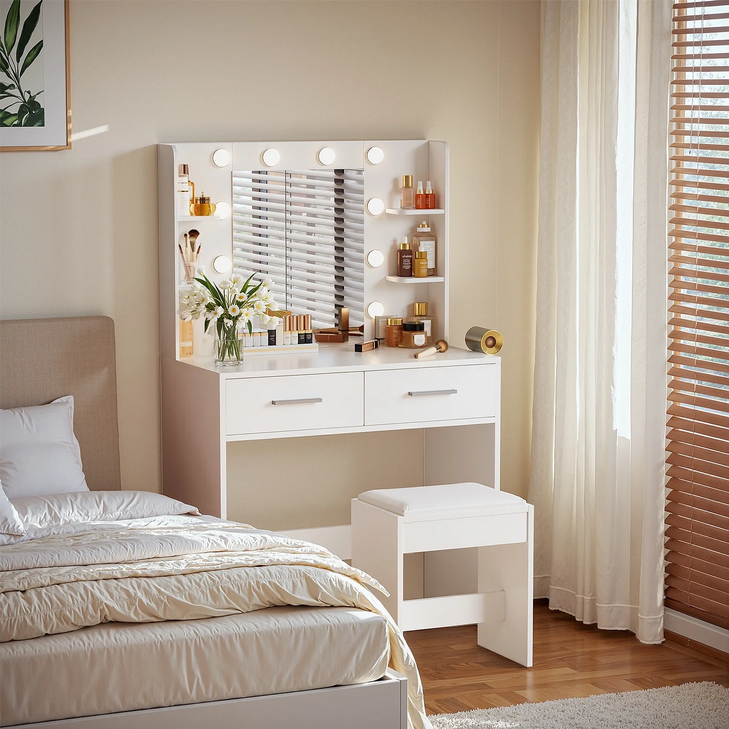 - Dual Drawer Design: The makeup vanity table has two spacious drawers with high-quality sliding rails that open and close smoothly and silently. Whether it's cosmetics, jewelry or daily accessories, they can all be stored in an orderly manner.