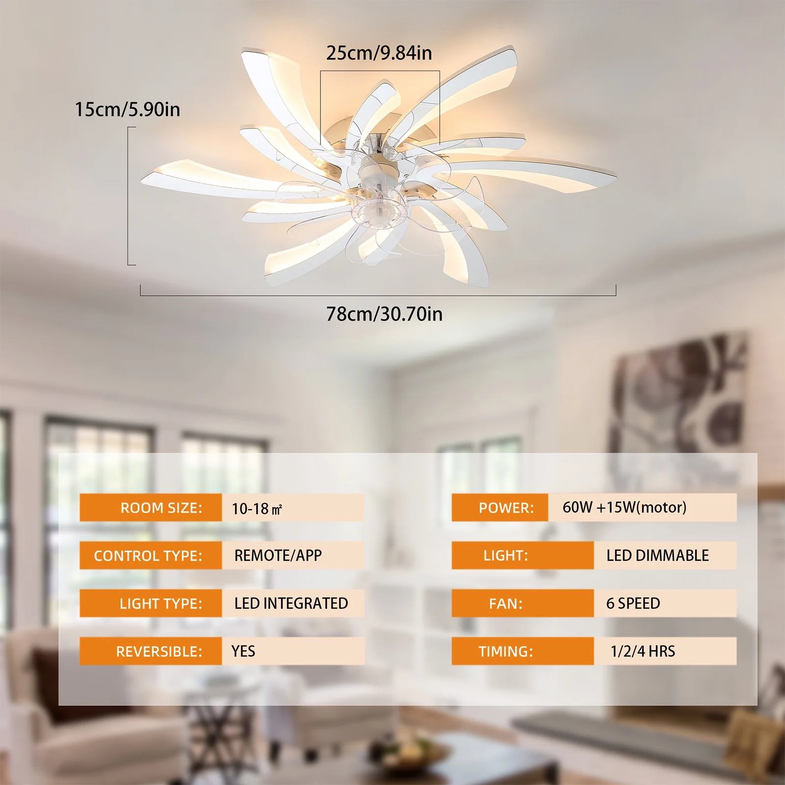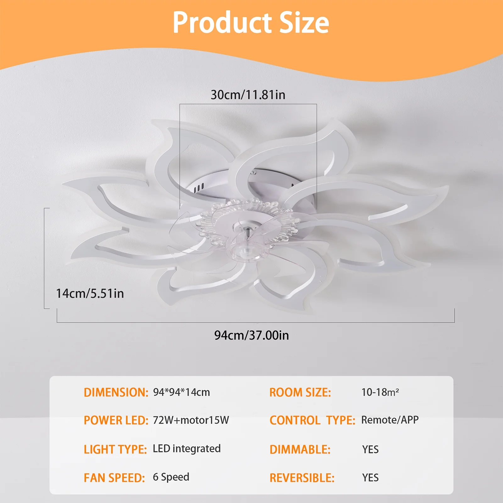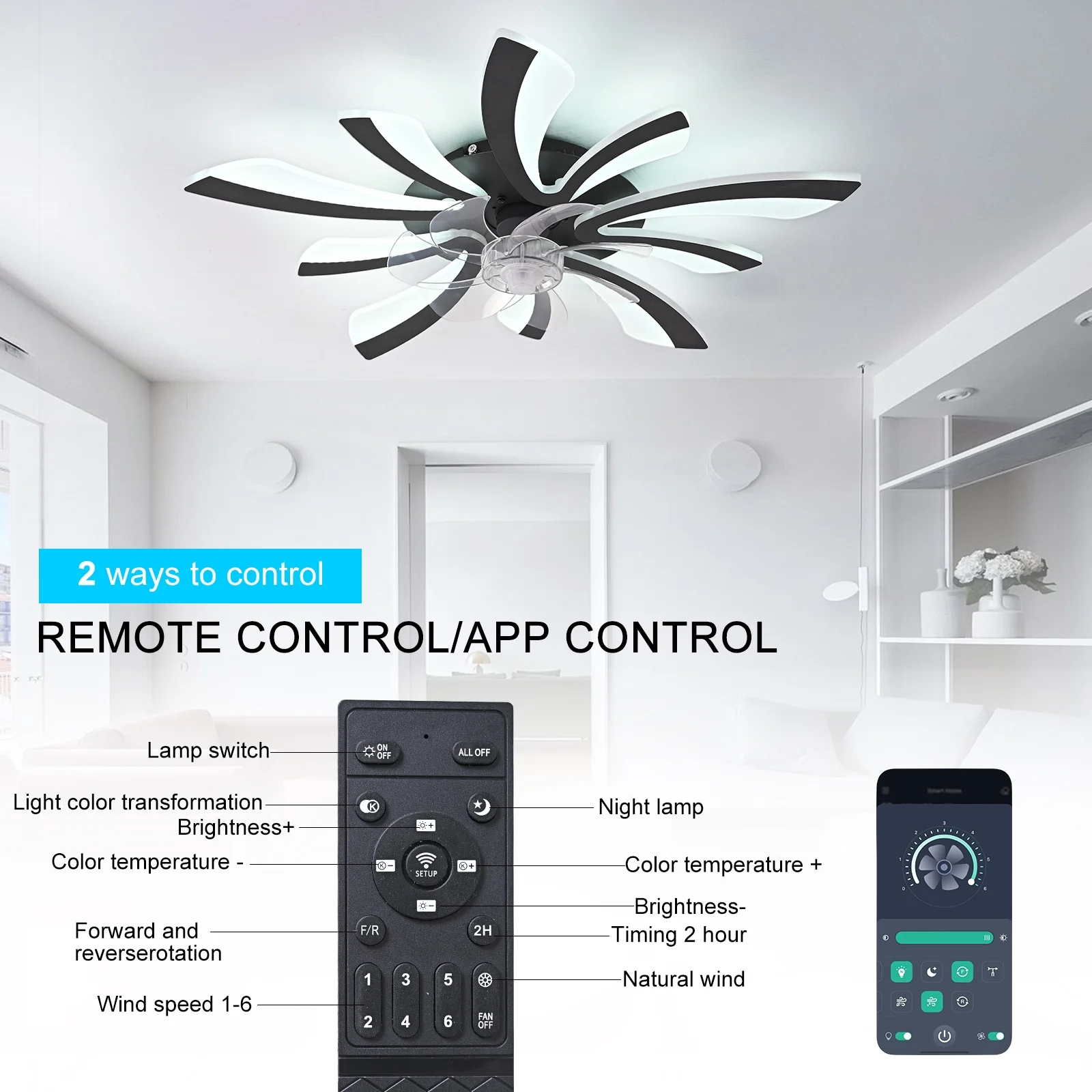 - Control Type: APP Control/Remote/ON/OFF wall button