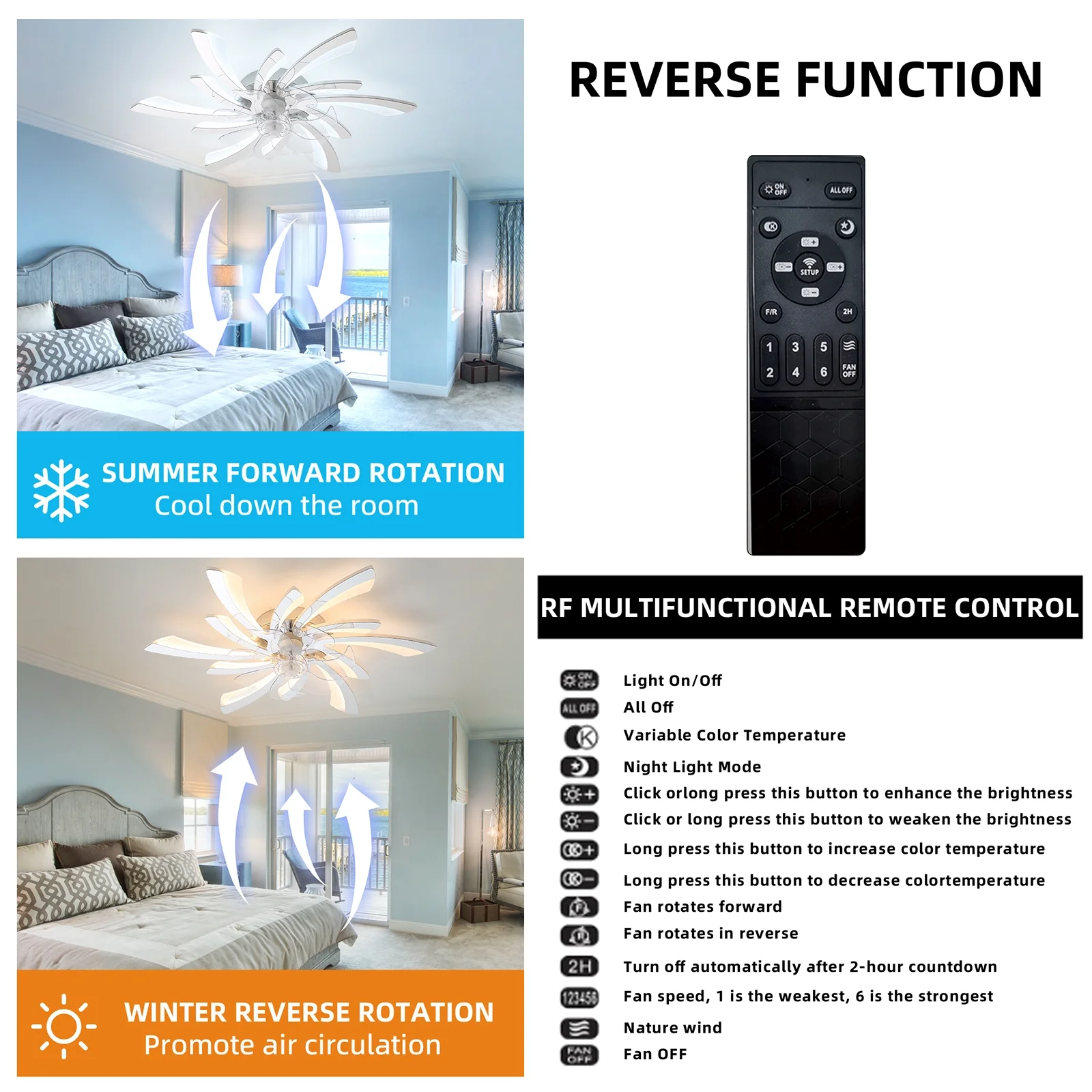 - Setting: 2-in 1 Flush Mount Ceiling fans