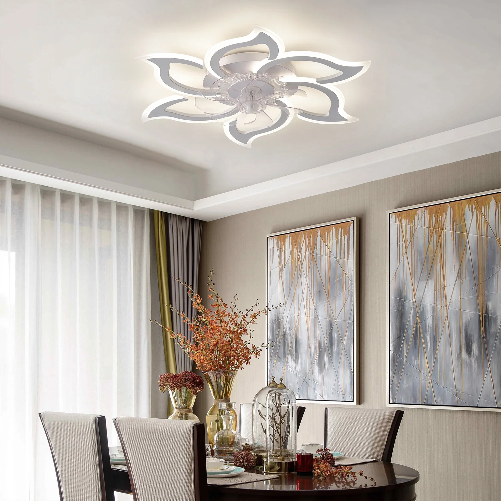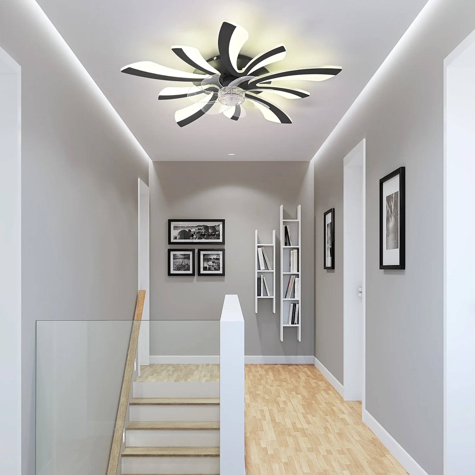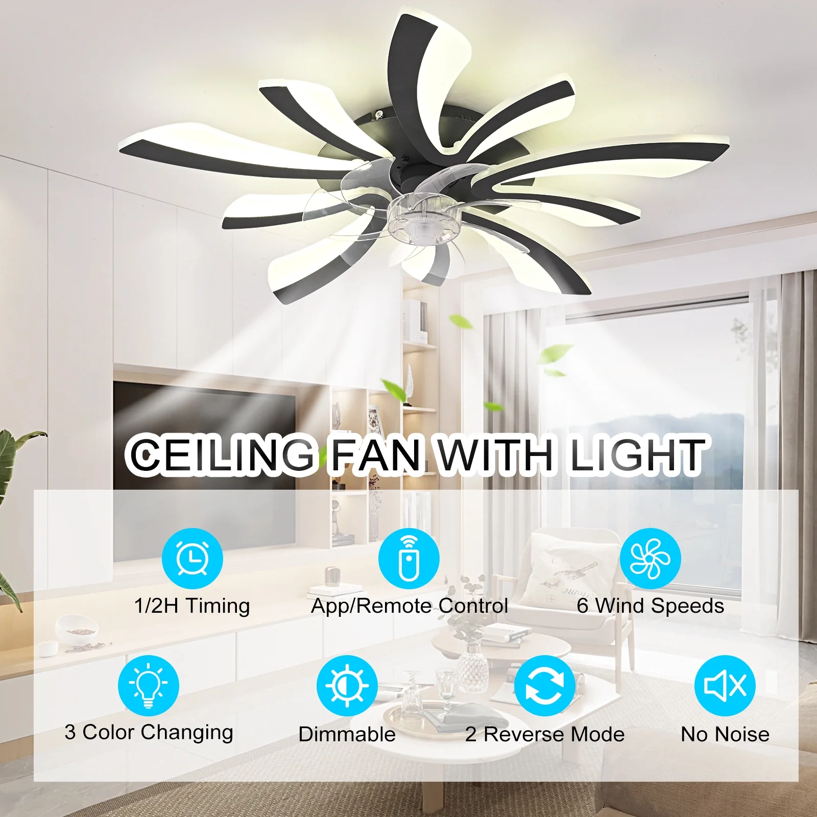 - This modern ceiling fan with light can create a cool breeze for you while bringing beautiful lighting, suitable for dining rooms, small living rooms, bedrooms, etc recommended location indoor.