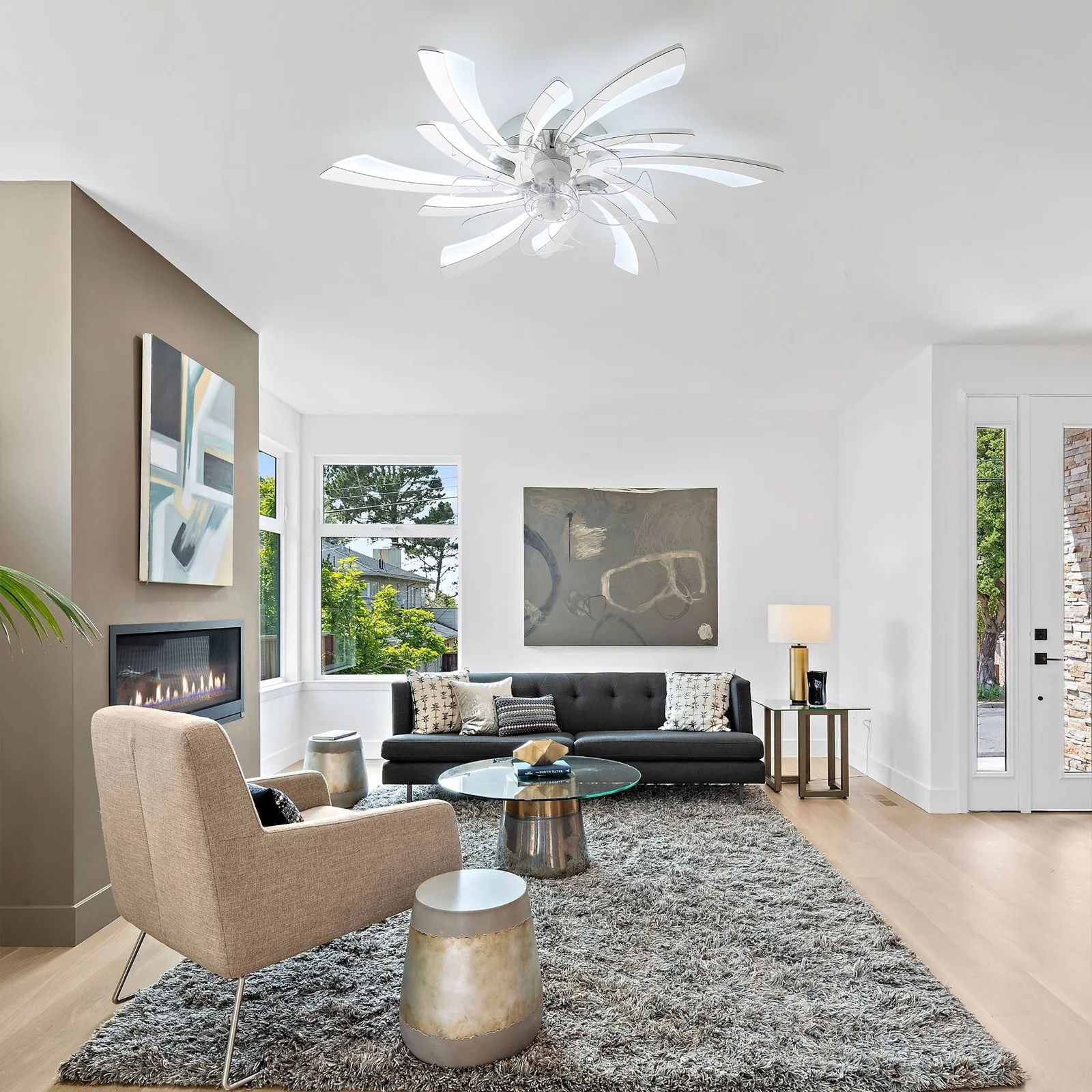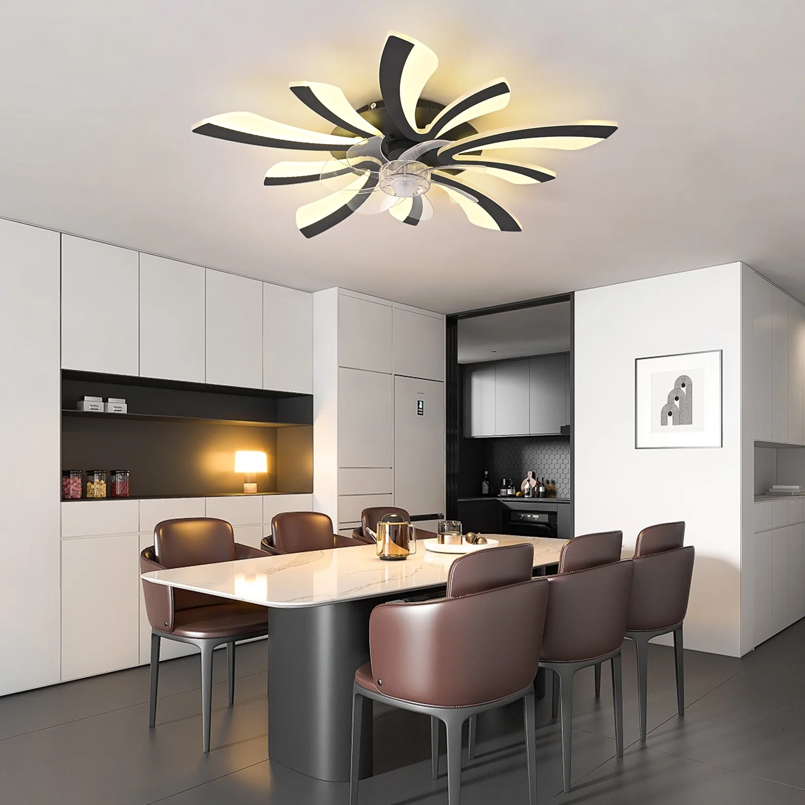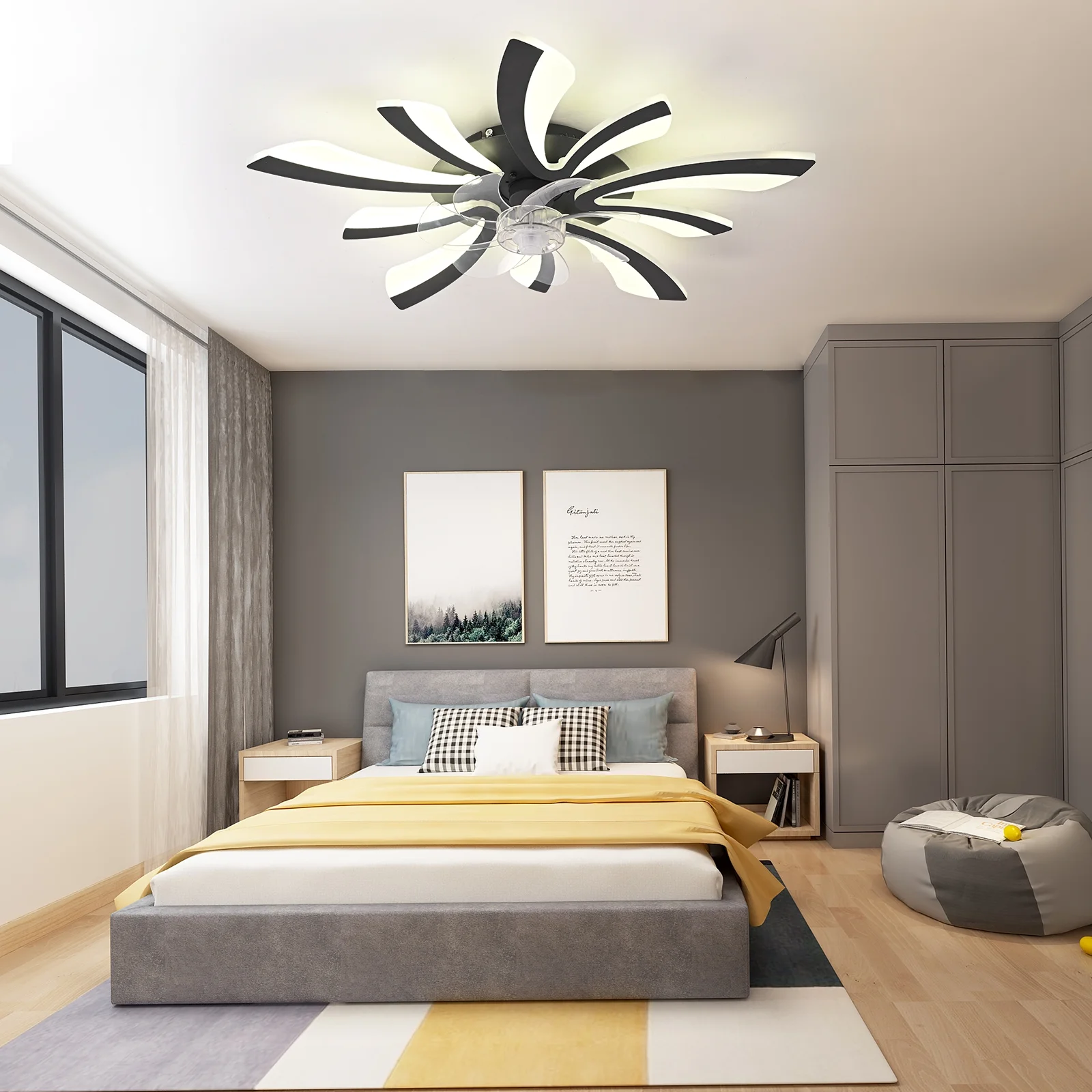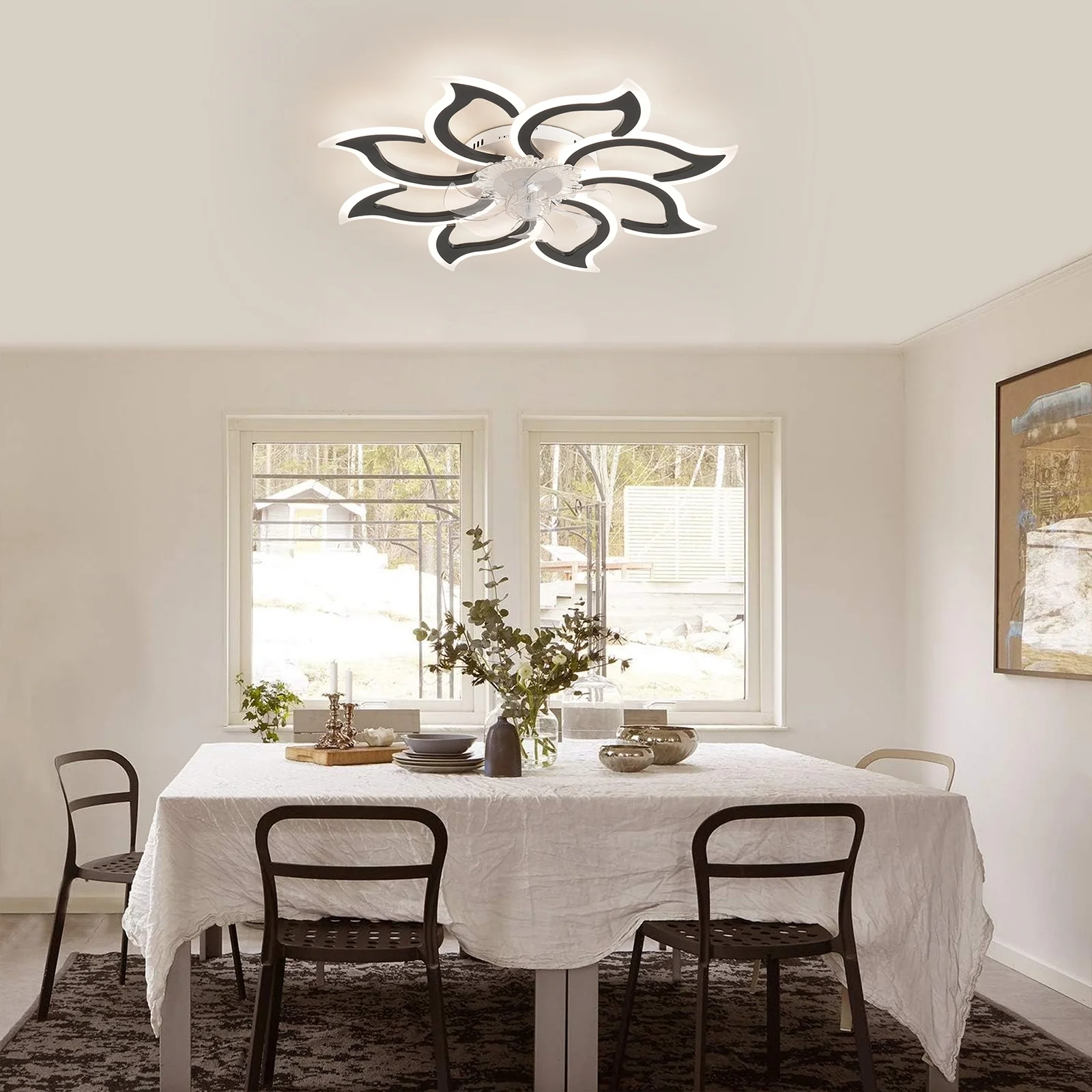 - This modern ceiling fan with light can create a cool breeze for you while bringing beautiful lighting, suitable for dining rooms, small living rooms, bedrooms, etc recommended location indoor.